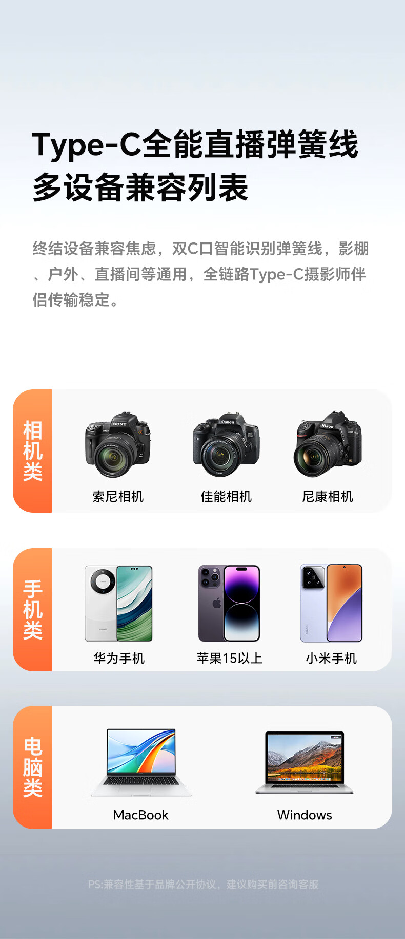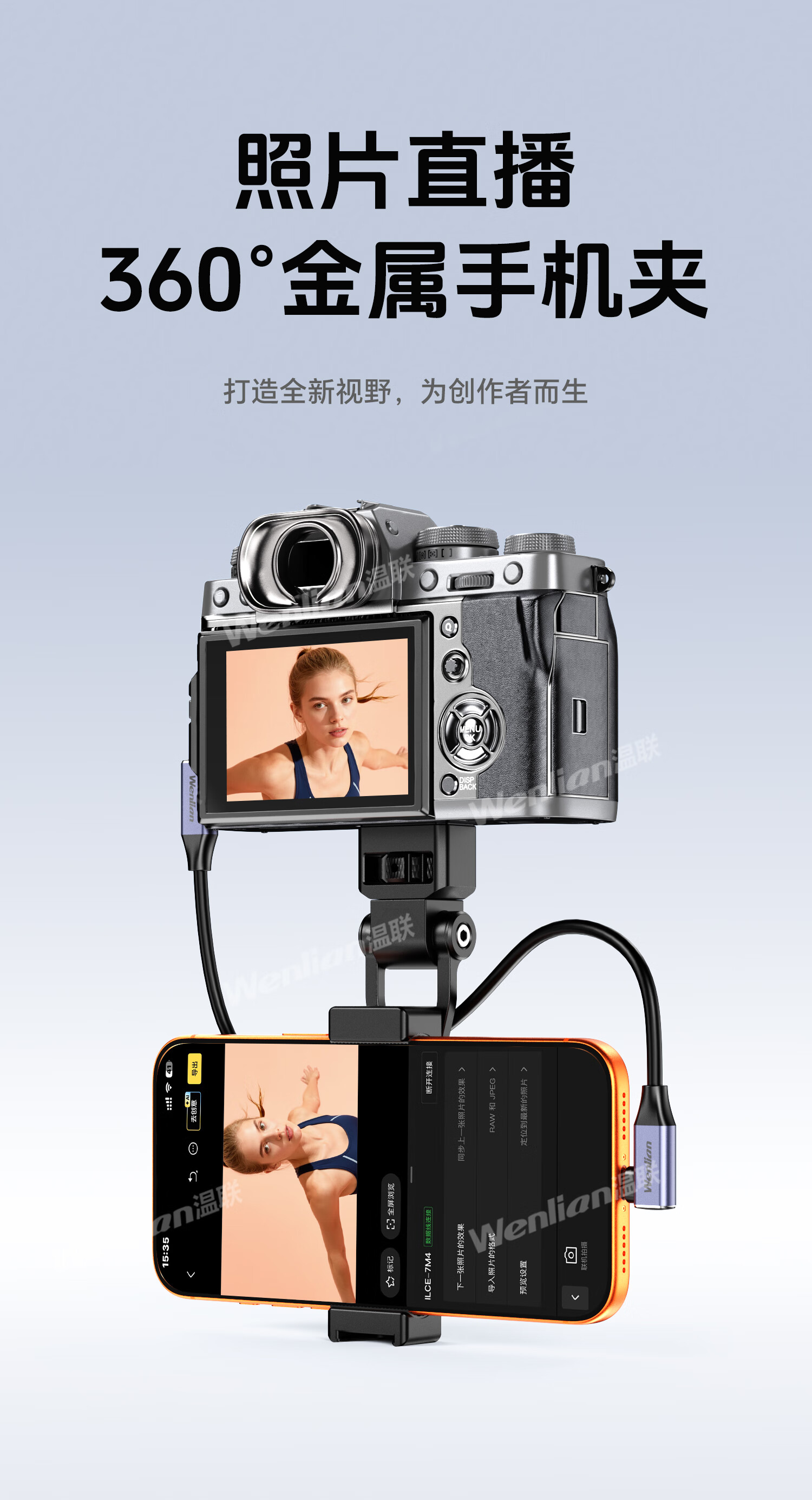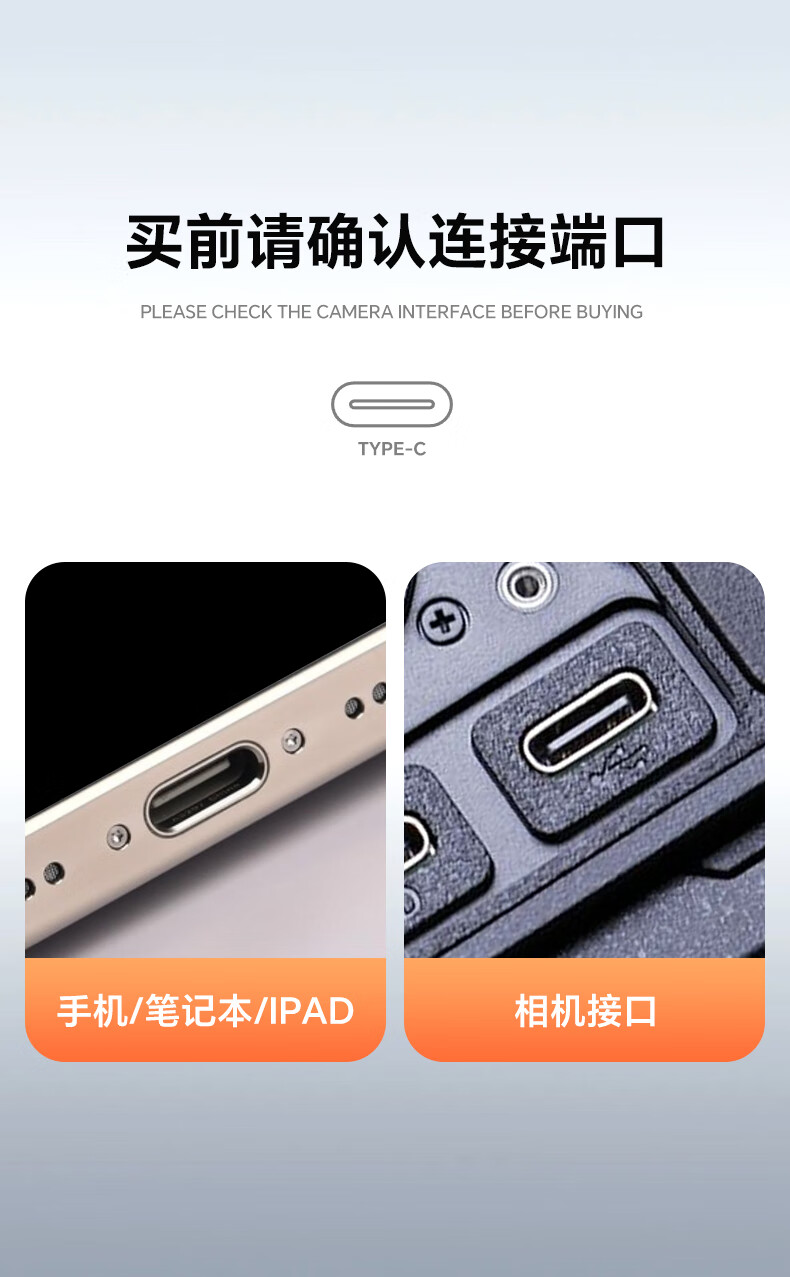 Wenlian telescopic spring double Type-C cable connected to Sony A7M4/A7C2 Canon r62/r8 connected to ipad pixel cake online shooting line mobile phone photo live broadcast OTG data cable double bend double Type-C telescopic spring cable