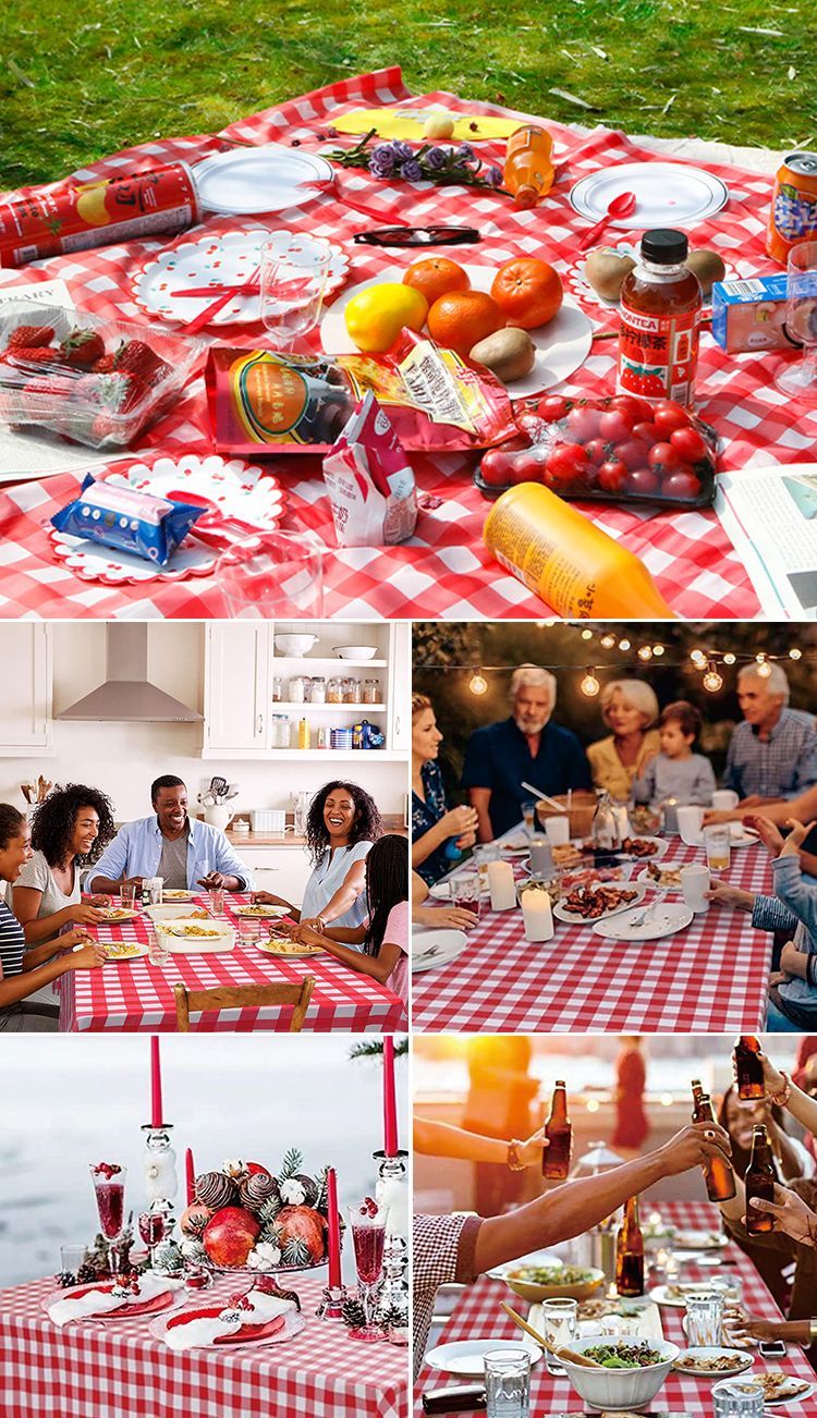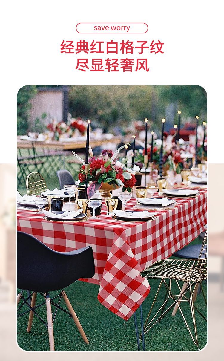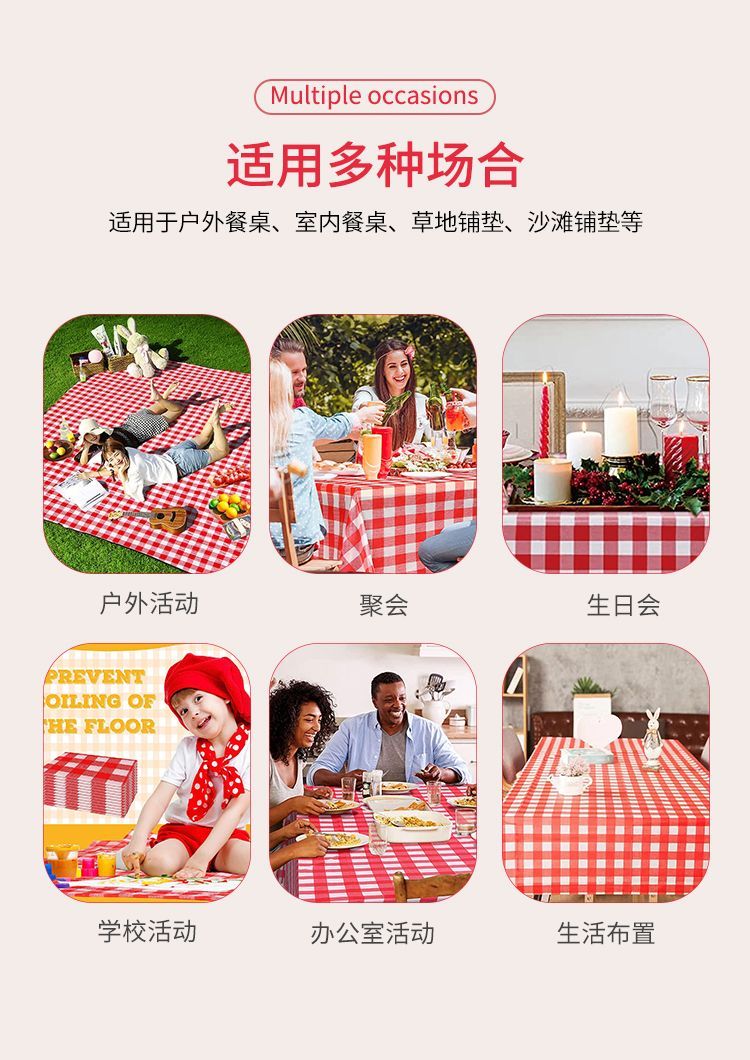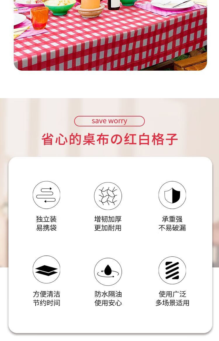 Yexiang disposable tablecloth plastic waterproof thickened tablecloth plaid tablecloth round table rectangular square table pastoral picnic mat 10 sheets/bag 1.8X1.8 meters red plaid