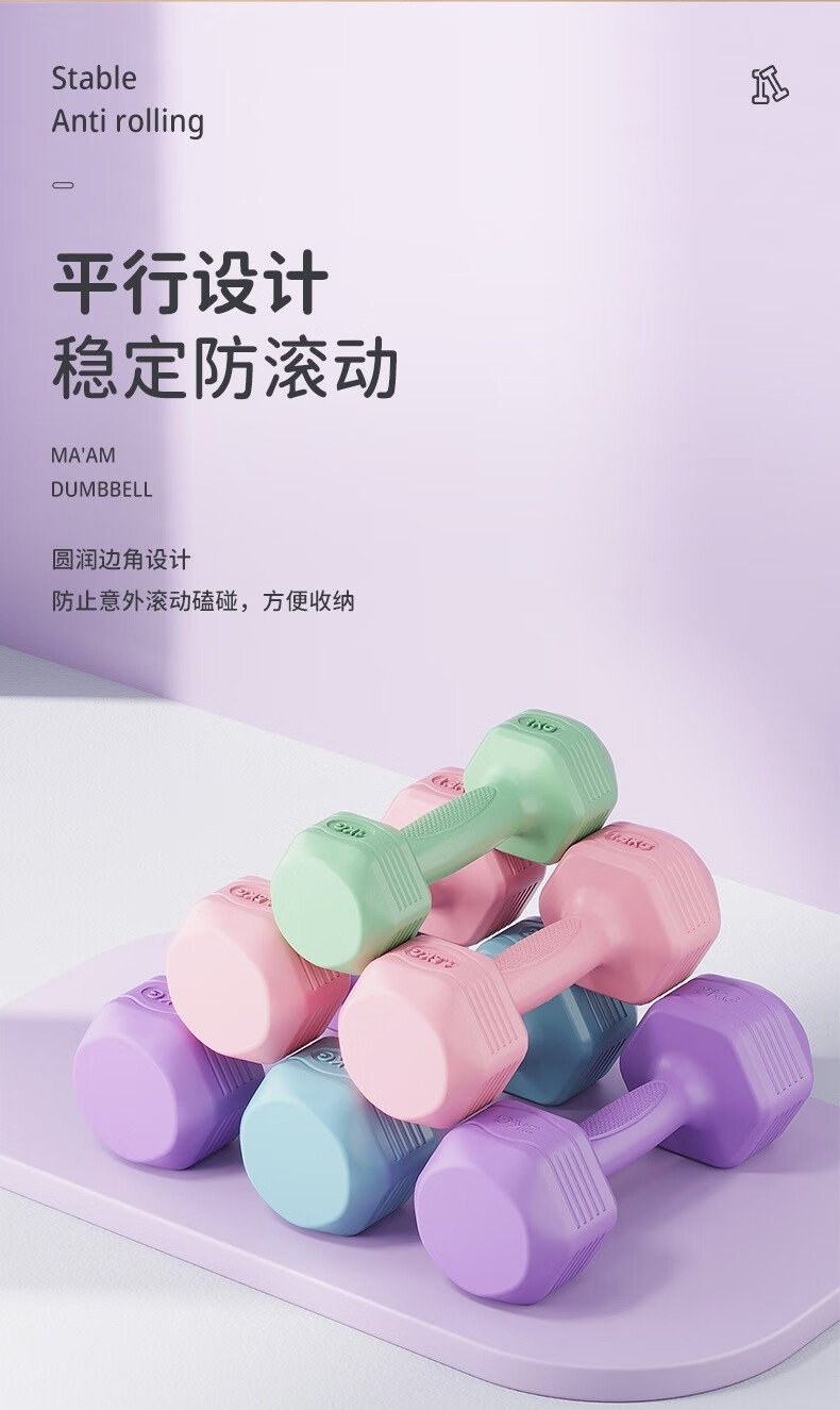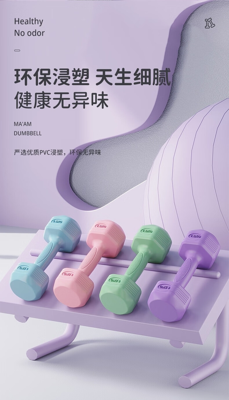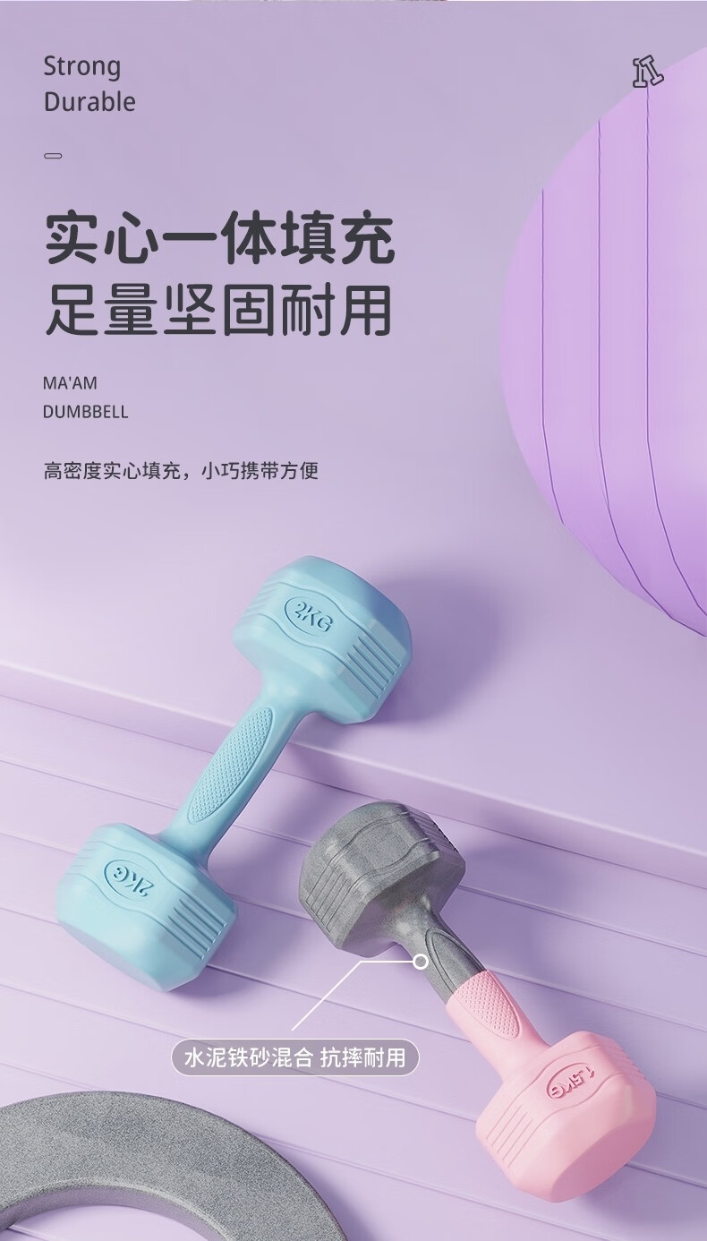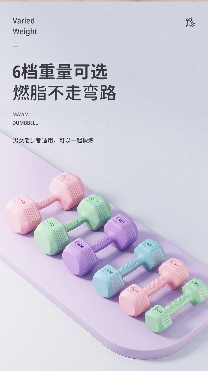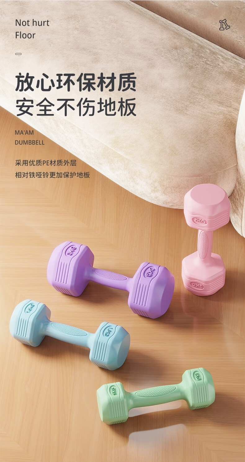 Meikejie's new dumbbells for women, home fitness equipment for beginners, arm muscle training for primary school children, emerald blue 2KG, total weight (2 pounds * 2 pieces), aerobics for young people and the elderly