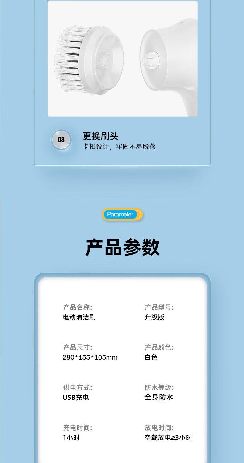 Household electric cleaning brush USB rechargeable electric brush necessary for general cleaning, floor brush, shoe brush, pot electric mop, broom cleaning artifact, mini mop set