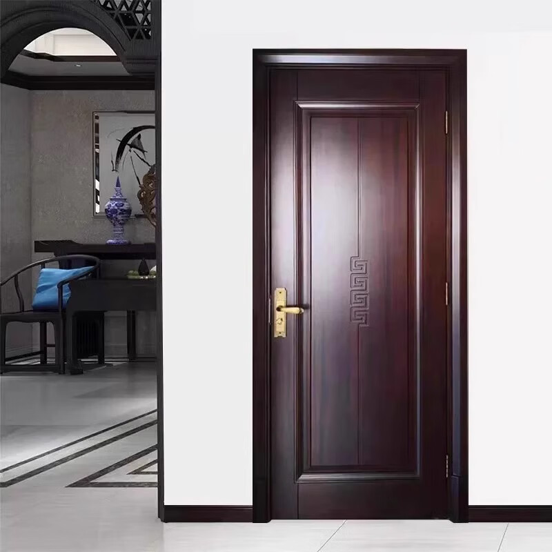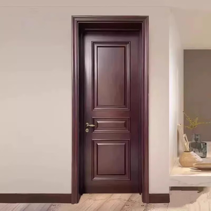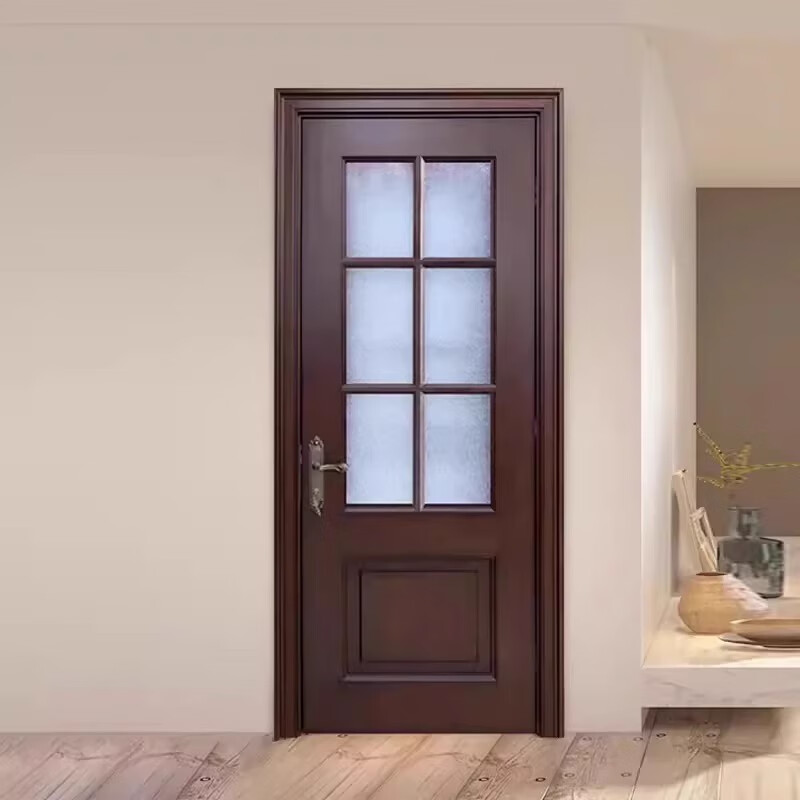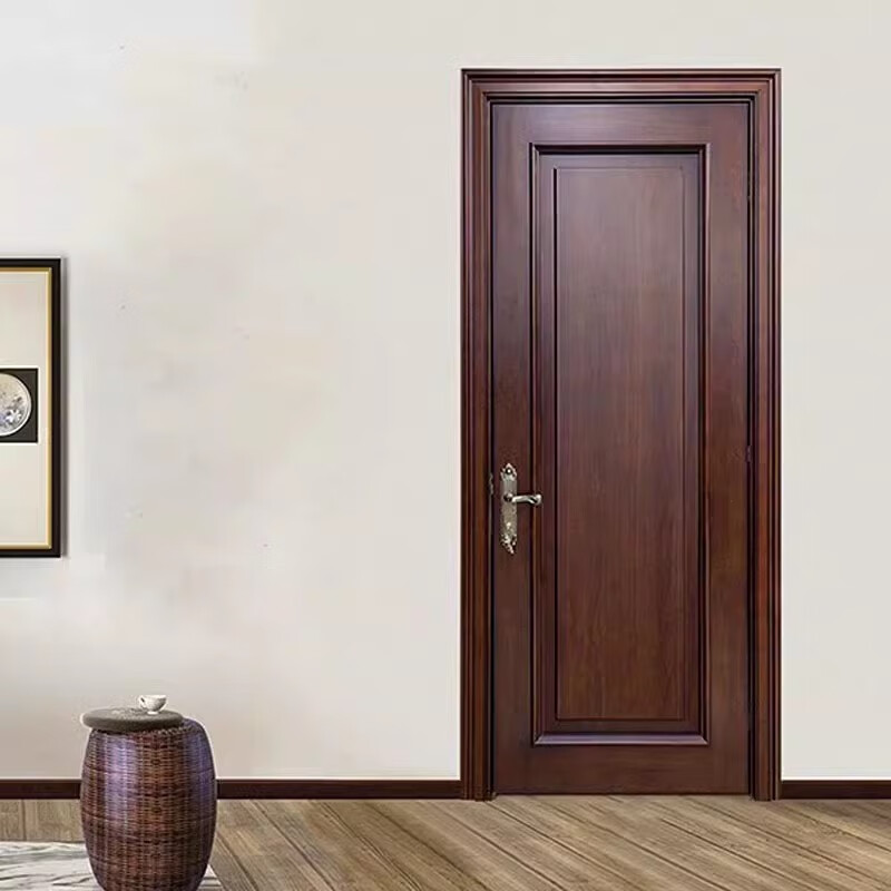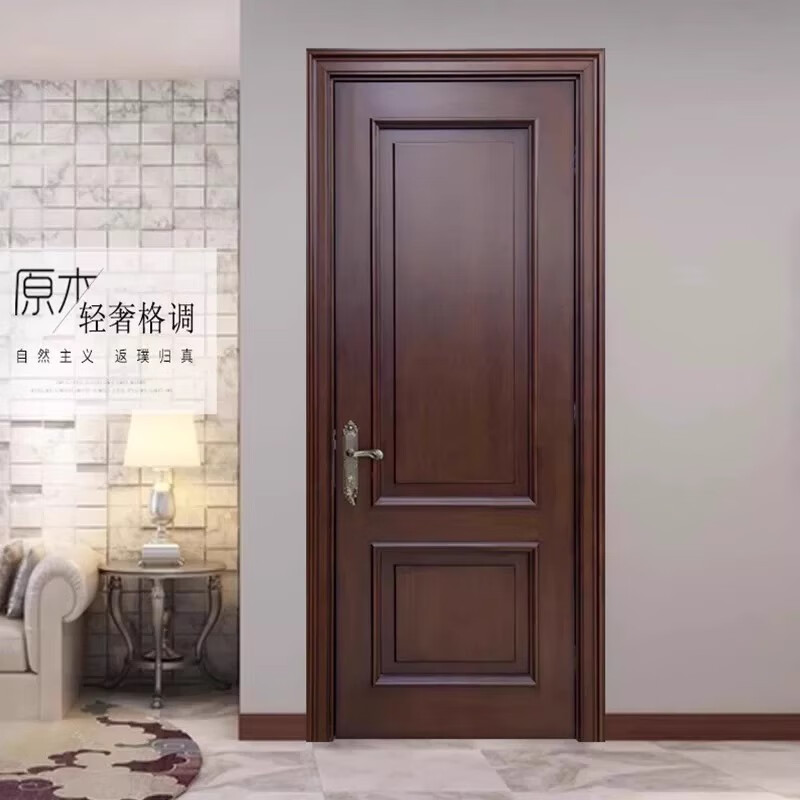 Solid wood door, bedroom door, oak painted door, walnut color room door set, indoor door, sanitary door, customized original wood door, rubber wood painted door style 1