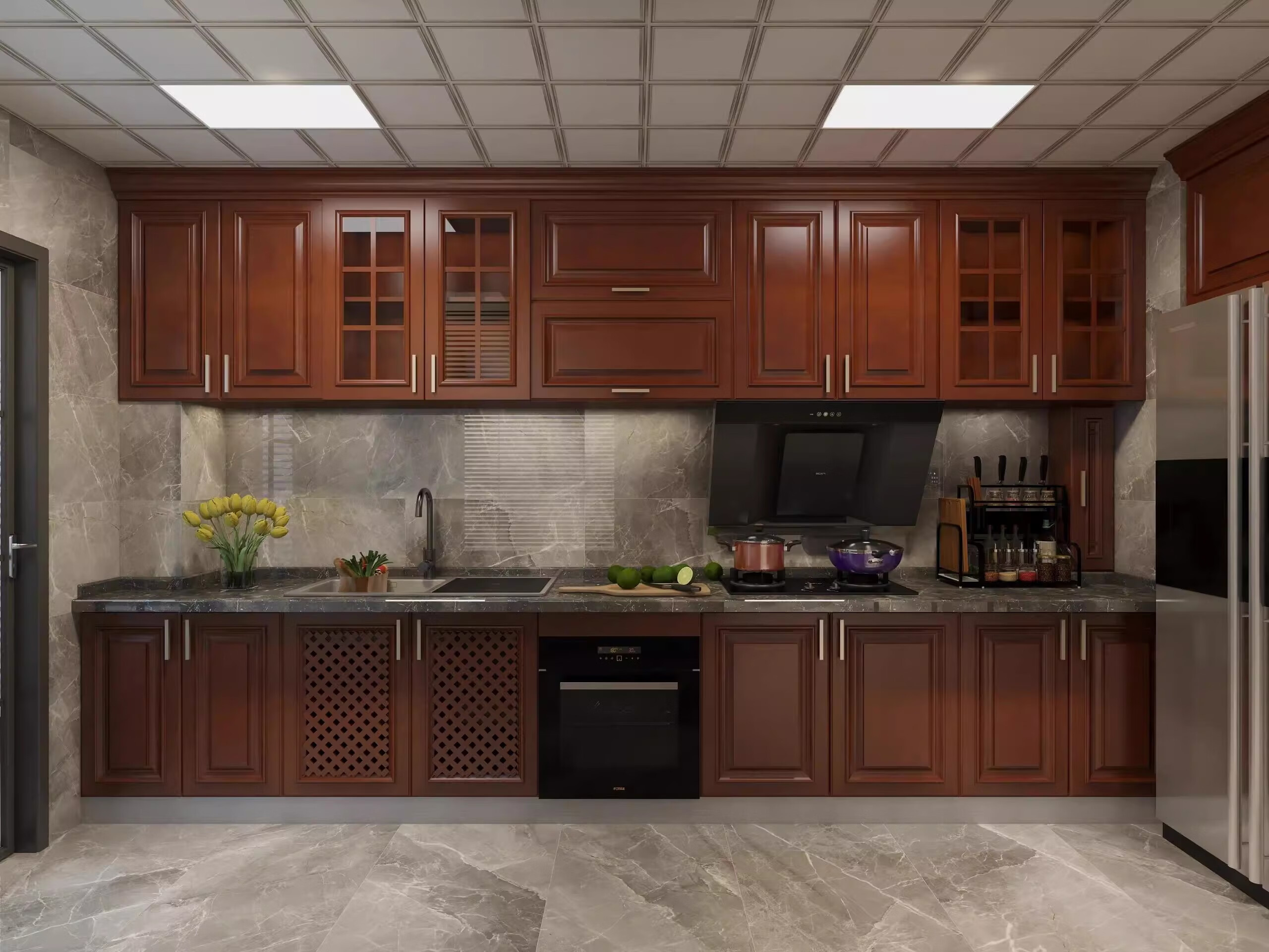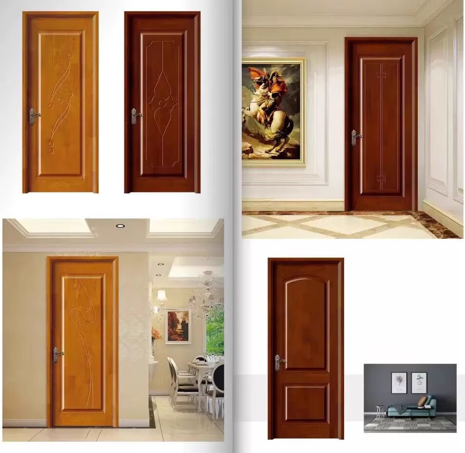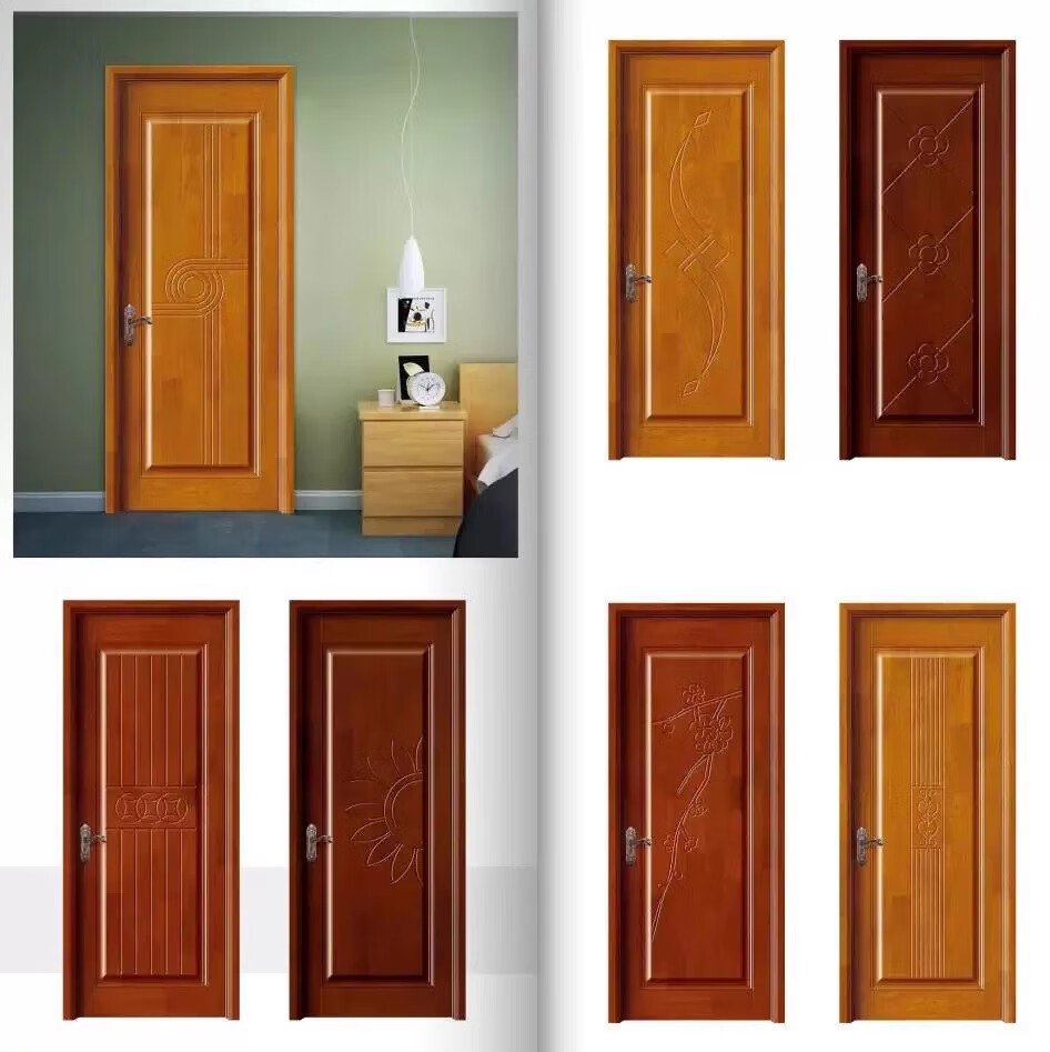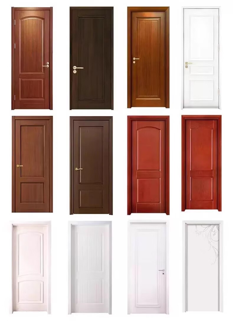 Solid wood door, bedroom door, oak painted door, walnut color room door set, indoor door, sanitary door, customized original wood door, rubber wood painted door style 1