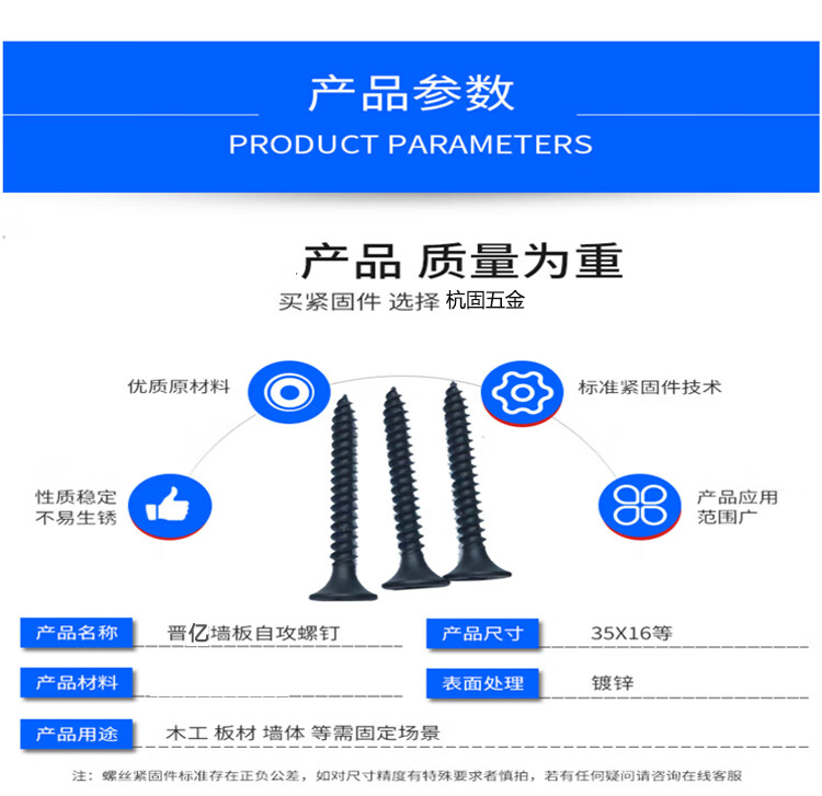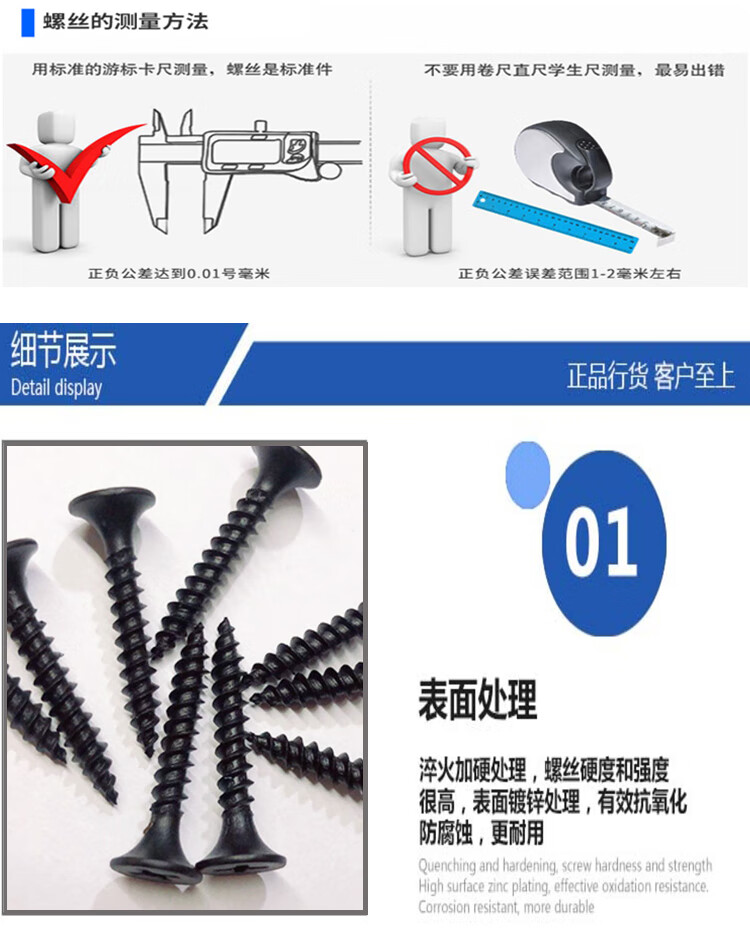 XMSJ Jinyi high-strength cross-hardened countersunk head screws light steel keel woodworking self-tapping black and white zinc dry wall screws M3.5*16 (1500 pieces/12 boxes) There are two types