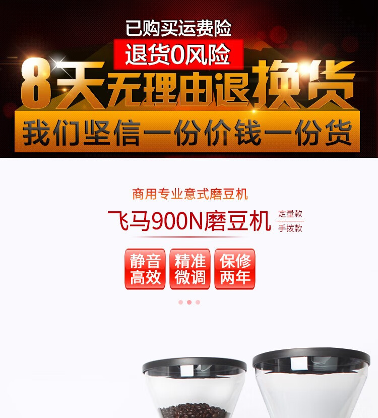 Pegasus commercial Italian electric bean grinder quantitative coffee bean grinder grinder quantitative direct powder white coffee beans powder pad