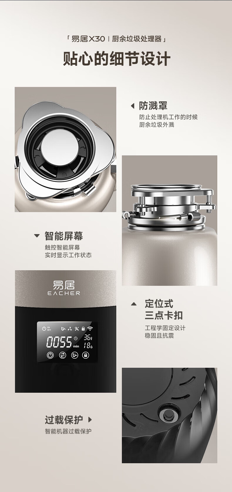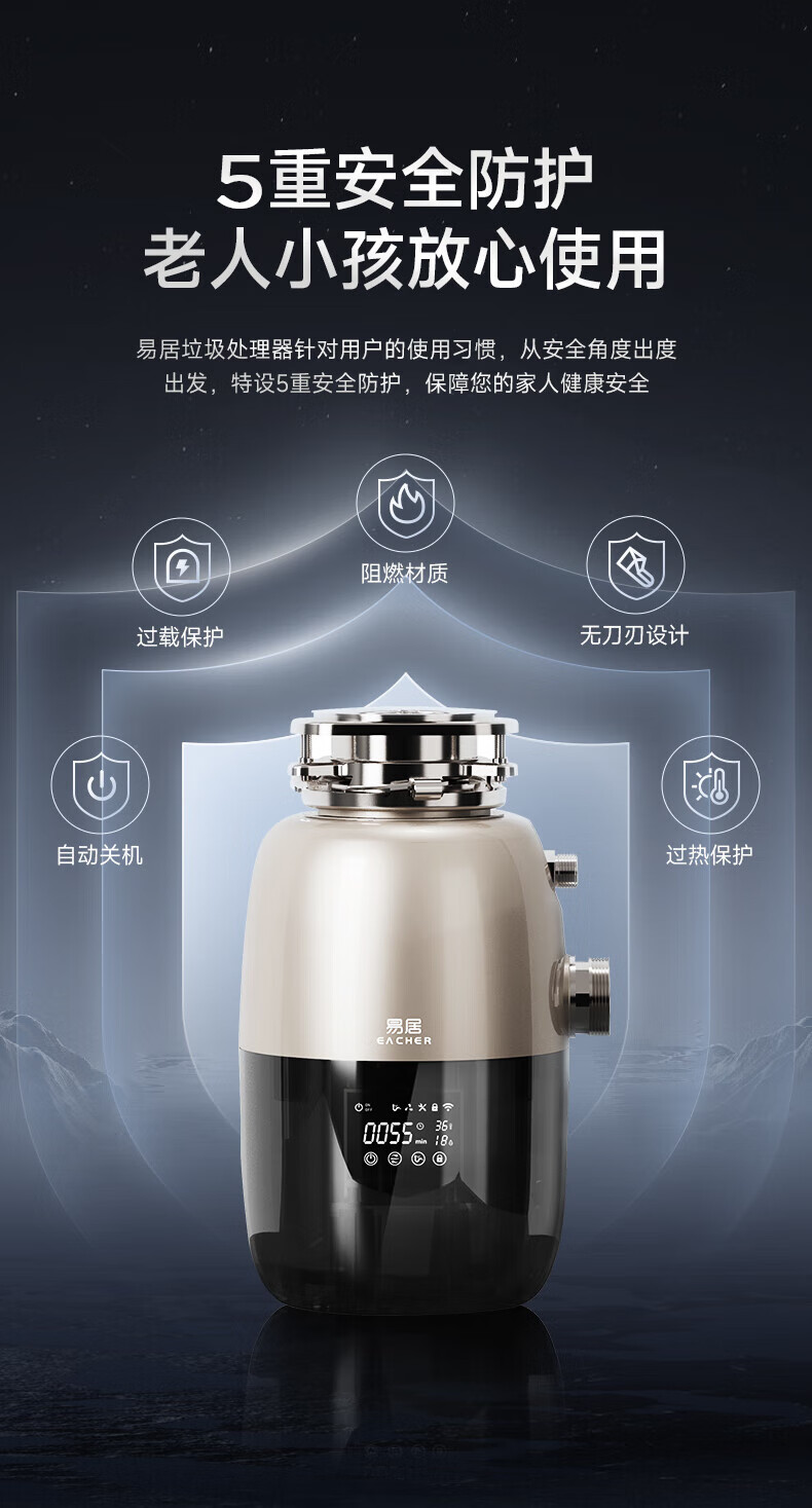 Yiju Sino-German joint venture automatic water inlet food waste disposer household kitchen food waste crusher high