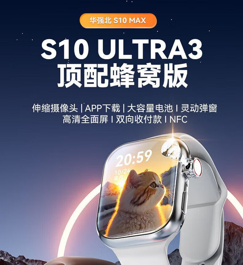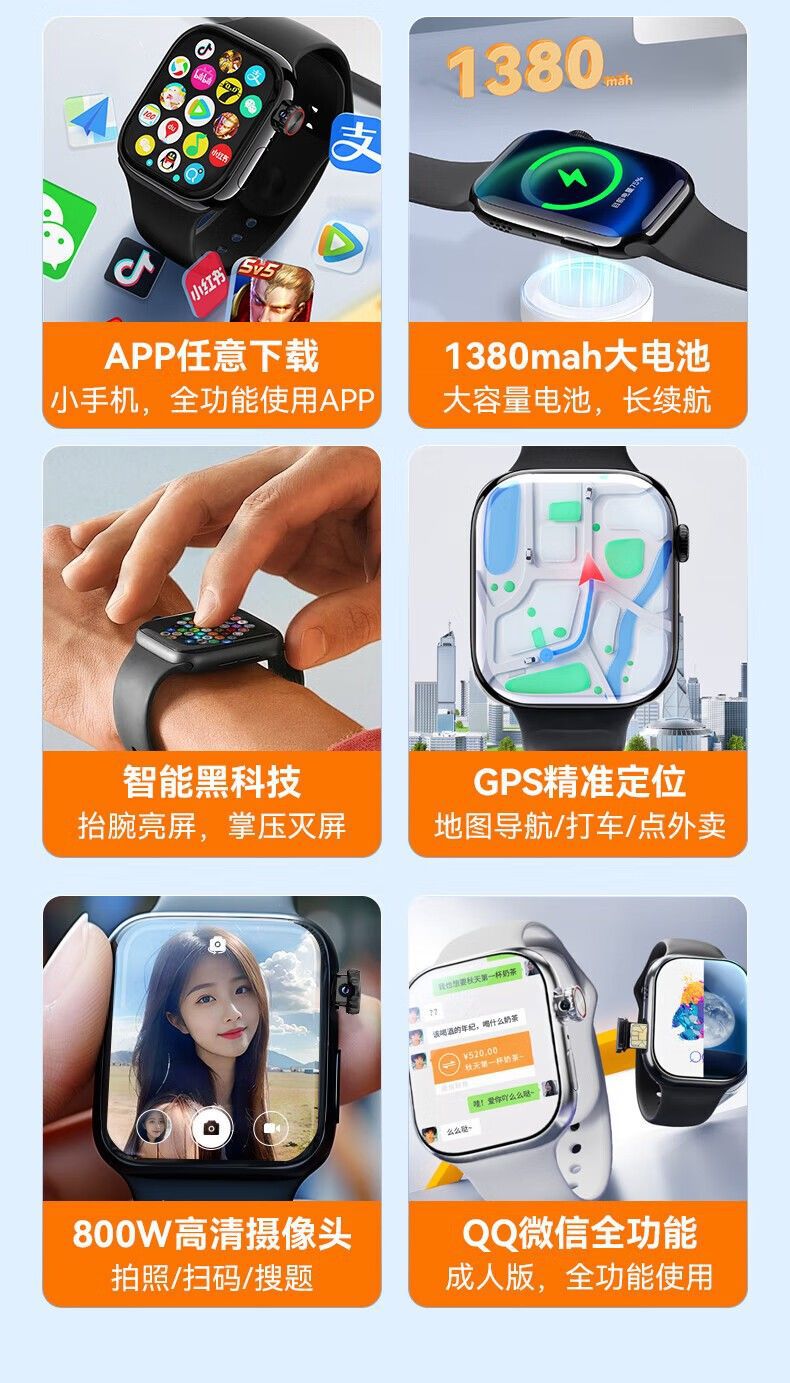 Binge Huaqiangbei S10 multi-function smart watch, rotating camera card, full-function photo download, APP positioning, GPS 128G - E-sports grade chip - can be used for large games - any download silver