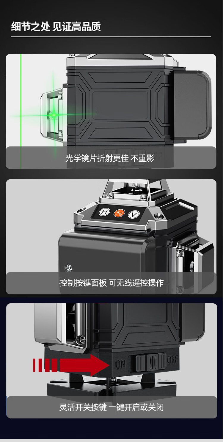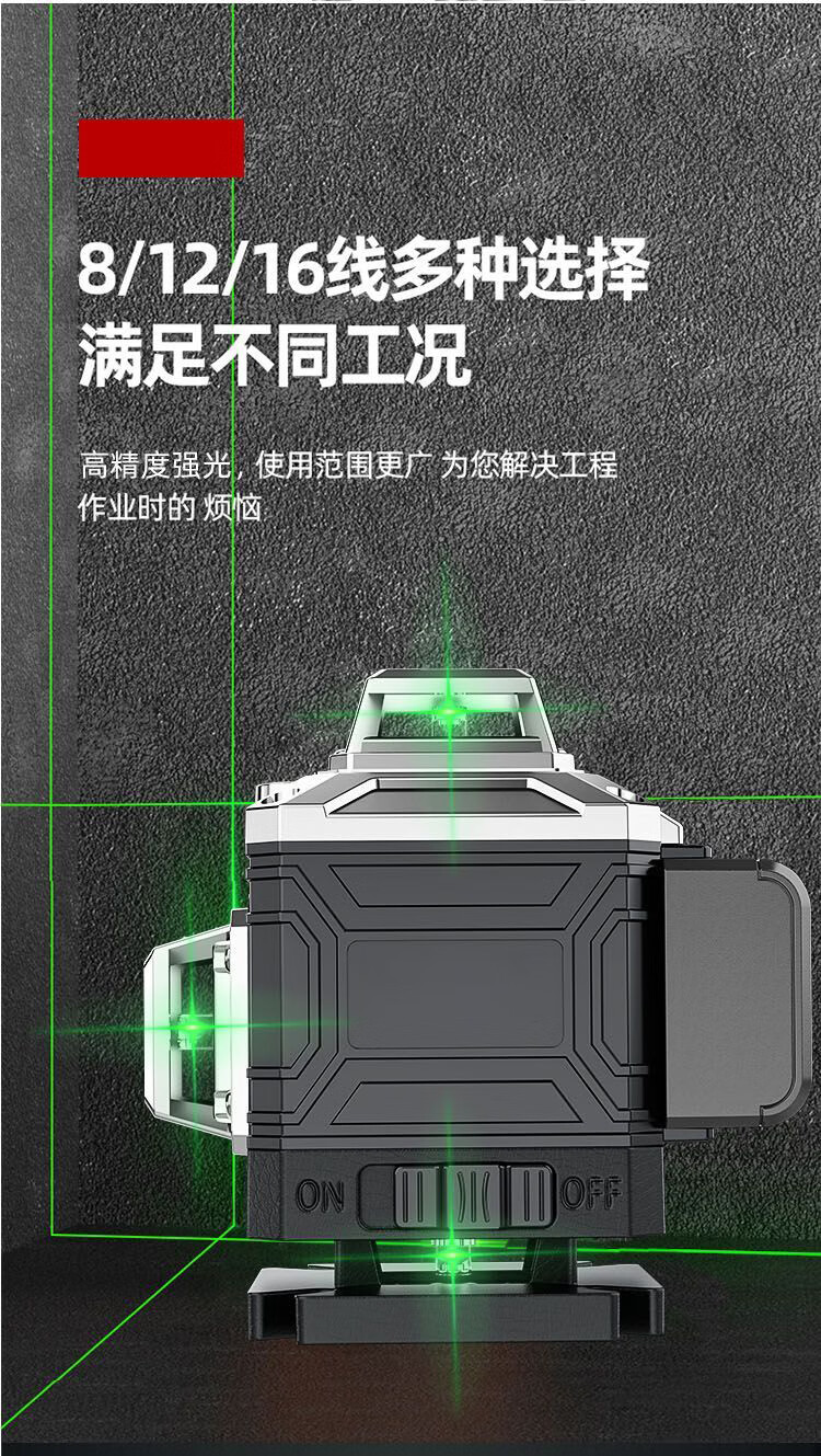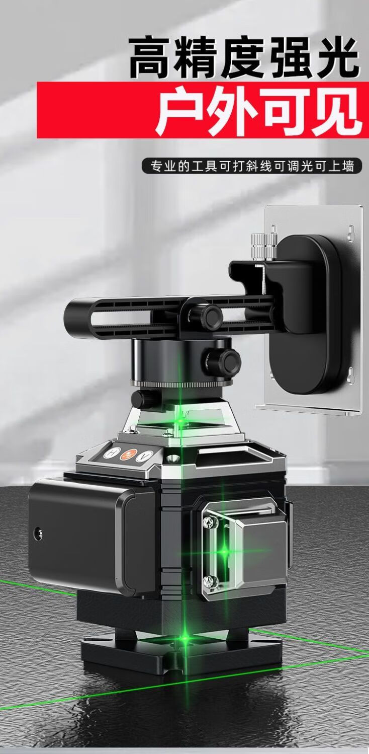 Infrared level meter, high-precision strong light outdoor special laser level meter, 12-line outdoor wall-mounted meter with no dead ends, green light 12-line wall-to-ground all-in-one machine + two batteries and one charger