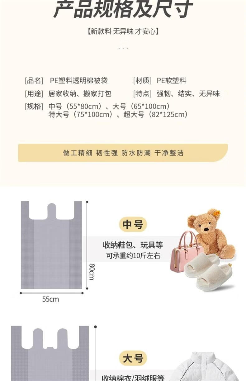 Shouli Moving Packing Bag 10 Pack Large Capacity Disposable Quilt Clothes Storage Bag Moving Special Large Size - 65*100cm 10 Pack
