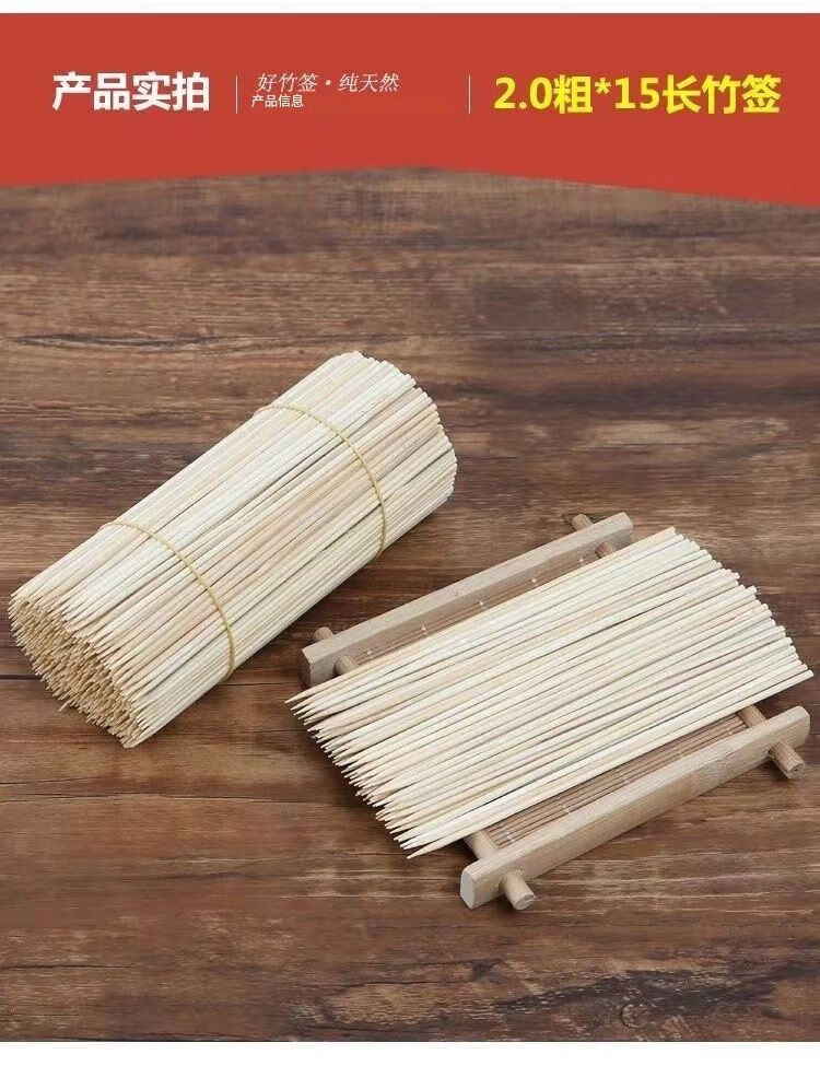 Jijia Bo Zai Cake Bamboo Sticks Special Commercial Wholesale BBQ Oden Sauce Fragrant Oden Fruit Disposable Sticks Length 15cm*Bold 3mm 200 pieces