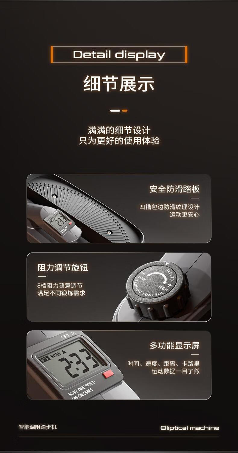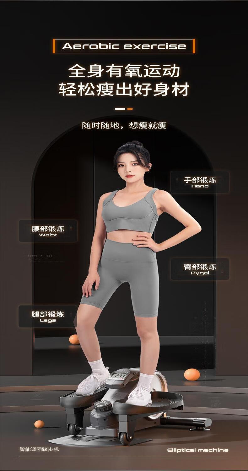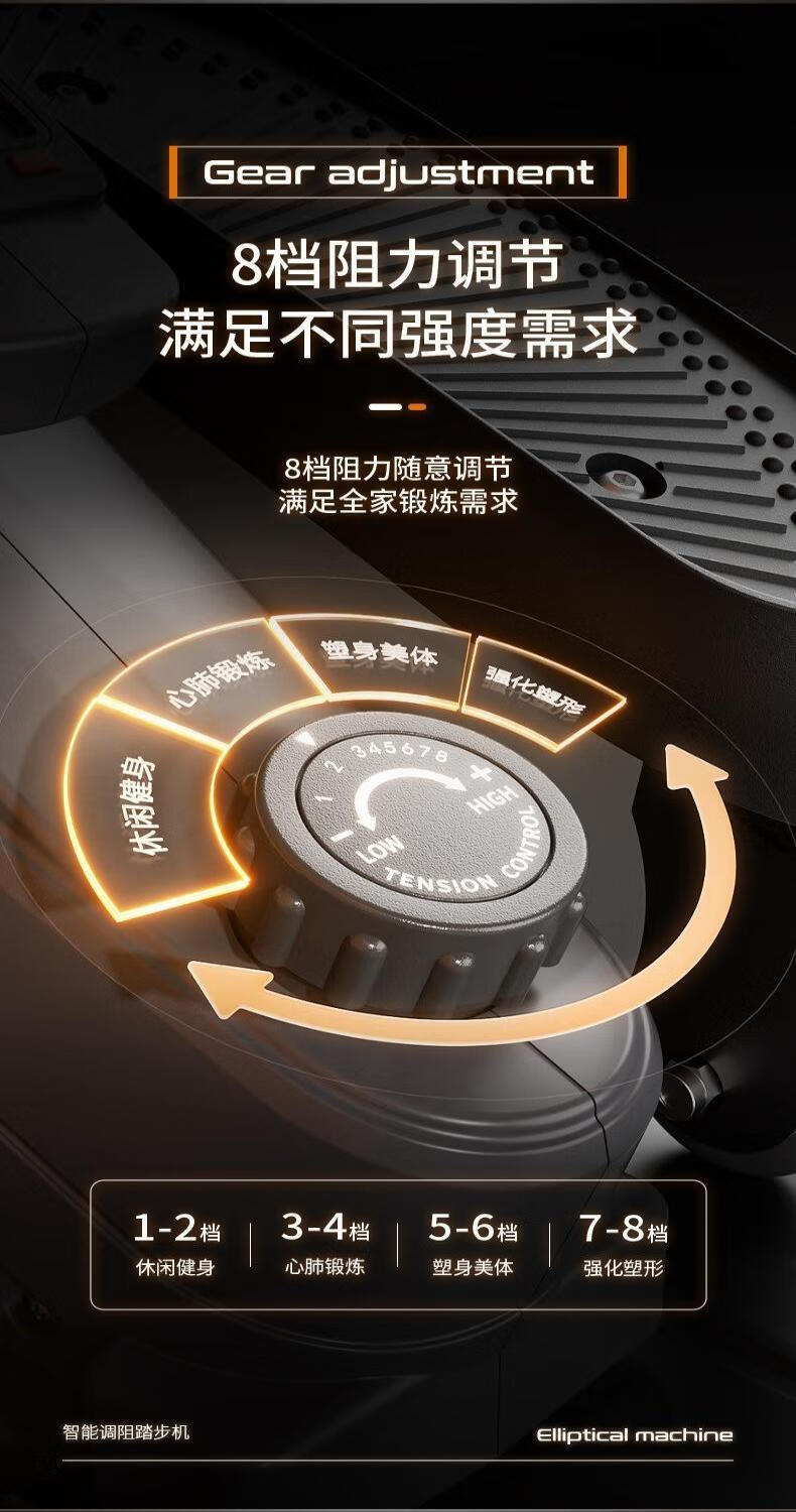 Schneider door-to-door magnetically controlled mini elliptical machine for home fitness small spacewalker stepper that does not take up space magnetically controlled elliptical machine fashionable 8-speed/grey