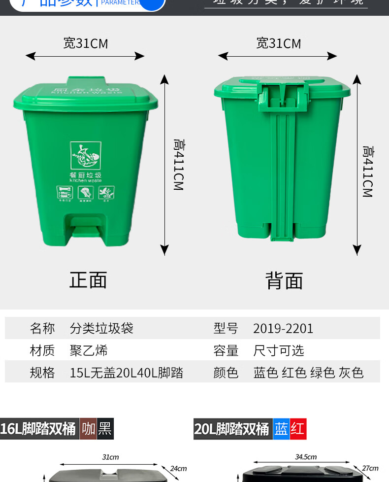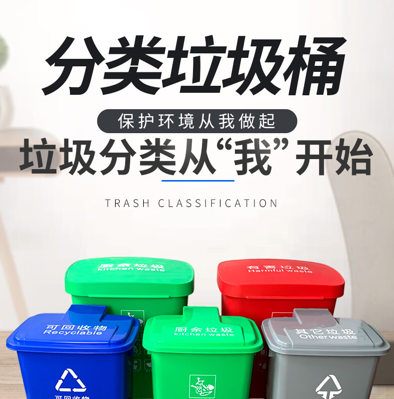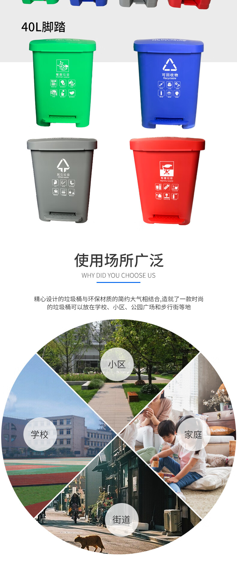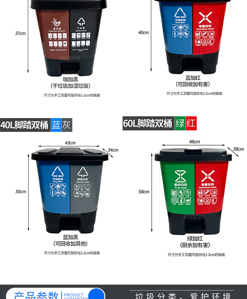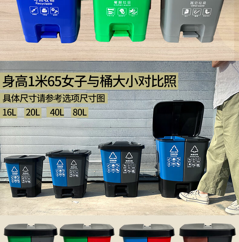 Trash can classification foot-operated two-in-one Shanghai trash can outdoor dry and wet kitchen household with cover commercial sanitation 60L sorting double bucket foot-operated (black) wet garbage + dry garbage