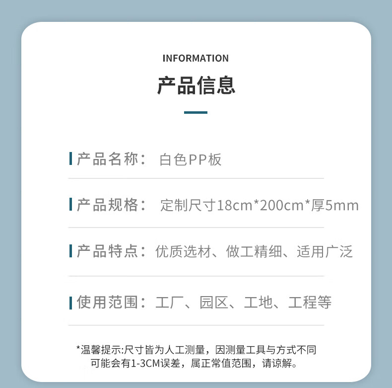 Zhanfeng white PP board, customized size 18cm*200cm*thickness 5mm