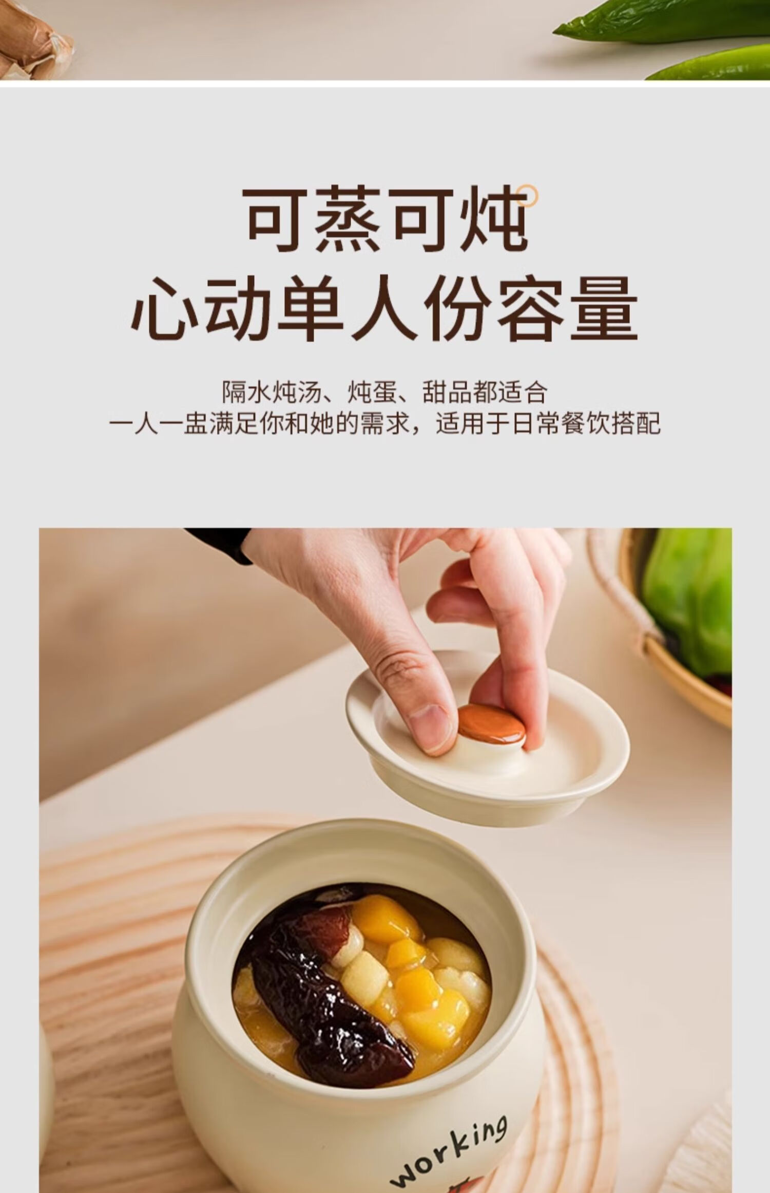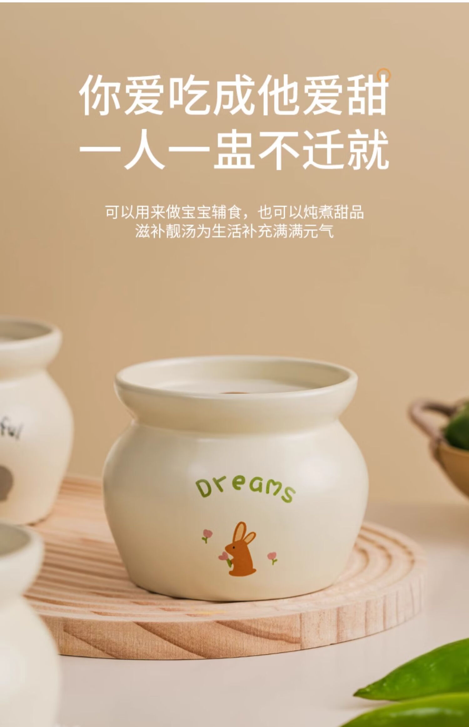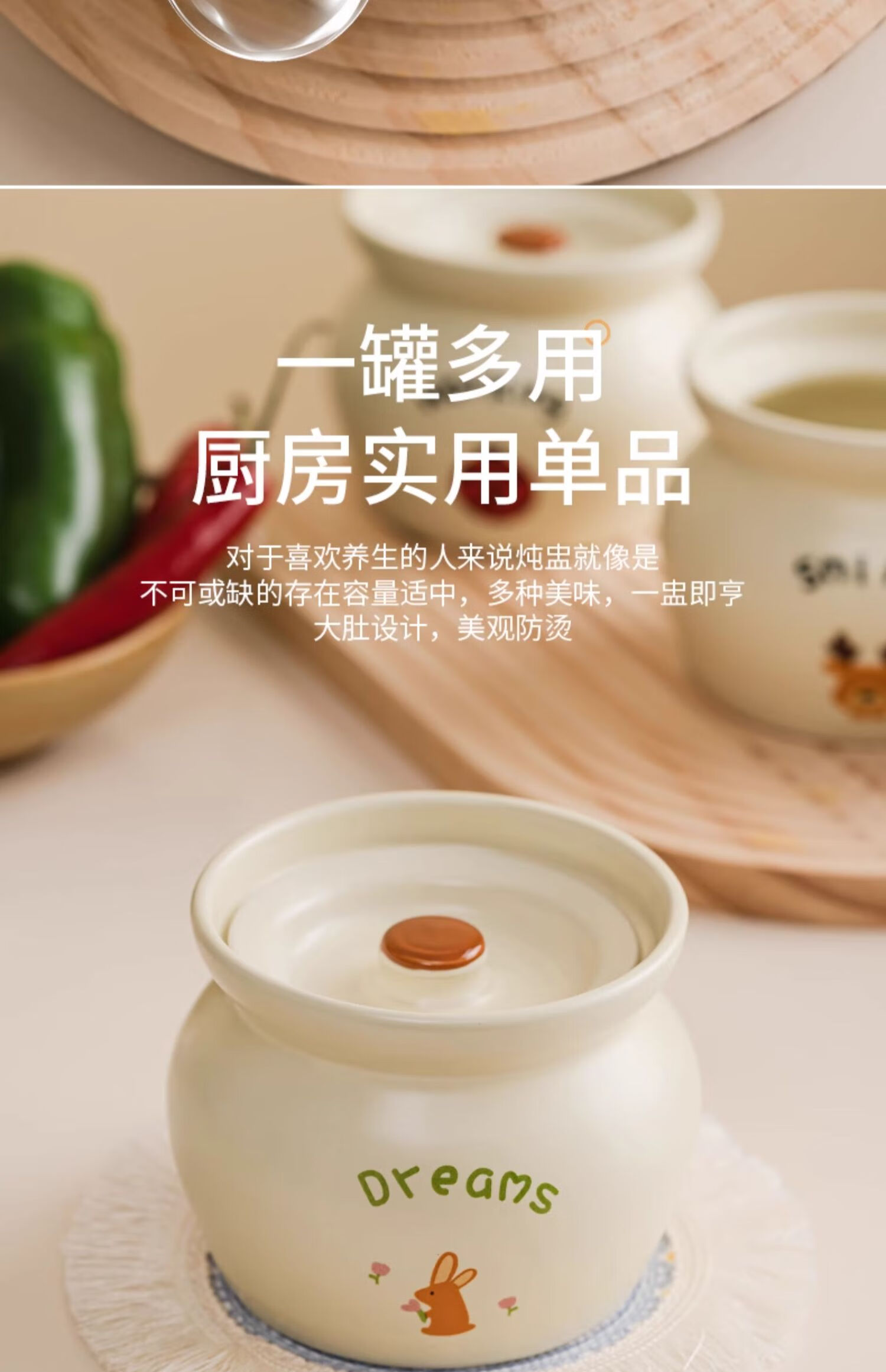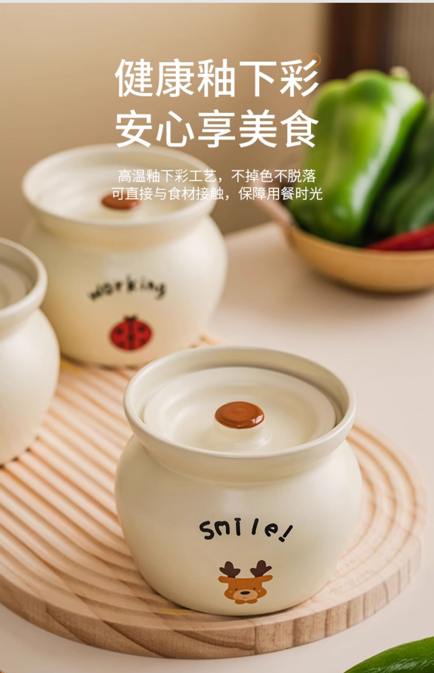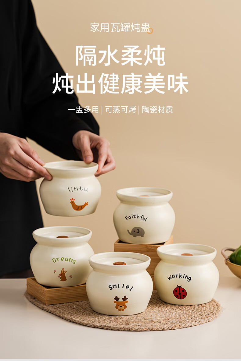 Haoxiang (HAOXIANG) ceramic crock pot for one person, water-proof stew pot, soup bowl with lid, small soup bowl, steamed vegetable and egg bowl, food-grade household stew pot, cream crock pot stew pot, five packs, 1cm, Internet celebrity style