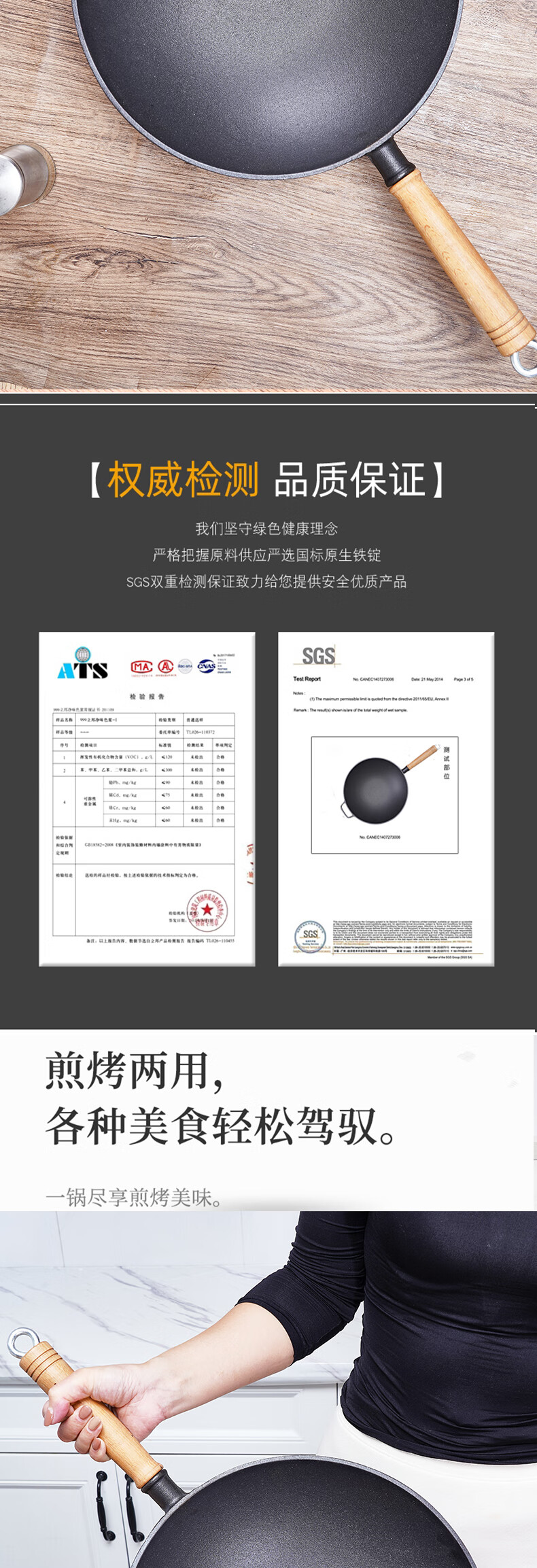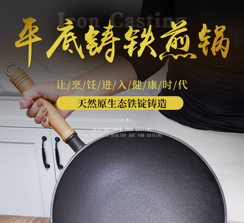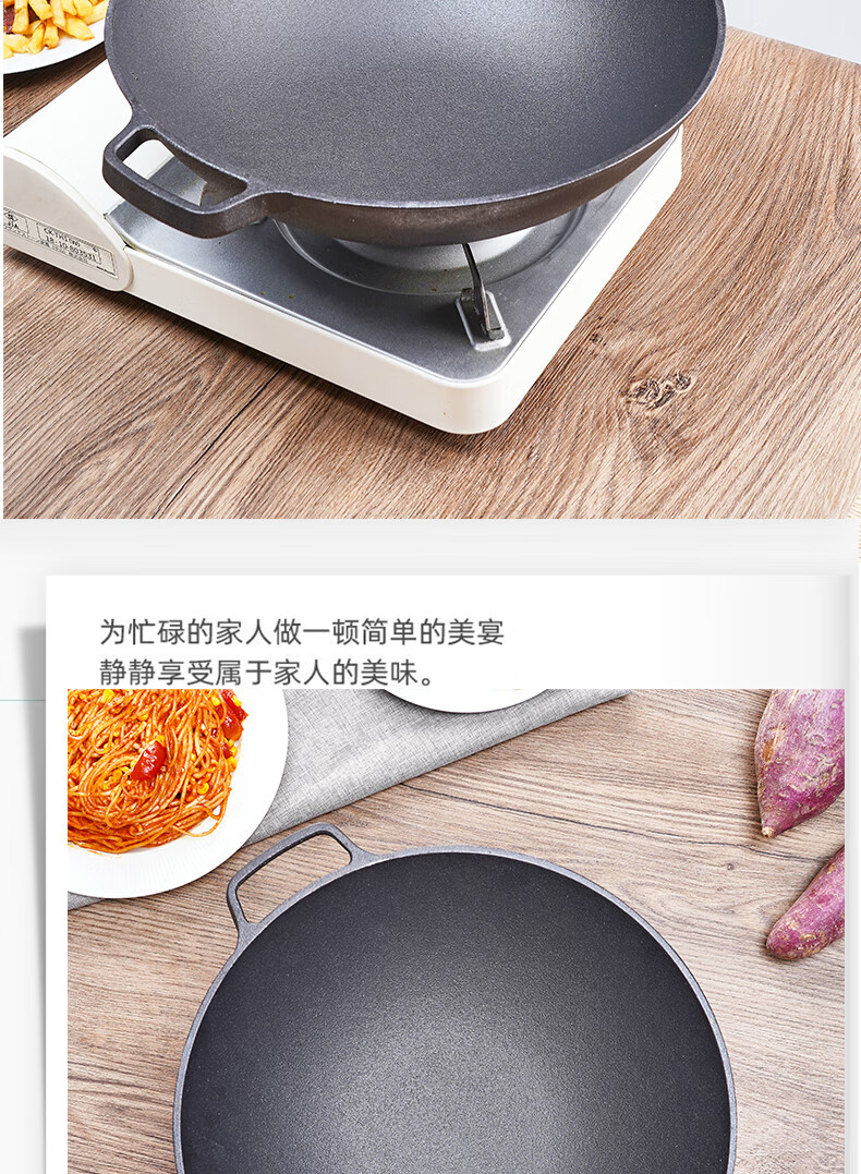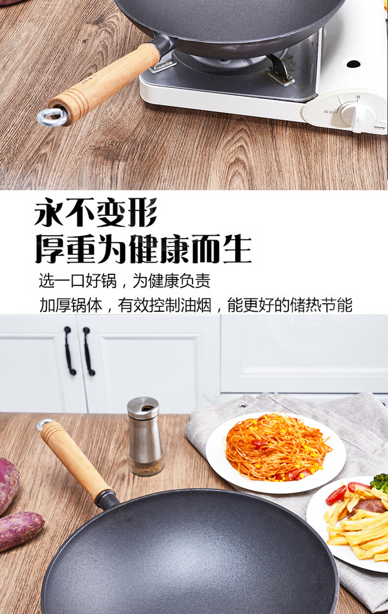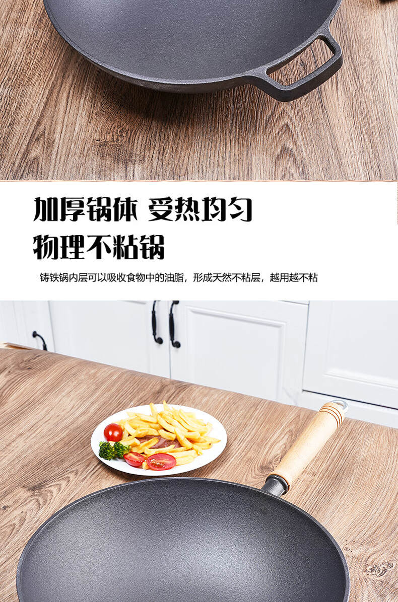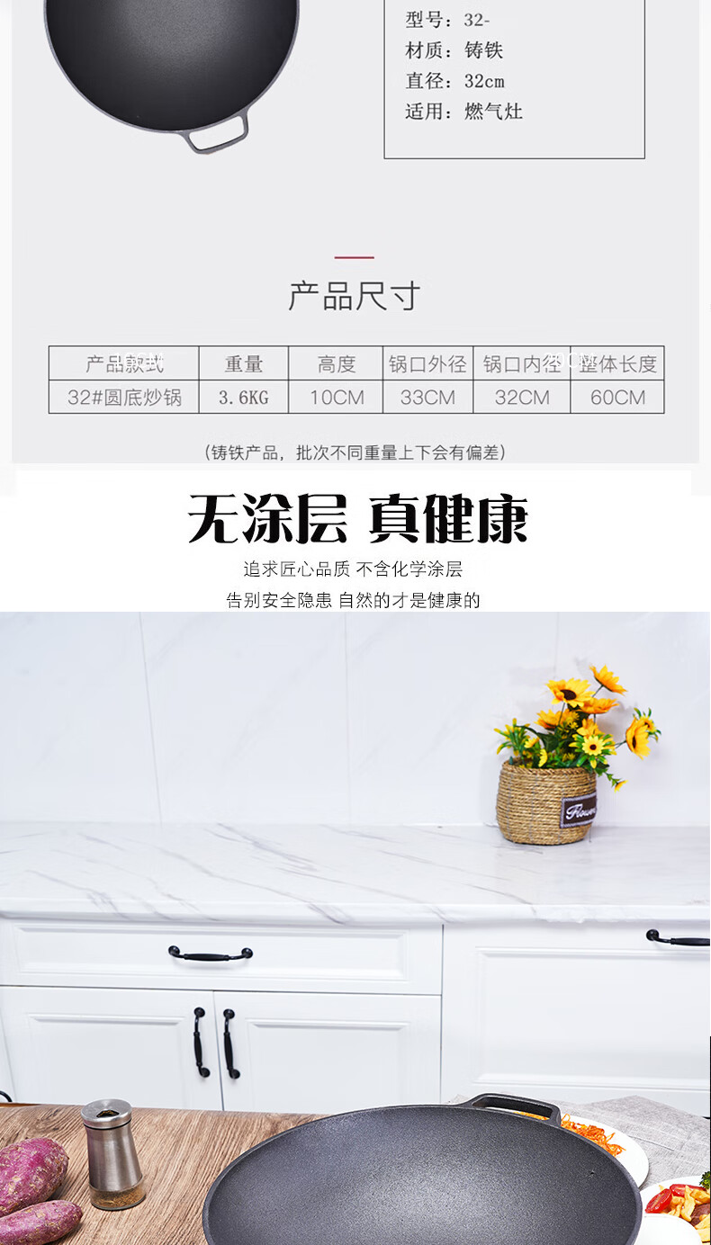 Old-fashioned thickened cast iron wok, uncoated, healthy and durable, traditional craft wood-fired gas concave induction cooker, universal 32CM household wok
