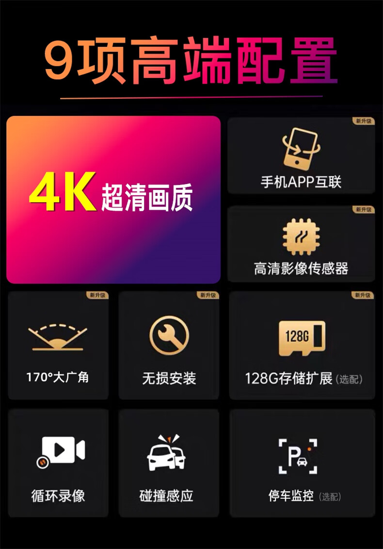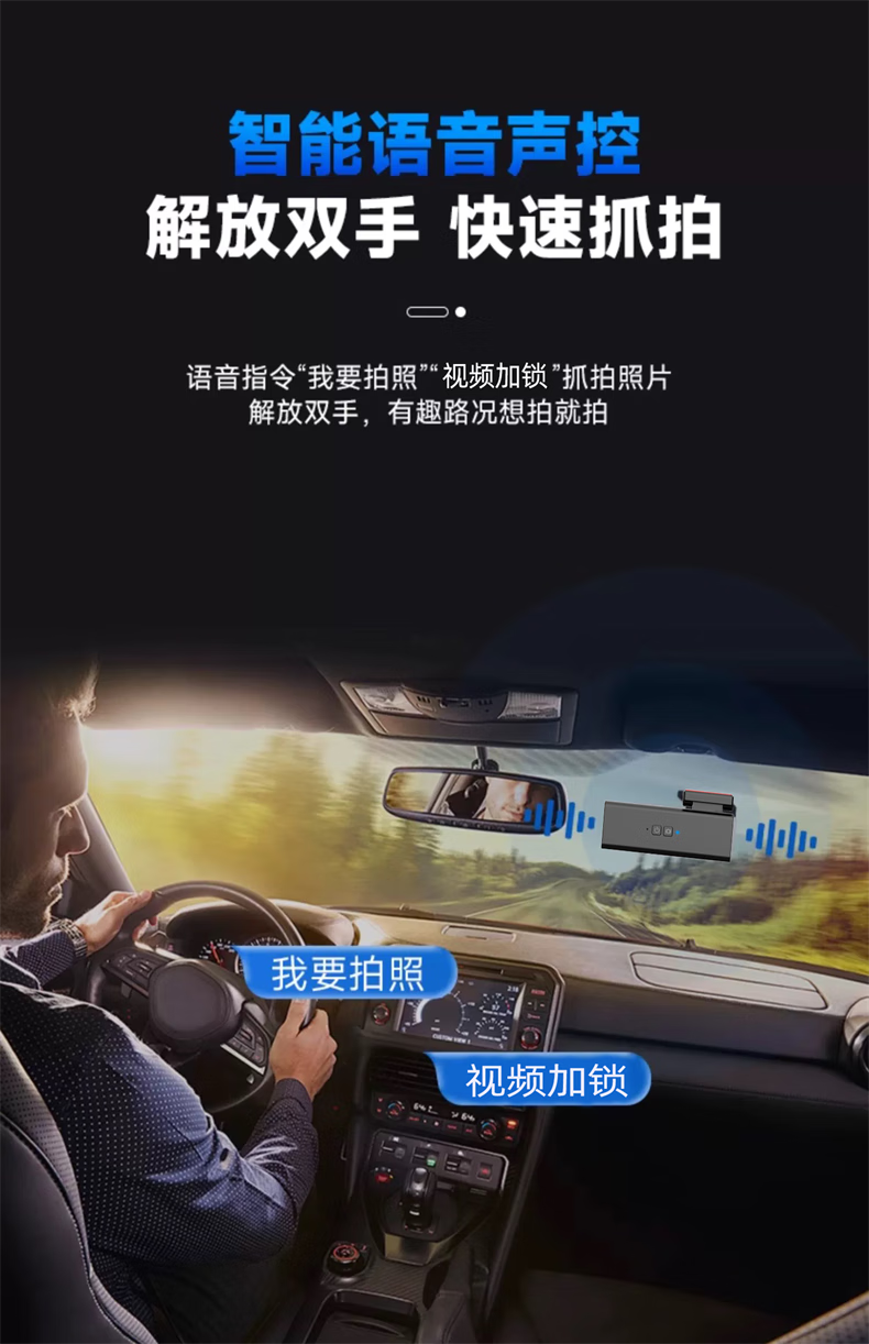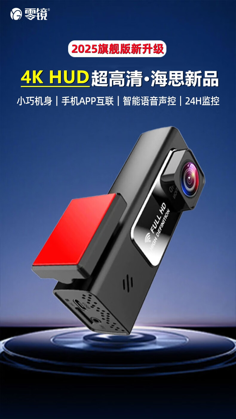 Lingjing 2025 new 4K driving recorder ultra-high definition night vision 24H parking monitoring car inside and outside 360 wire-free USB 64G single lens