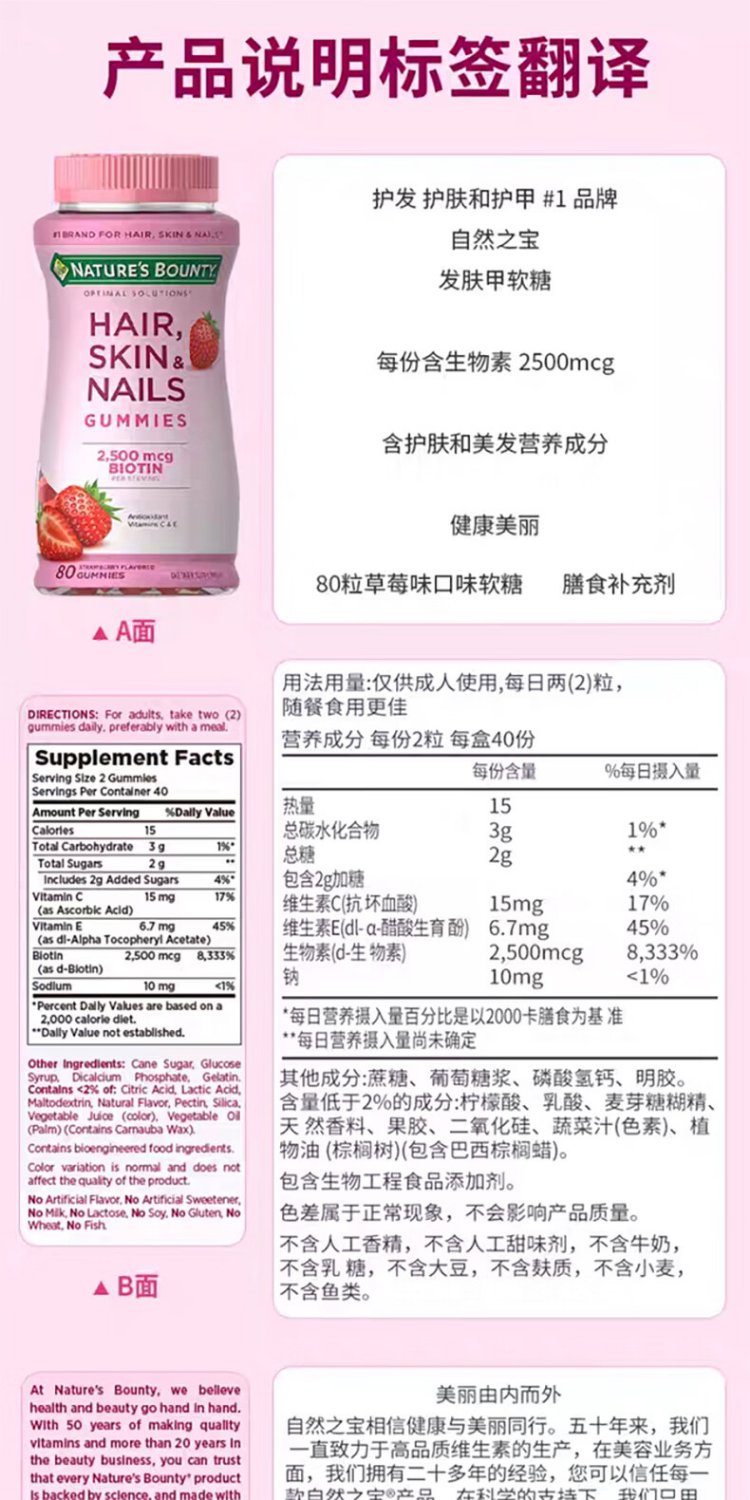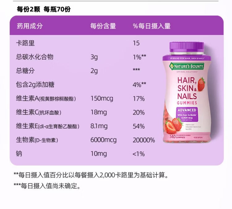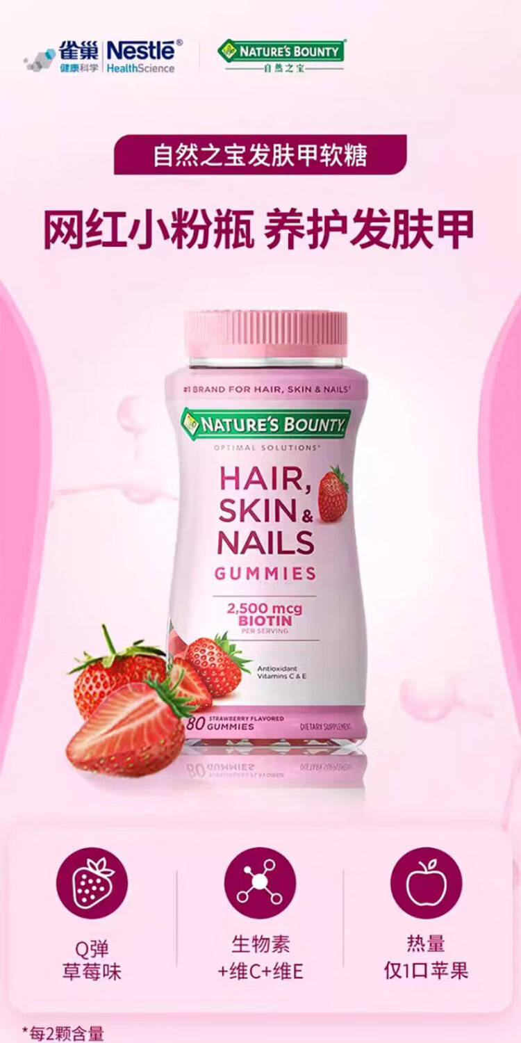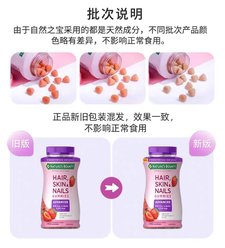 Nature's Treasure Nestle's Hair and Skin Gummies Biotin Complex Vitamins Brighten Nails, Hair Care, Skin Beautification and Promote Collagen Synthesis 2 Capsules Containing 6000mcg | Upgraded Hair and Skin 140 Capsules * 1 Bottle