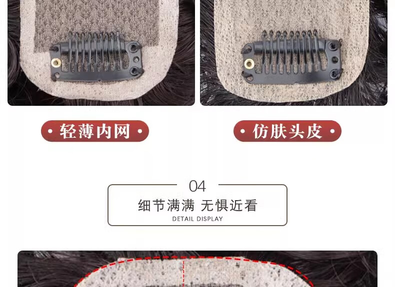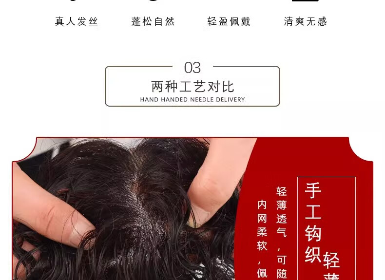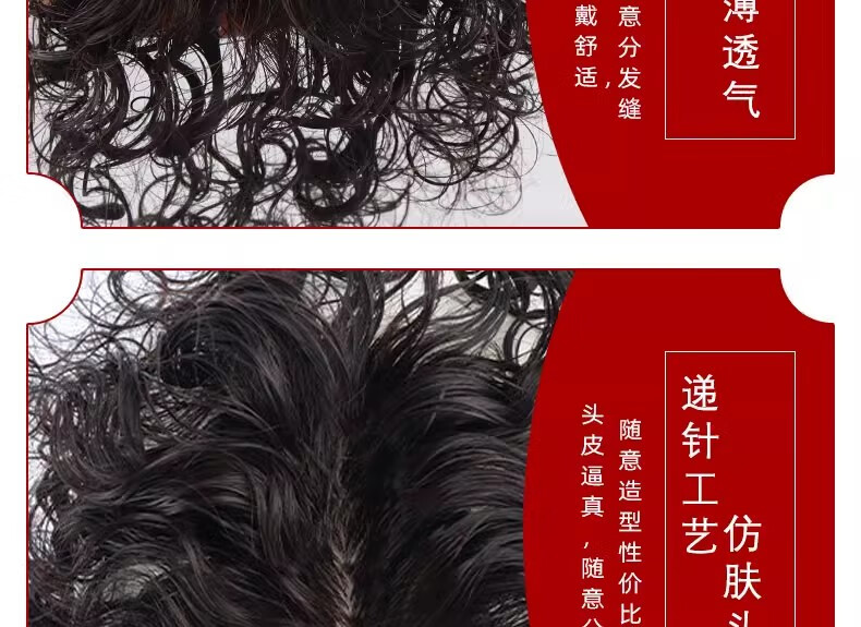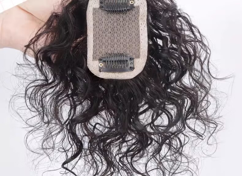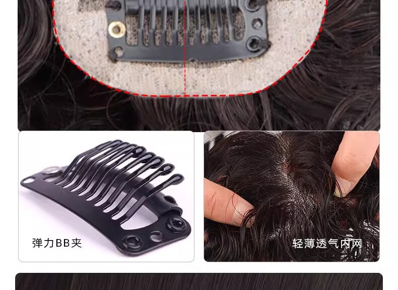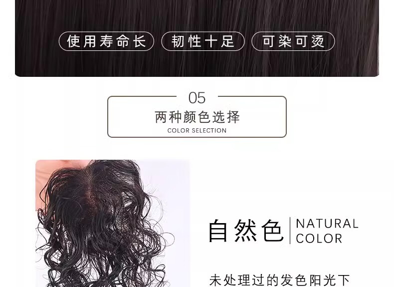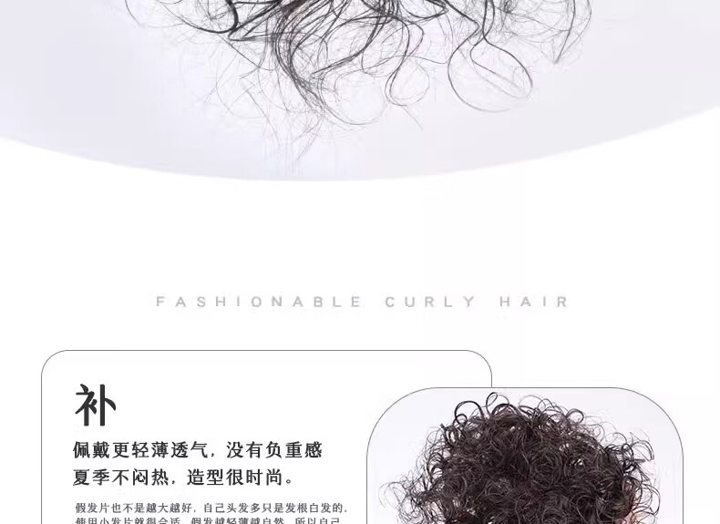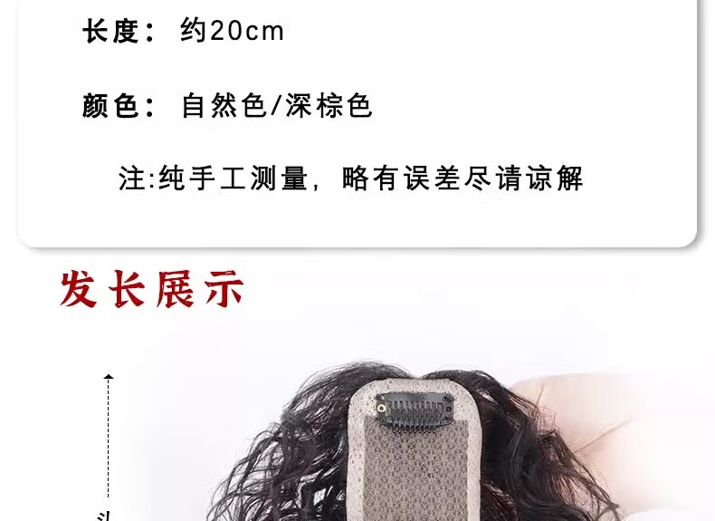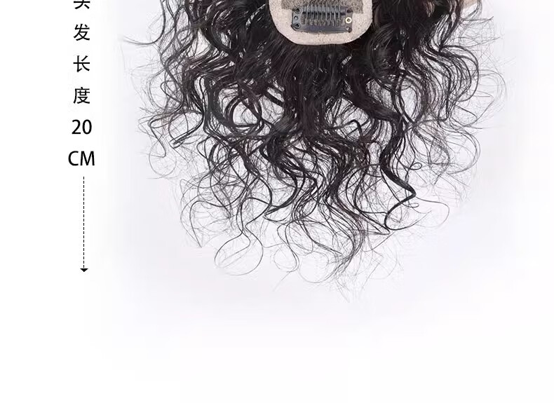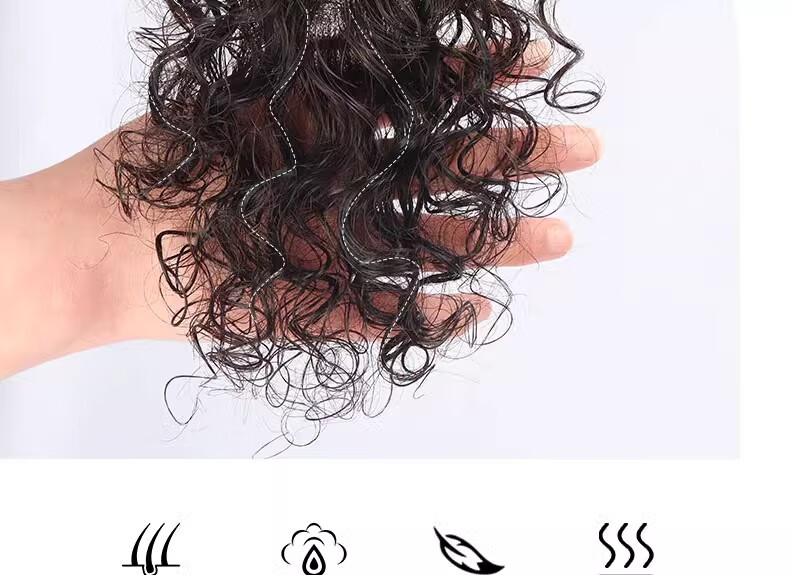 Thin, fully hand-woven, fashionable mother-style human hair wool curling piece, seamless cover of white hair, increase hair volume, fluffy curls, skin-like twist 7*8 rolls, dark brown 20cm