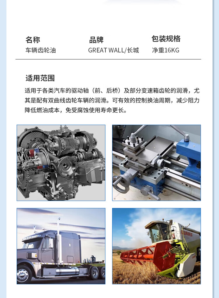 Great Wall heavy-duty vehicle gear oil GL-5 85W-90 manual transmission oil rear axle gear oil 4L/18L Great Wall GL-5 85W-90 16KG
