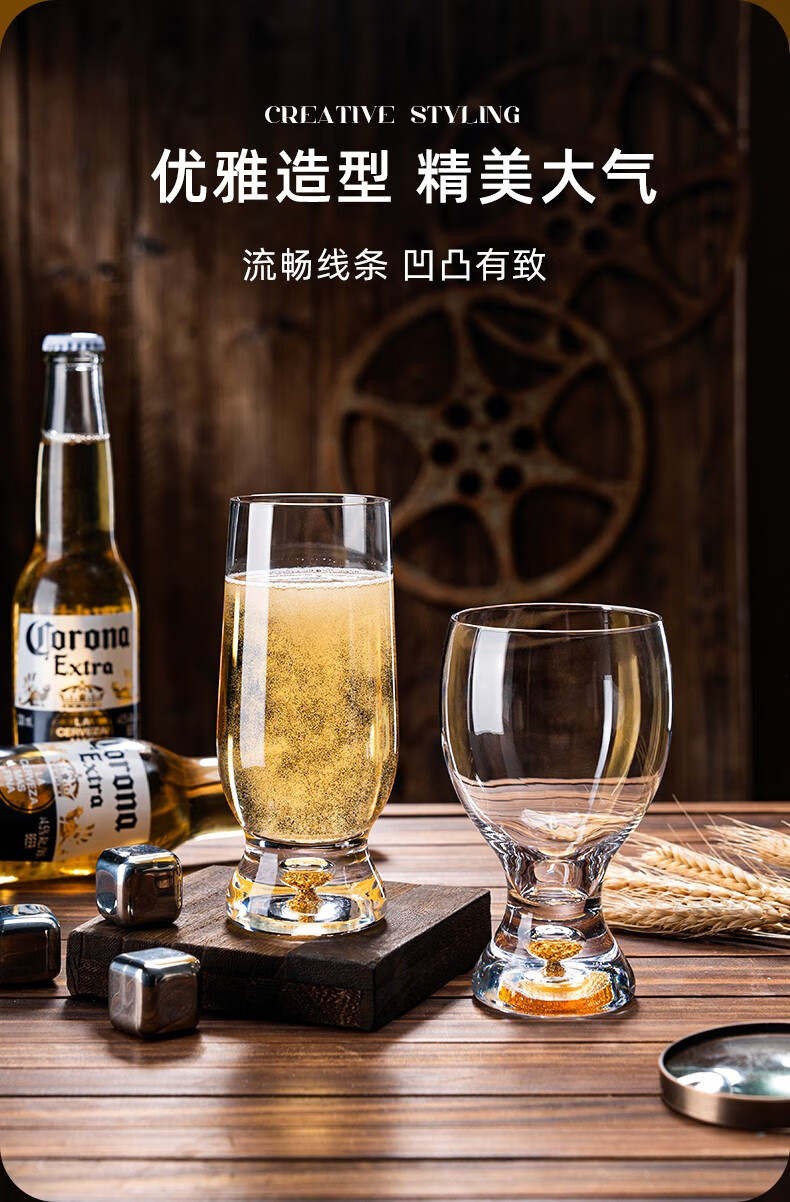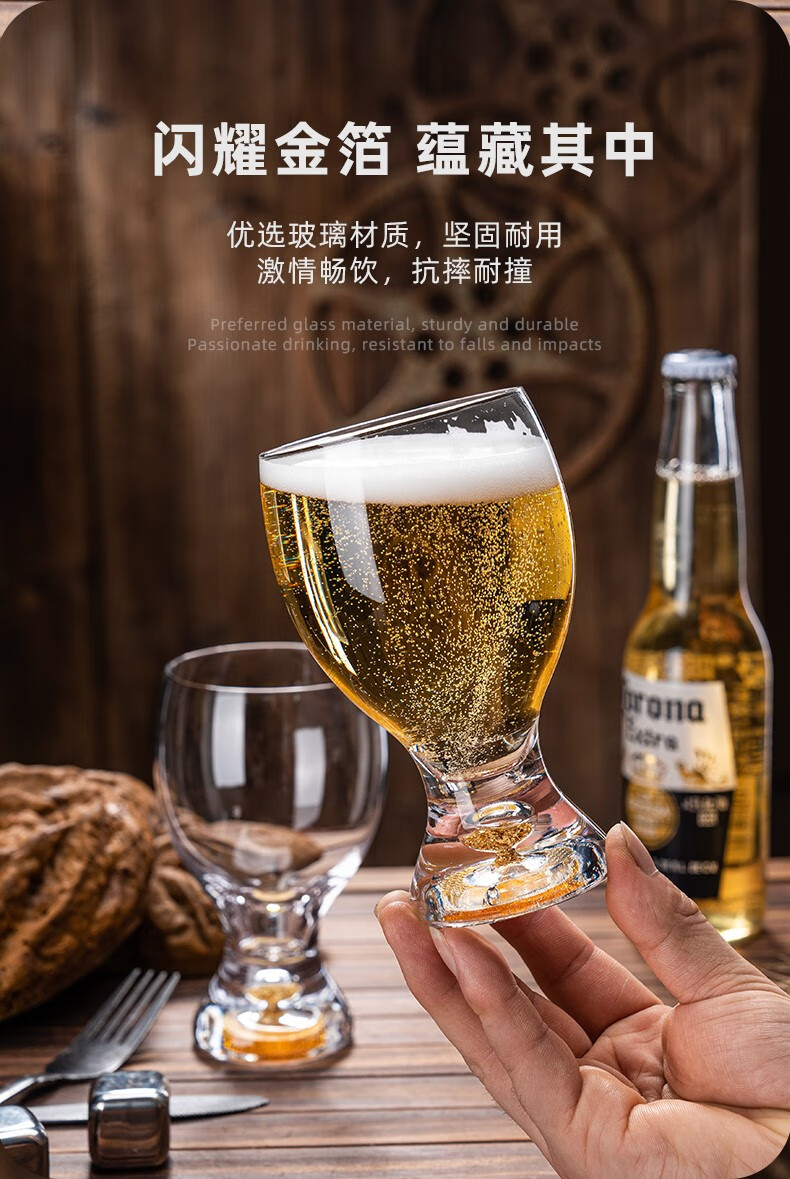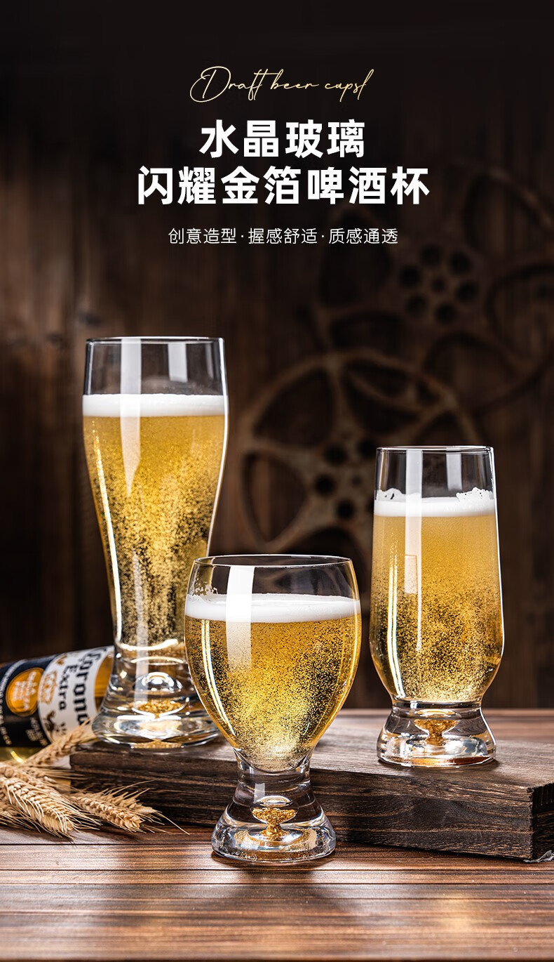 Lugaris gold foil beer mug large capacity household light luxury high-value special craft beer mug set crystal glass gold foil slim waist 330ml/2 pieces