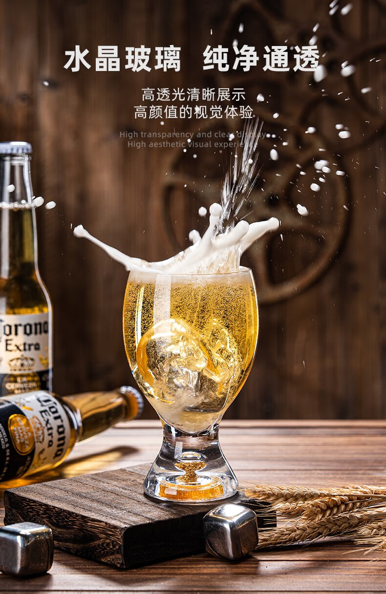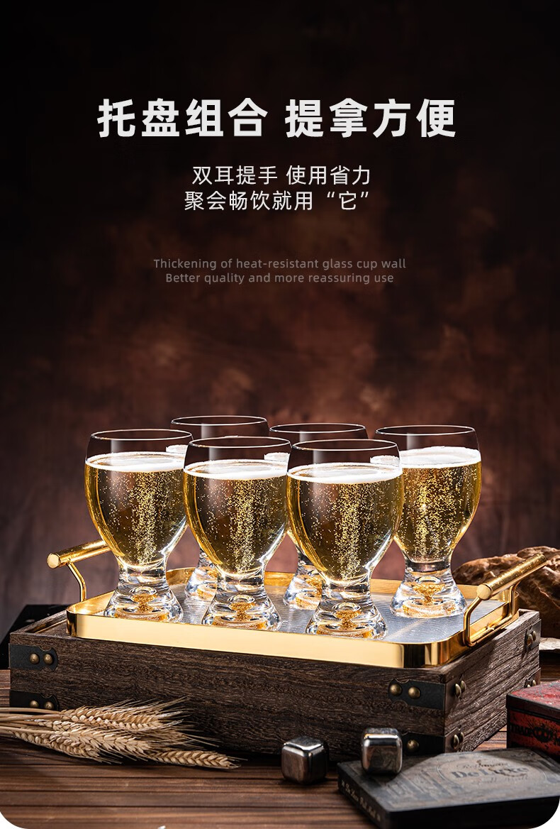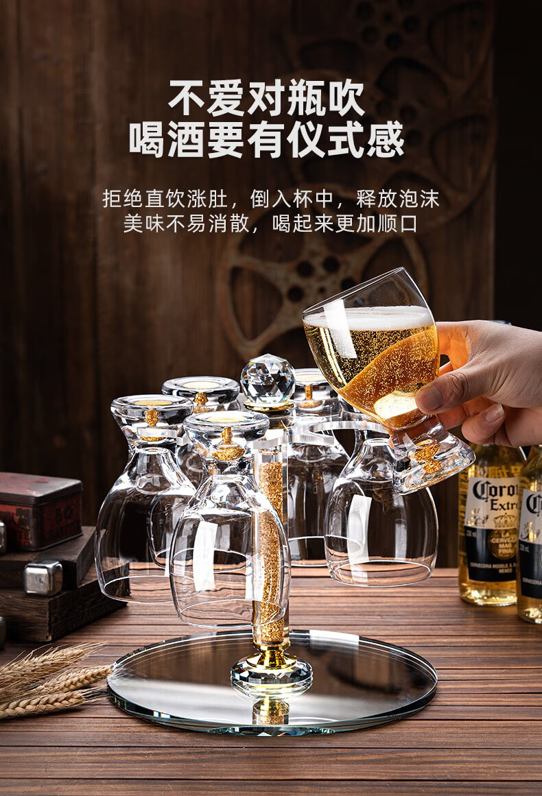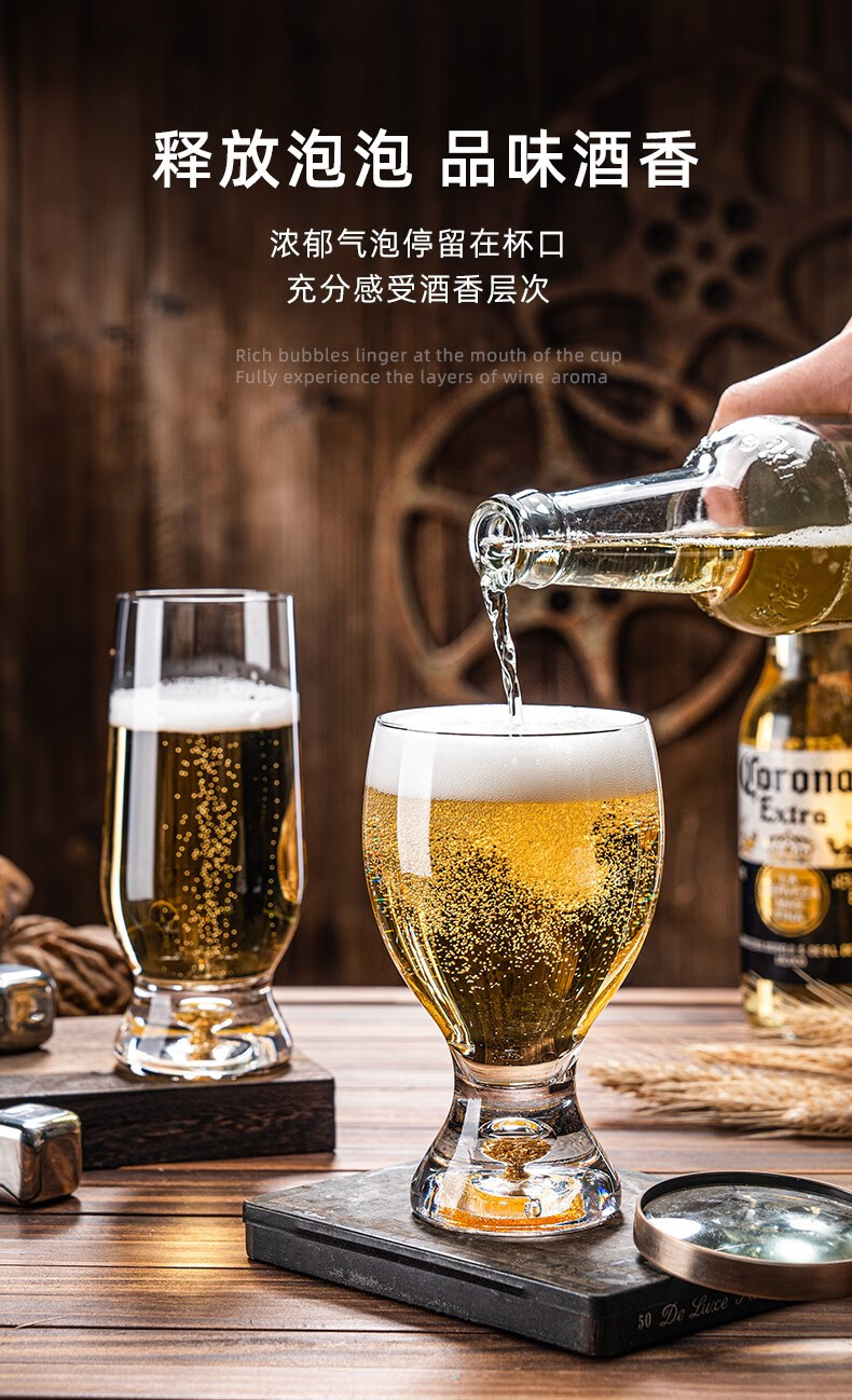 Lugaris gold foil beer mug large capacity household light luxury high-value special craft beer mug set crystal glass gold foil slim waist 330ml/2 pieces