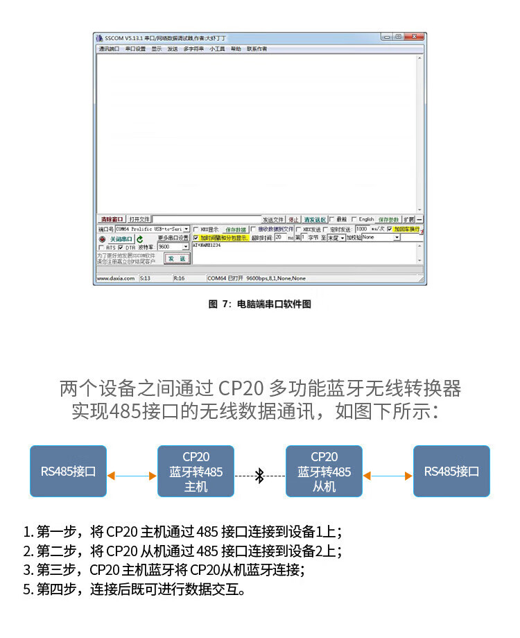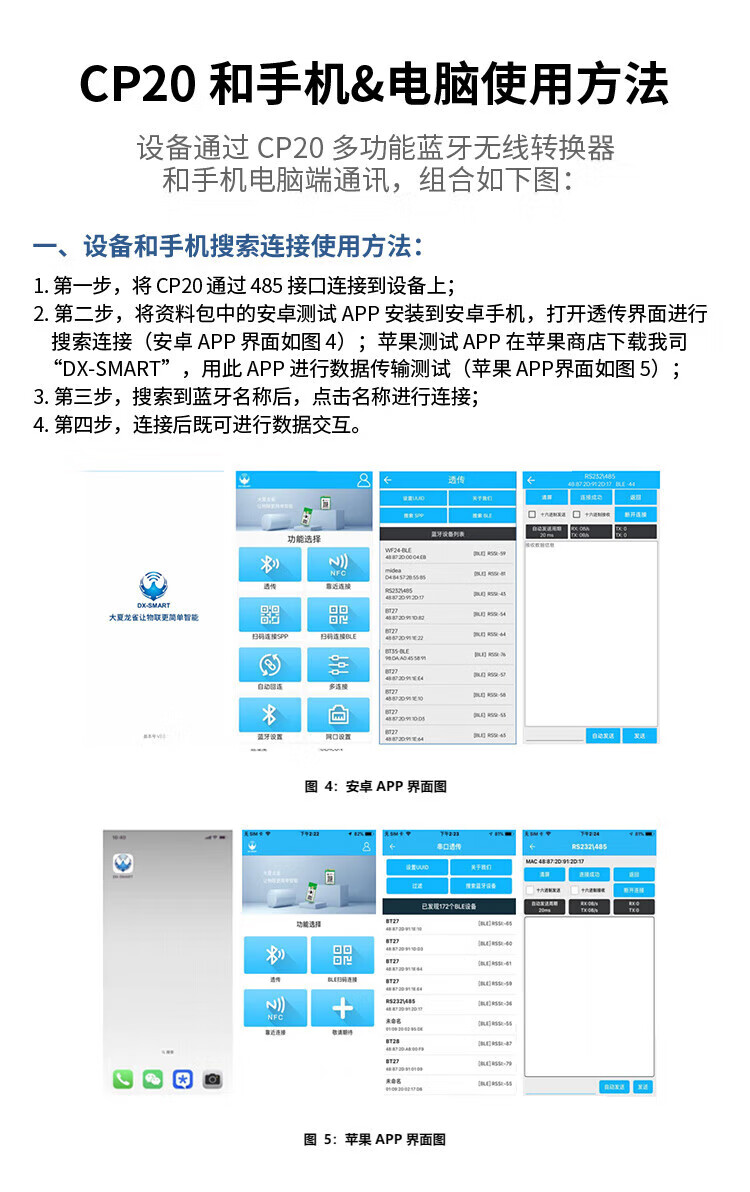 Bluetooth Wireless USB to RS485 Module Communication Converter Industrial Grade Serial Data Transparent Transmission DX-CP24-Mobile/Laptop Model