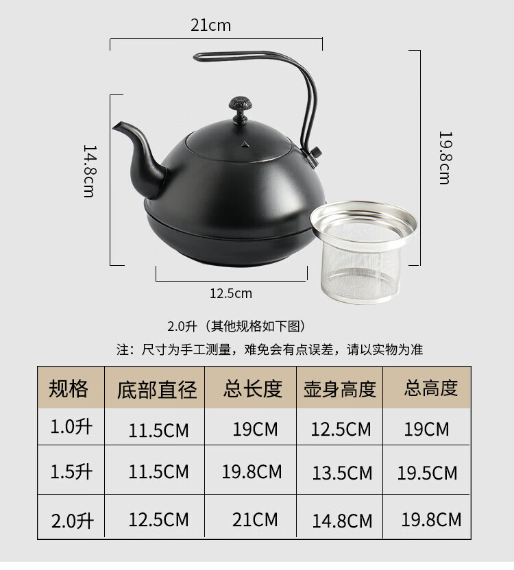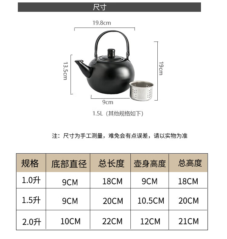 Shadow thickened stainless steel hotel teapot restaurant hotel teapot black classical small tea pot induction cooker kettle thickened stainless steel color teapot without filter with detergent 1.2L 1L or more