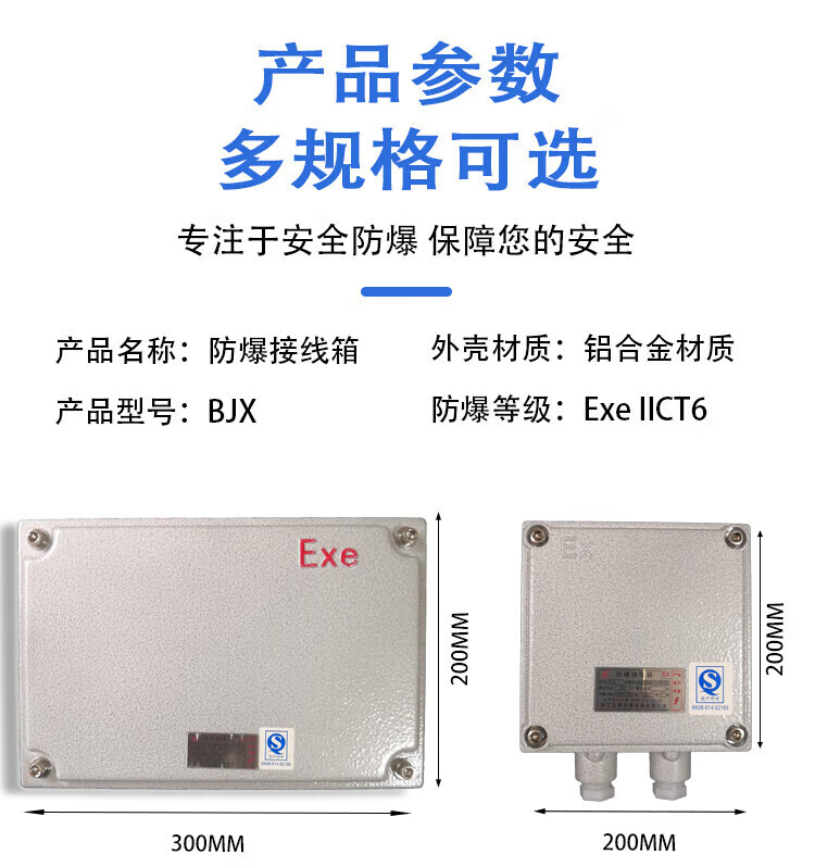 Explosion-proof junction box increased safety type 200*135 300*200 400*300 operation control box button junction box 200*200*90MM 2 6-point through-heads