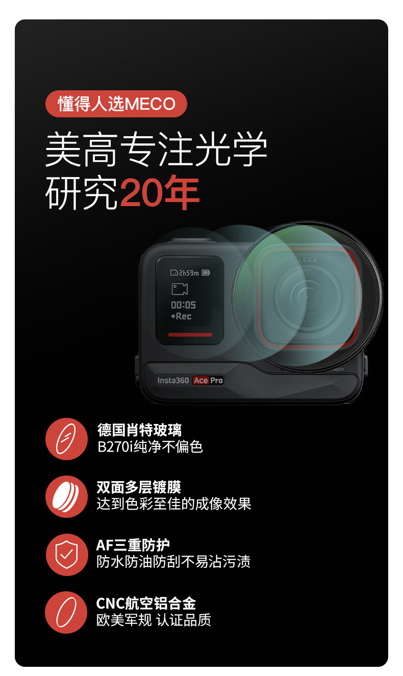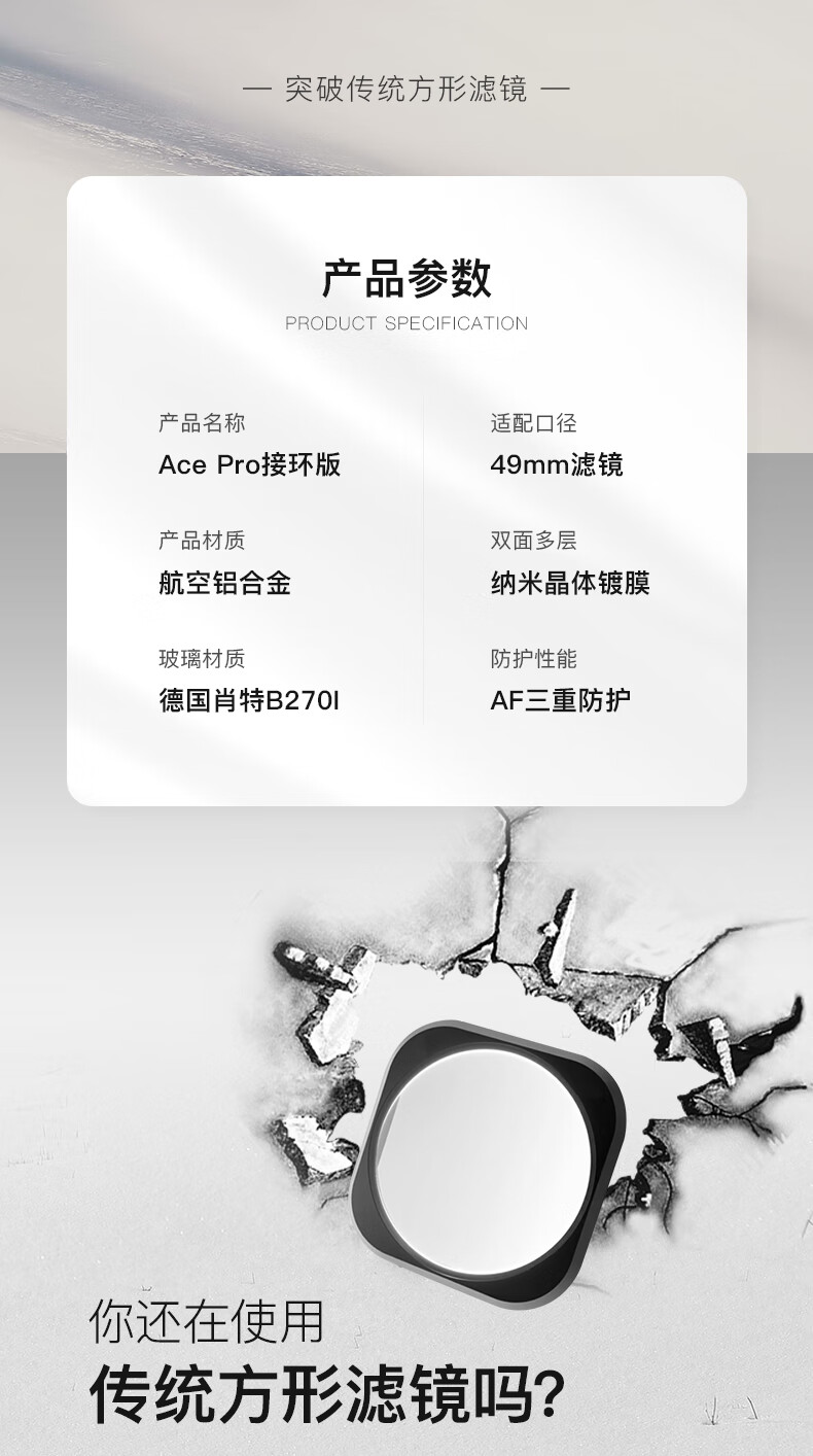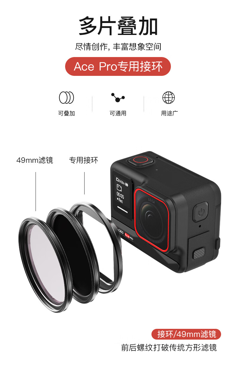 MECORIGHT applicable shadow stone Insta360 AcePro2 1 action camera filter adapter accessories UV mirror ND light filter CPL polarizer star light mirror ace pro 2 set special adapter (not including filter) Insta360Ace pro 2 generation