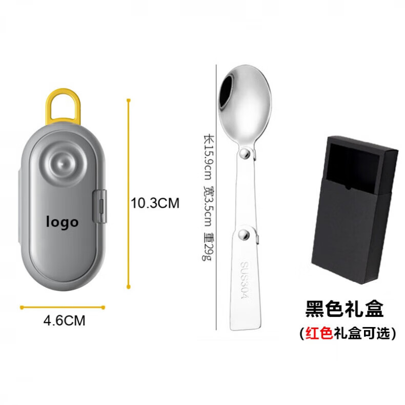 Shijin German quality folding spoon travel dust-proof portable tableware stainless steel student office worker storage box white box + folding spoon