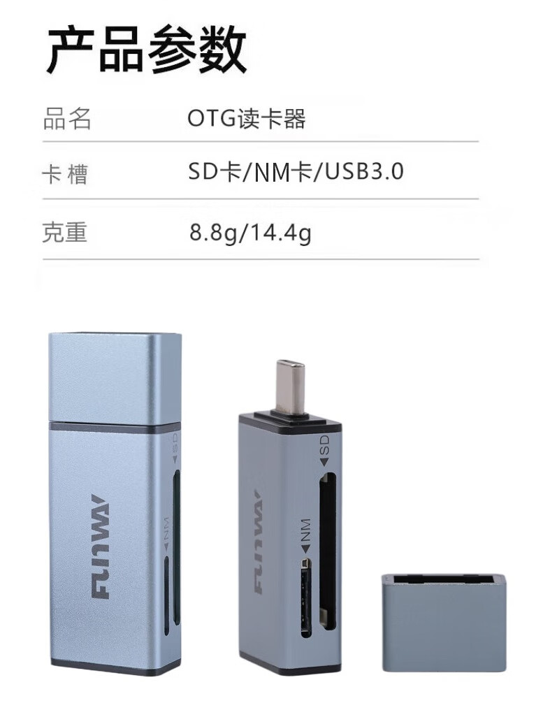 FUNWAY is suitable for Huawei NM card high-speed card reader multi-function two-in-one type-c computer mobile phone tablet IPAD gray