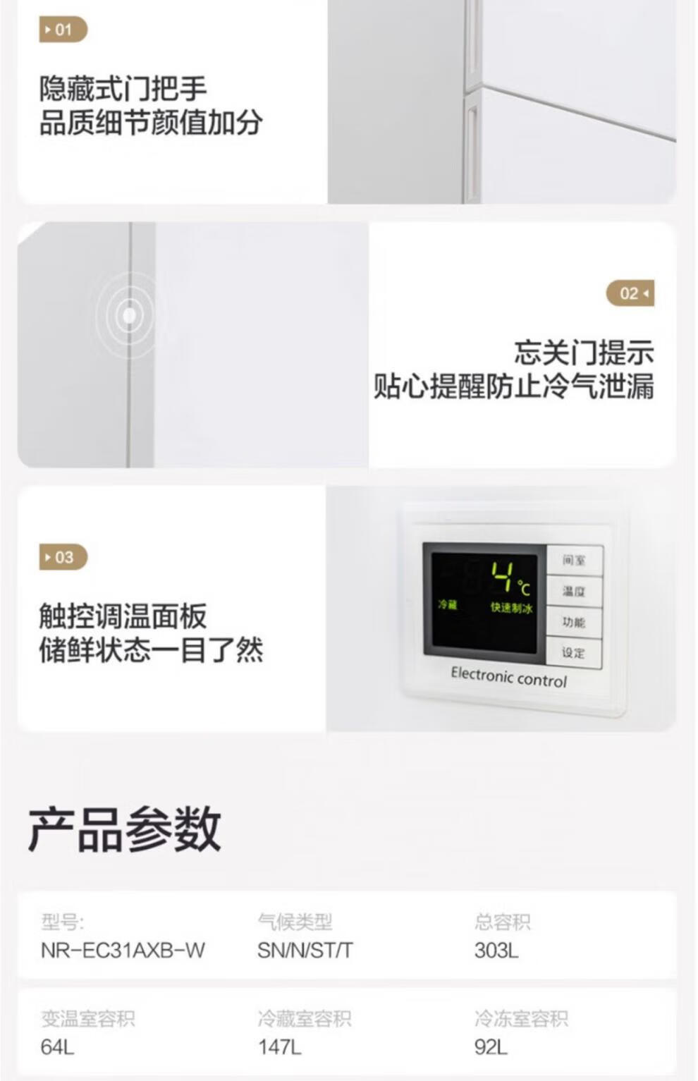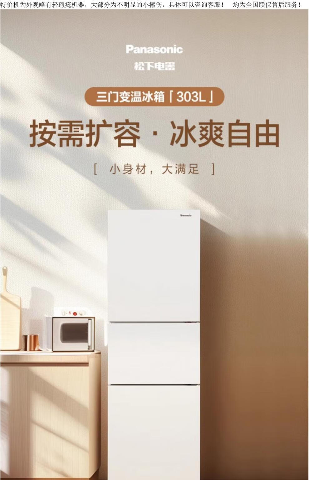 Panasonic/Panasonic NR-EC31AXB-W/XC30A2A three-door air-cooled frost-free inverter refrigerator 300L official quality home appliances tail goods Clear white NR-EC31AXB-W QX automatic ice machine