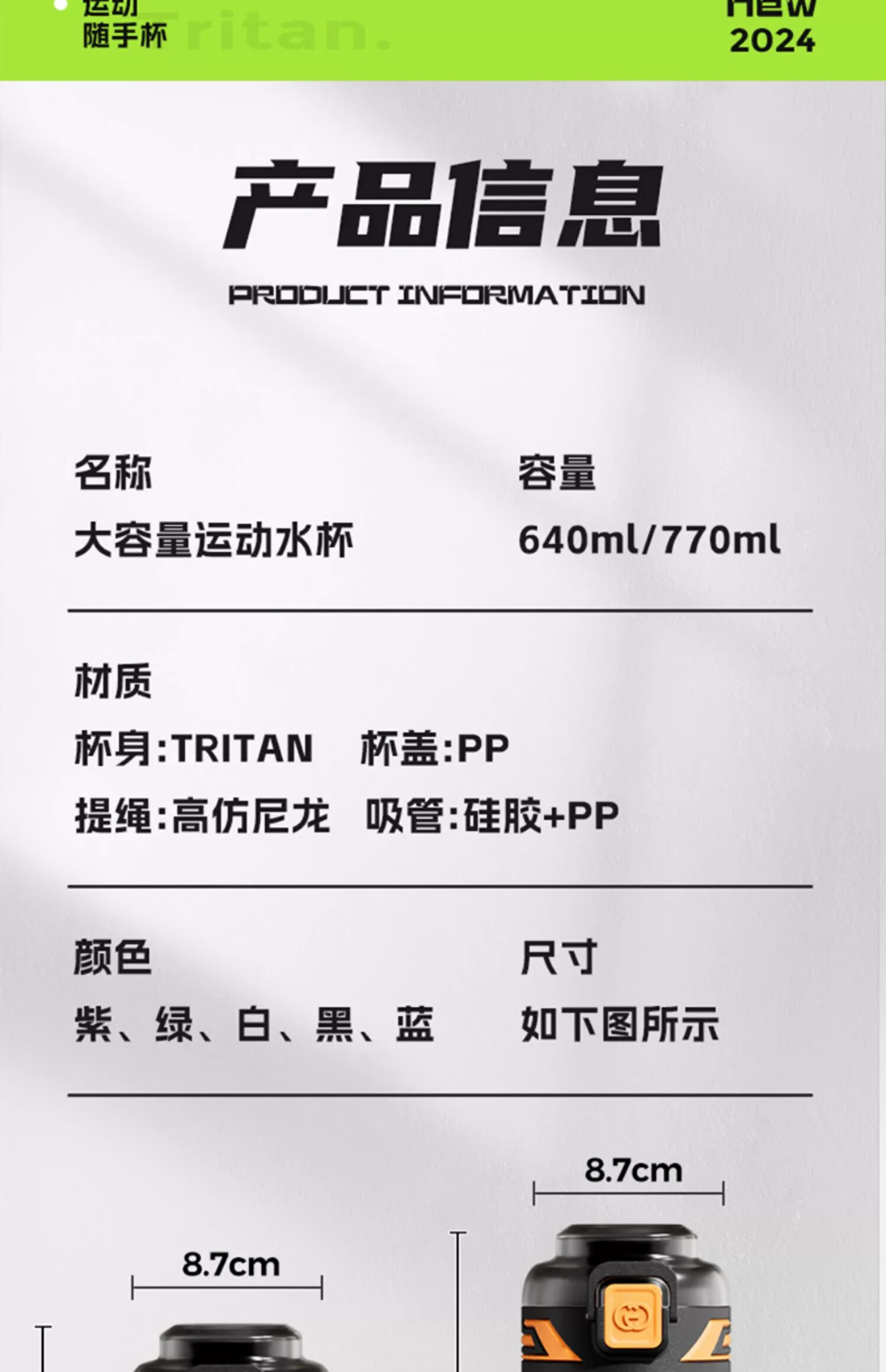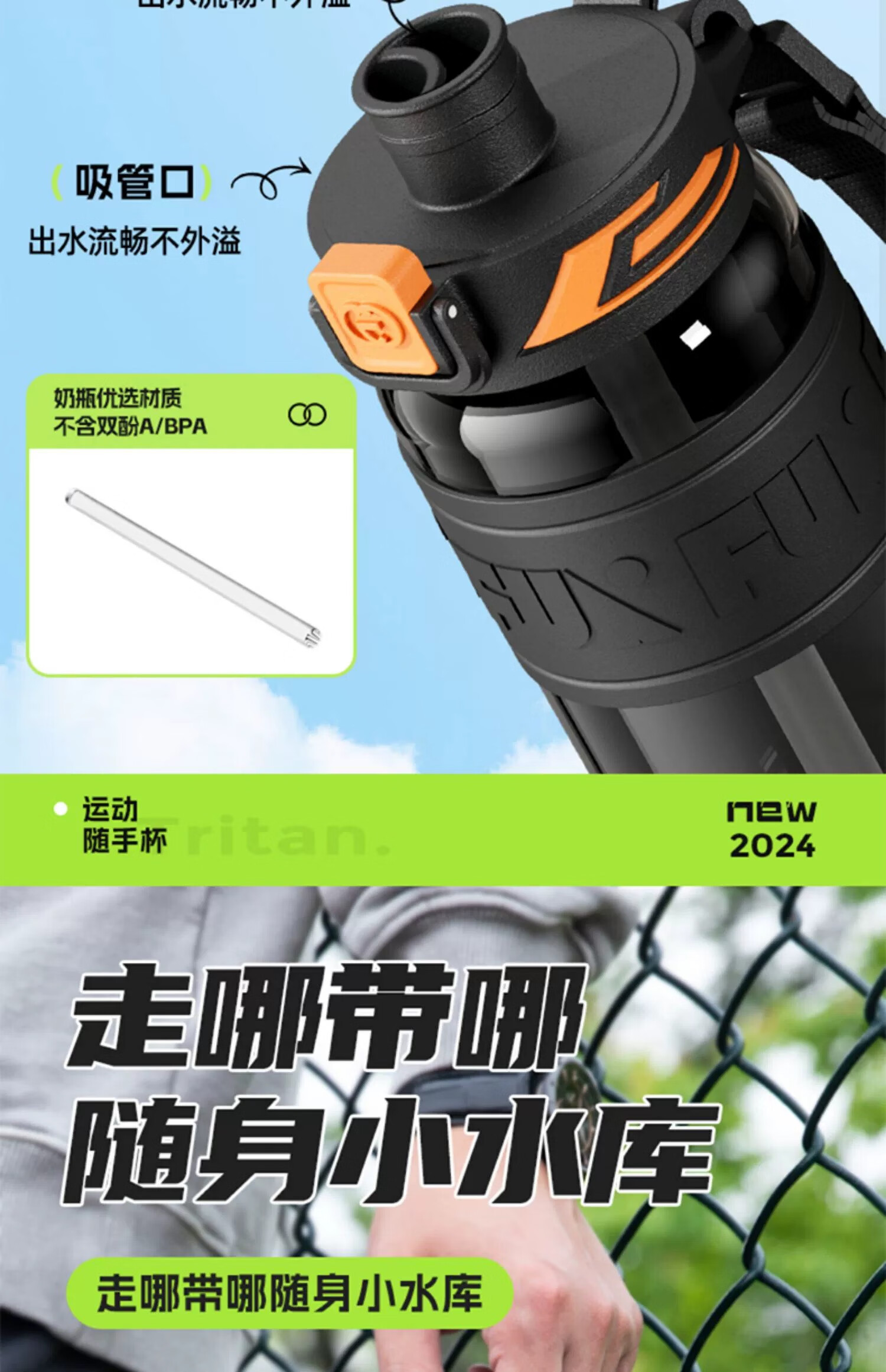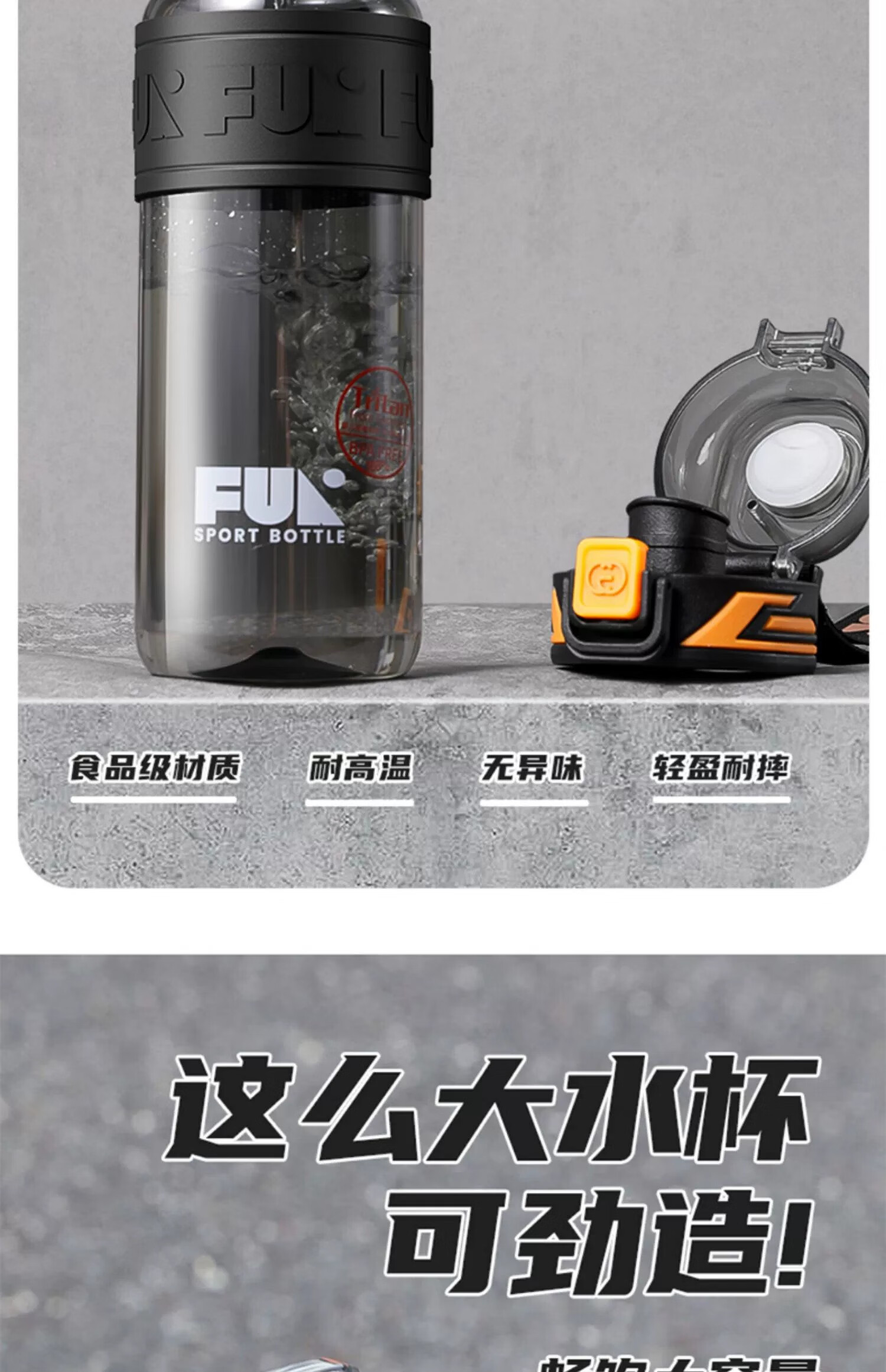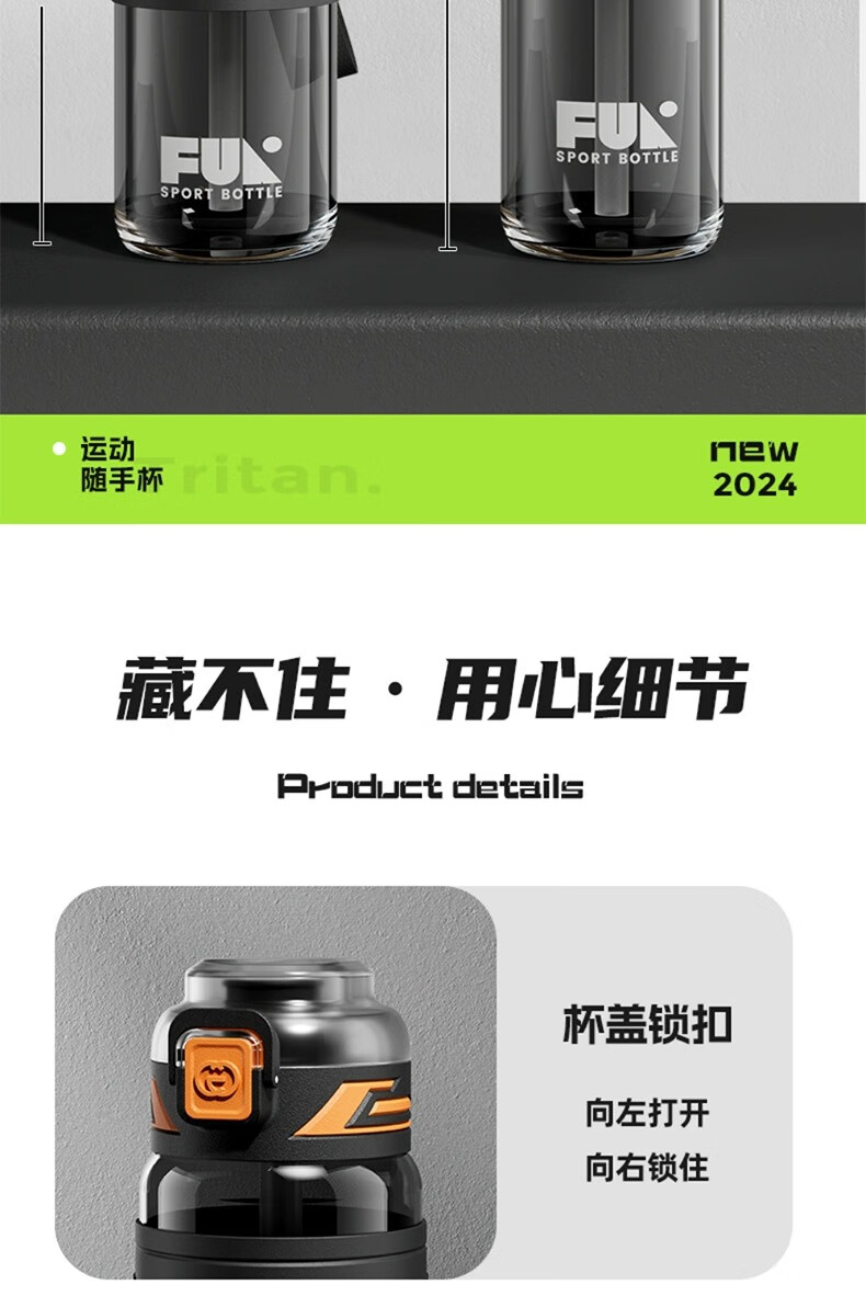 SZTAA Sports Water Cup Large Capacity Sports Water Bottle High Temperature Resistant Tritan Water Cup Men's Summer Ton Bucket Ton Student Dayton Edelweiss White (Tritan + Double Drink) 640ml