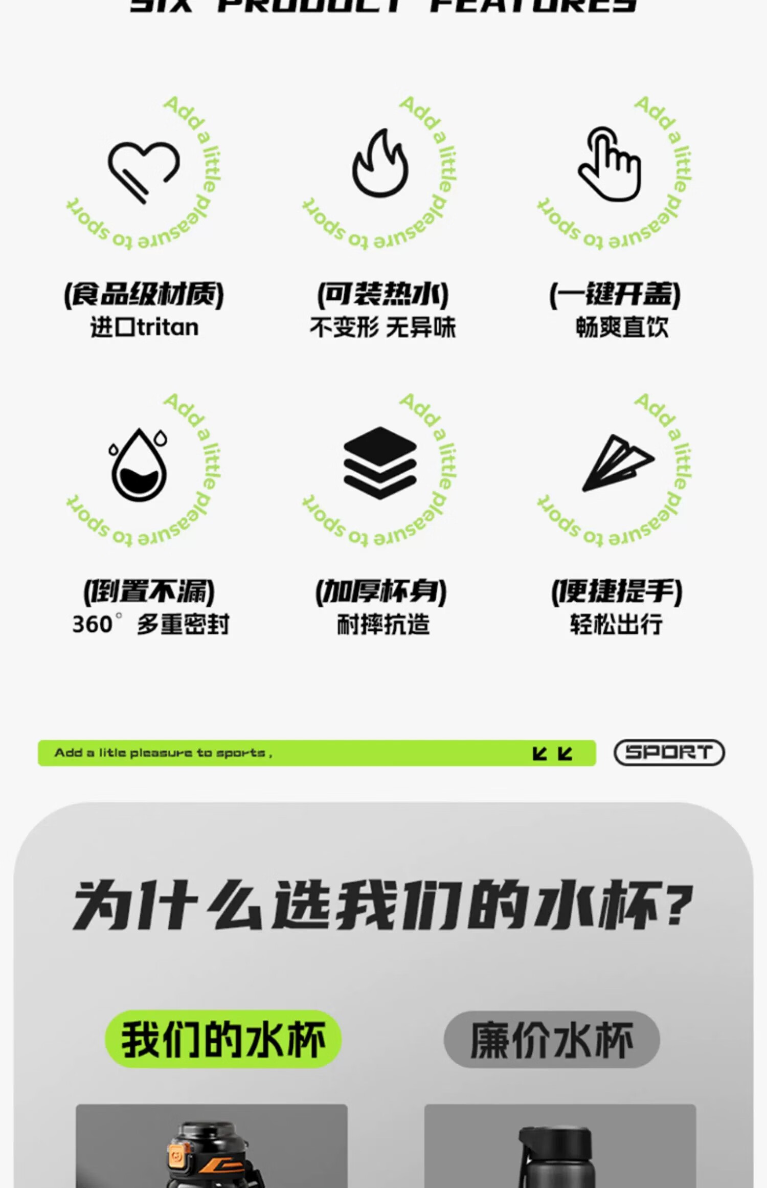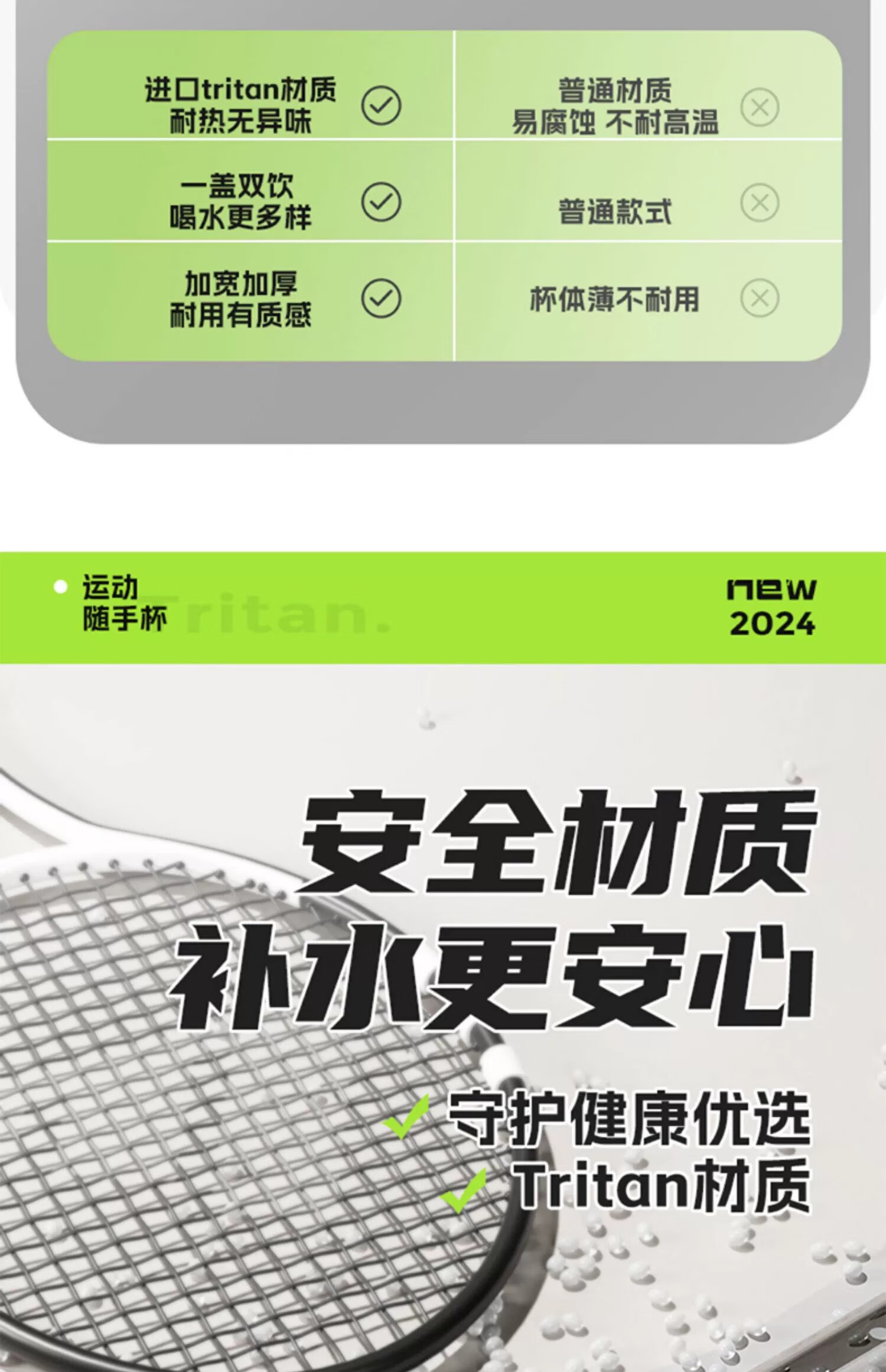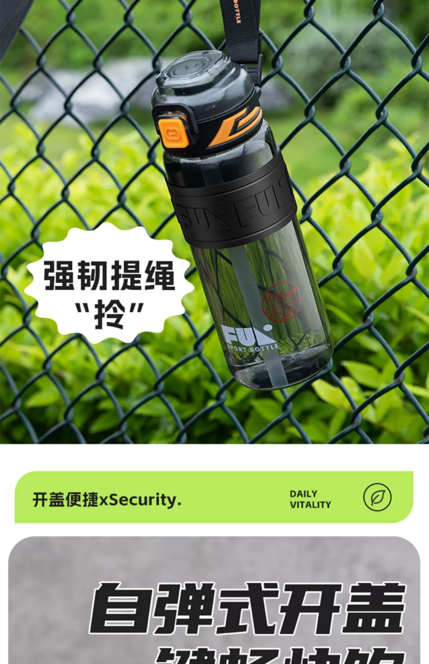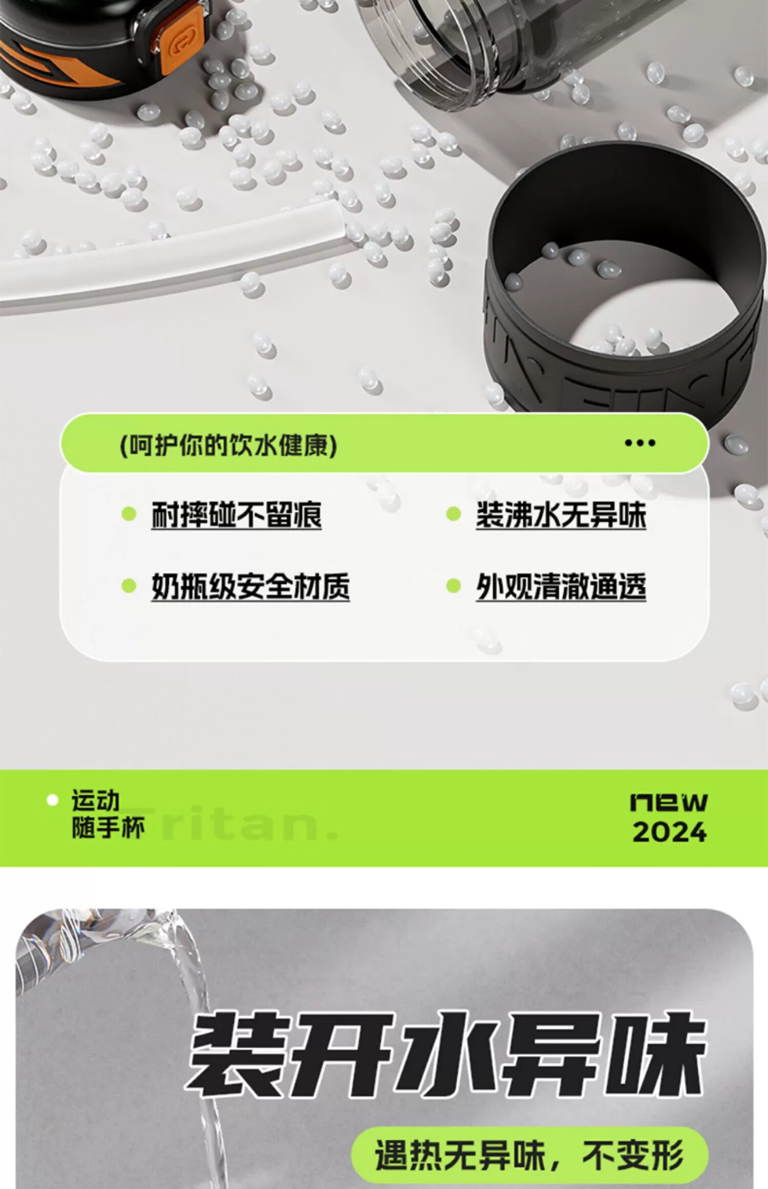 SZTAA Sports Water Cup Large Capacity Sports Water Bottle High Temperature Resistant Tritan Water Cup Men's Summer Ton Bucket Ton Student Dayton Edelweiss White (Tritan + Double Drink) 640ml