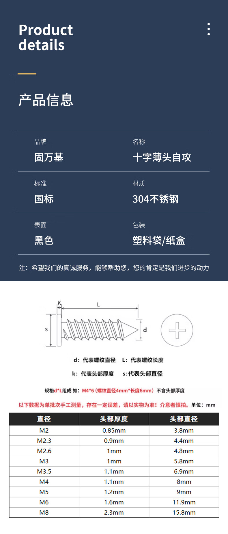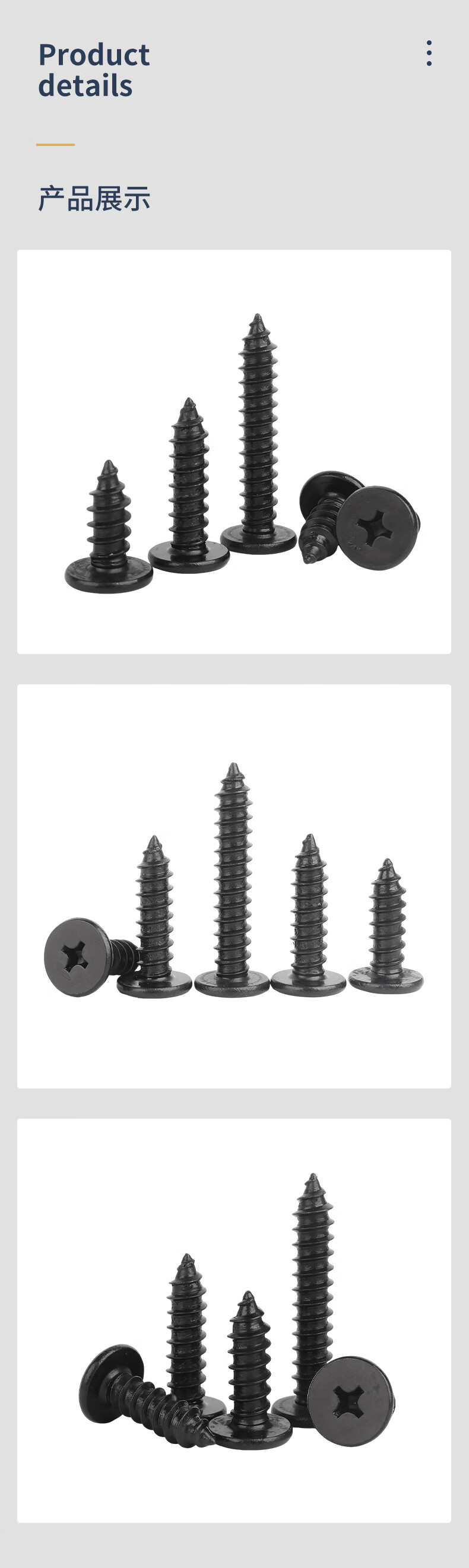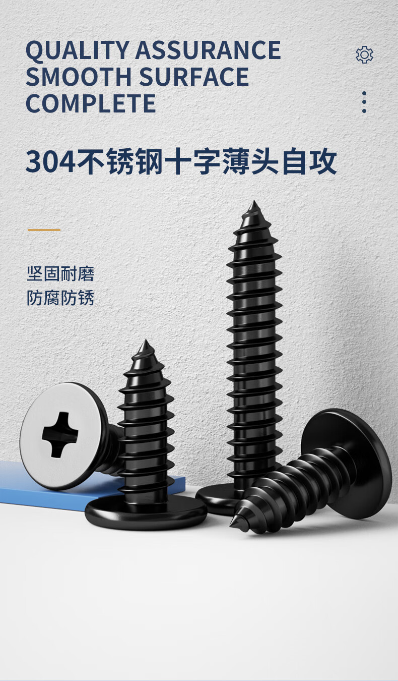 Guwanji CA black 304 stainless steel flat head cross self-tapping screws large thin head flat head pointed tail countersunk head screws M2x5 (100 pieces) 304 black