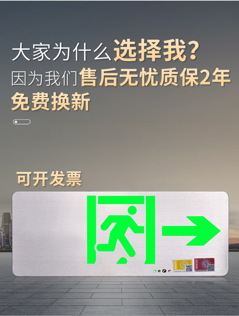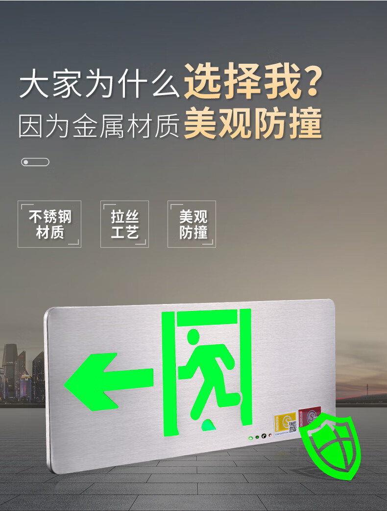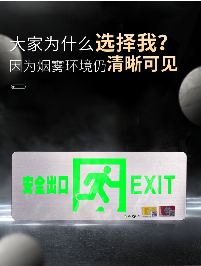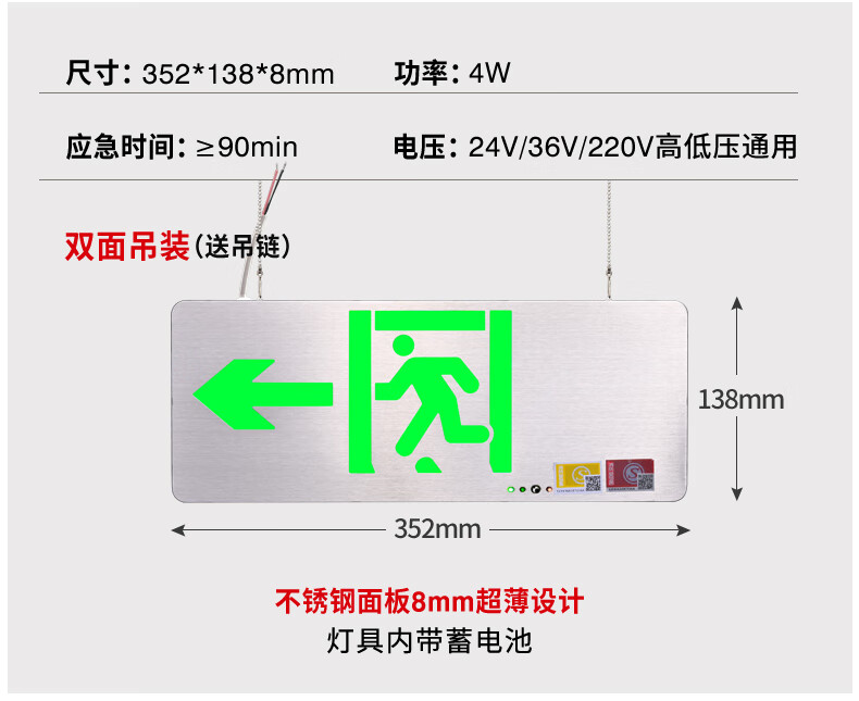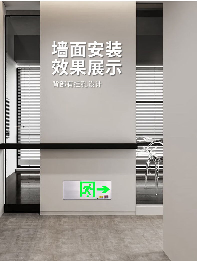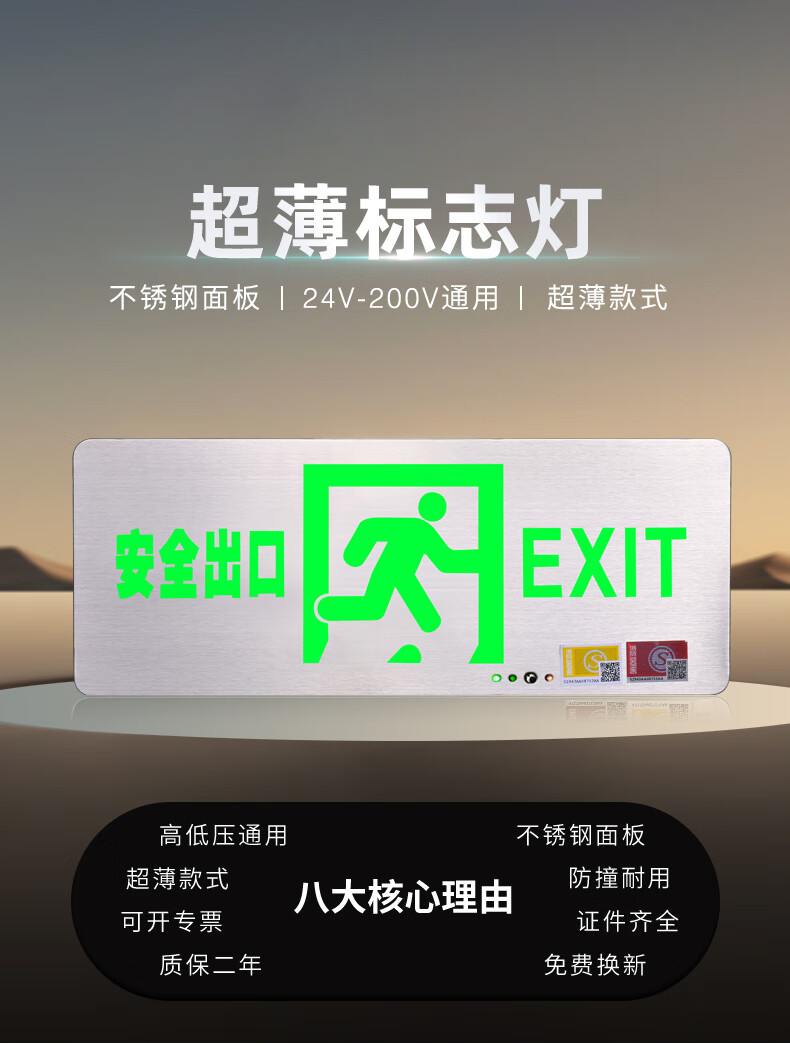 Qijian stainless steel safety exit indicator light fire emergency lighting emergency passage evacuation sign sign emergency light wall-mounted single-sided safety exit 24-220V universal