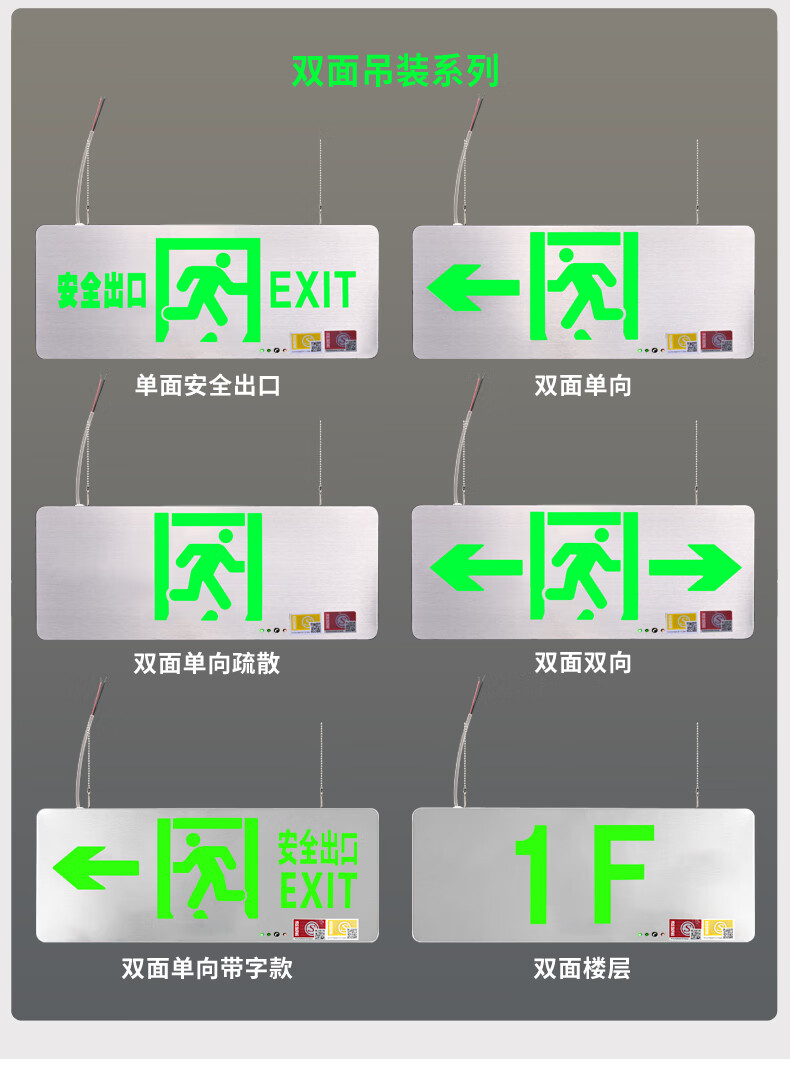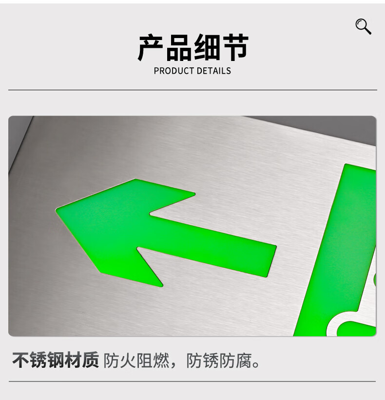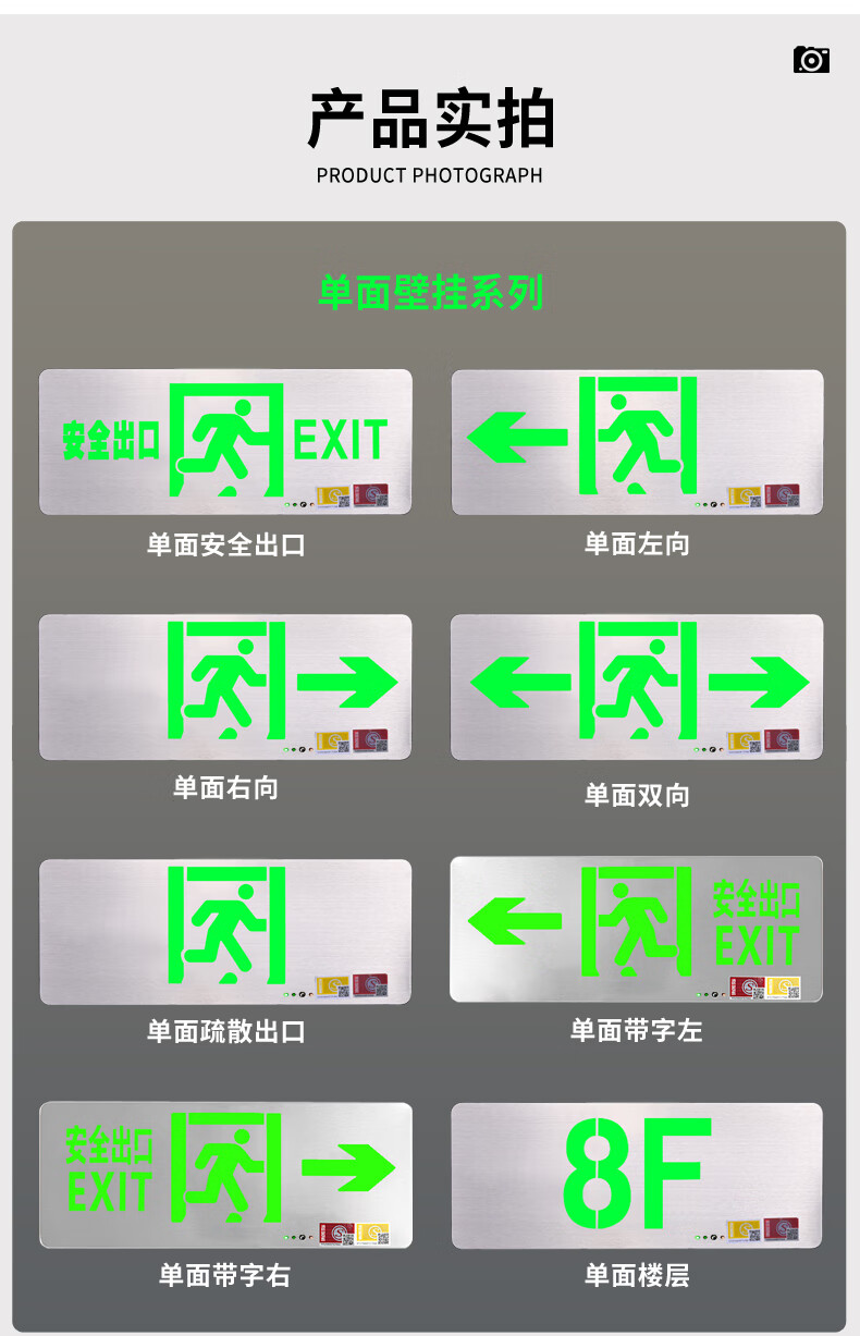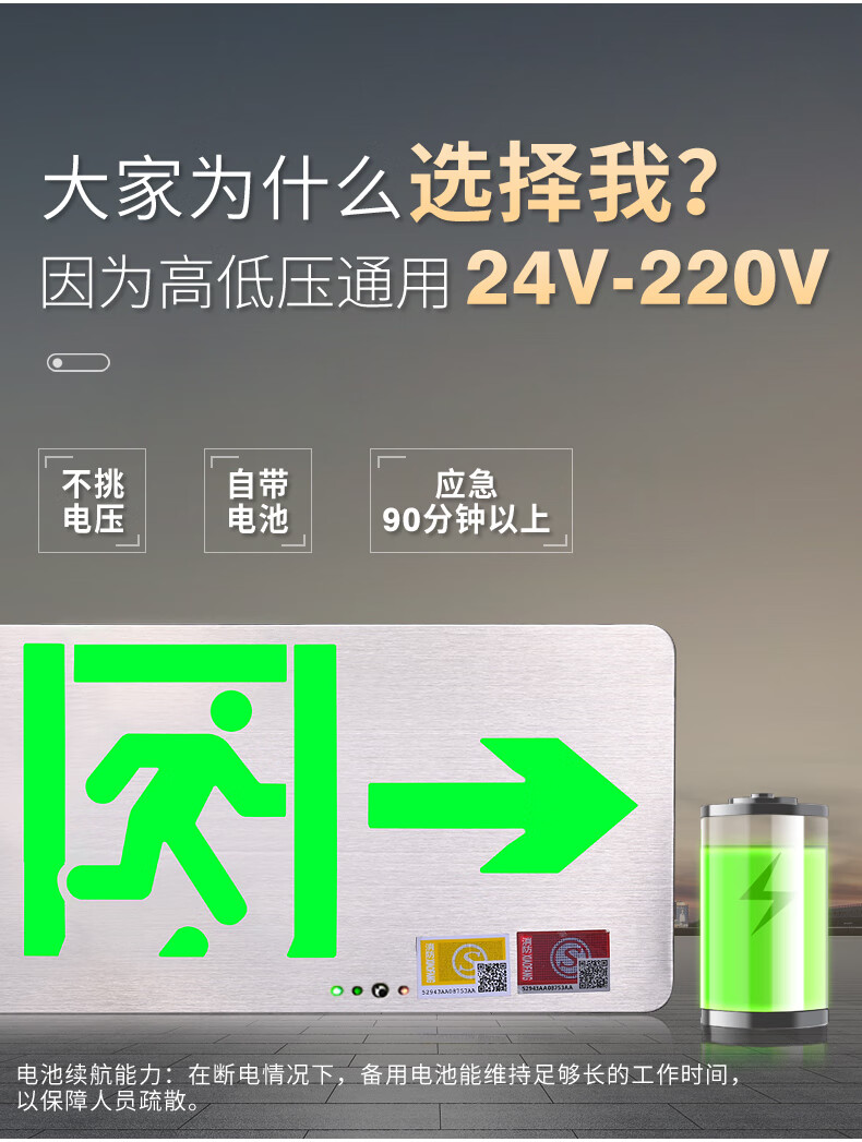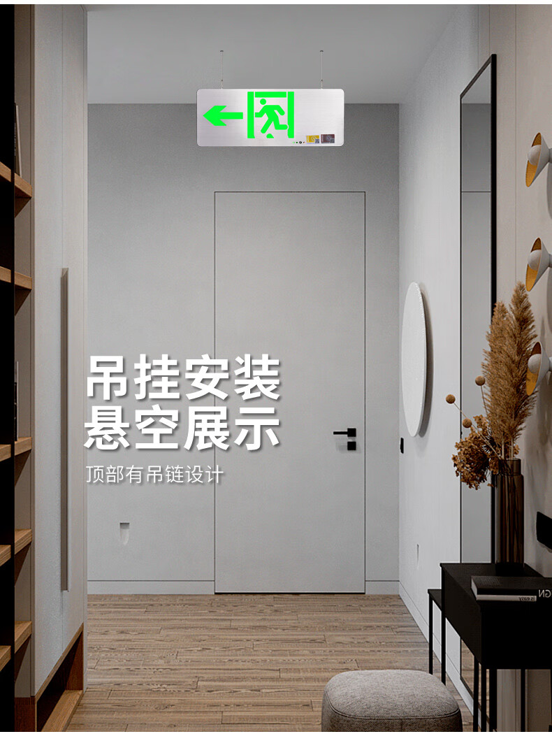 Qijian stainless steel safety exit indicator light fire emergency lighting emergency passage evacuation sign sign emergency light wall-mounted single-sided safety exit 24-220V universal