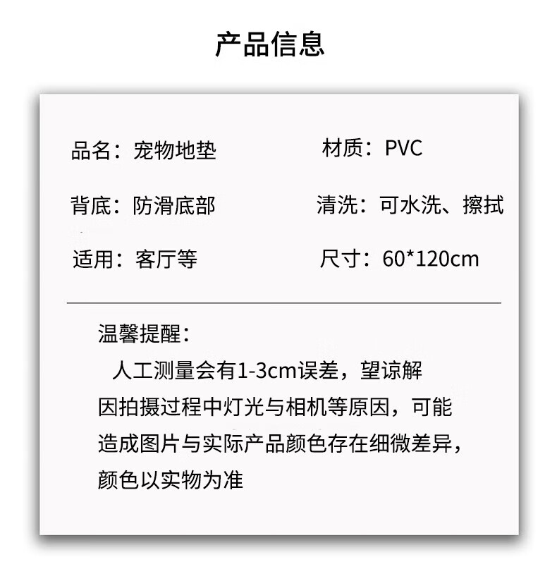 Jingeyu pet carpet living room carpet pvc waterproof and urine-proof pet dog and cat litter fence meal no-wash anti-slip mat cookie biscuit dog 60*120cm