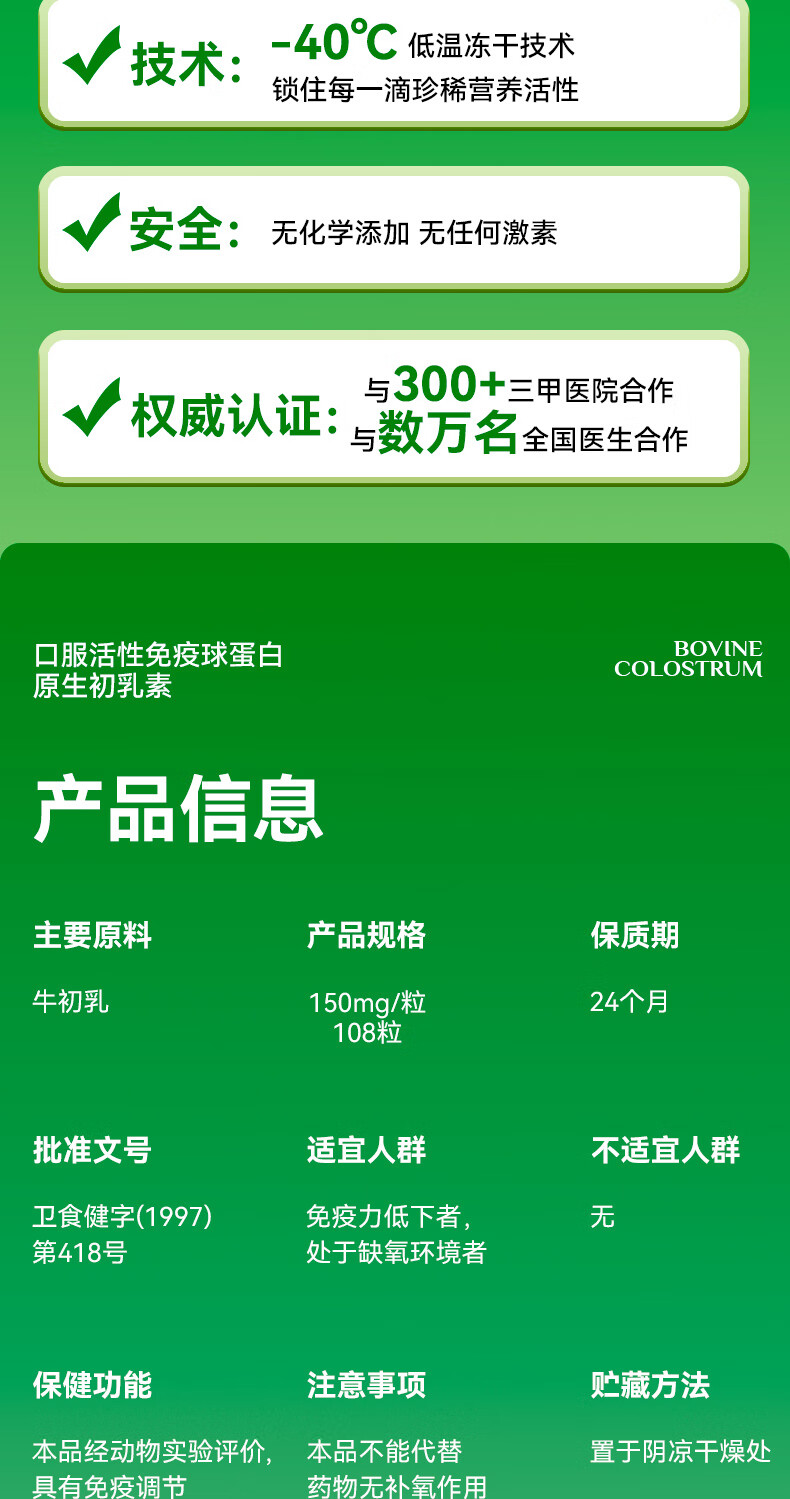 Native Colostrum Capsules / Immunoglobulin / Regulate immunity / No unsuitable people