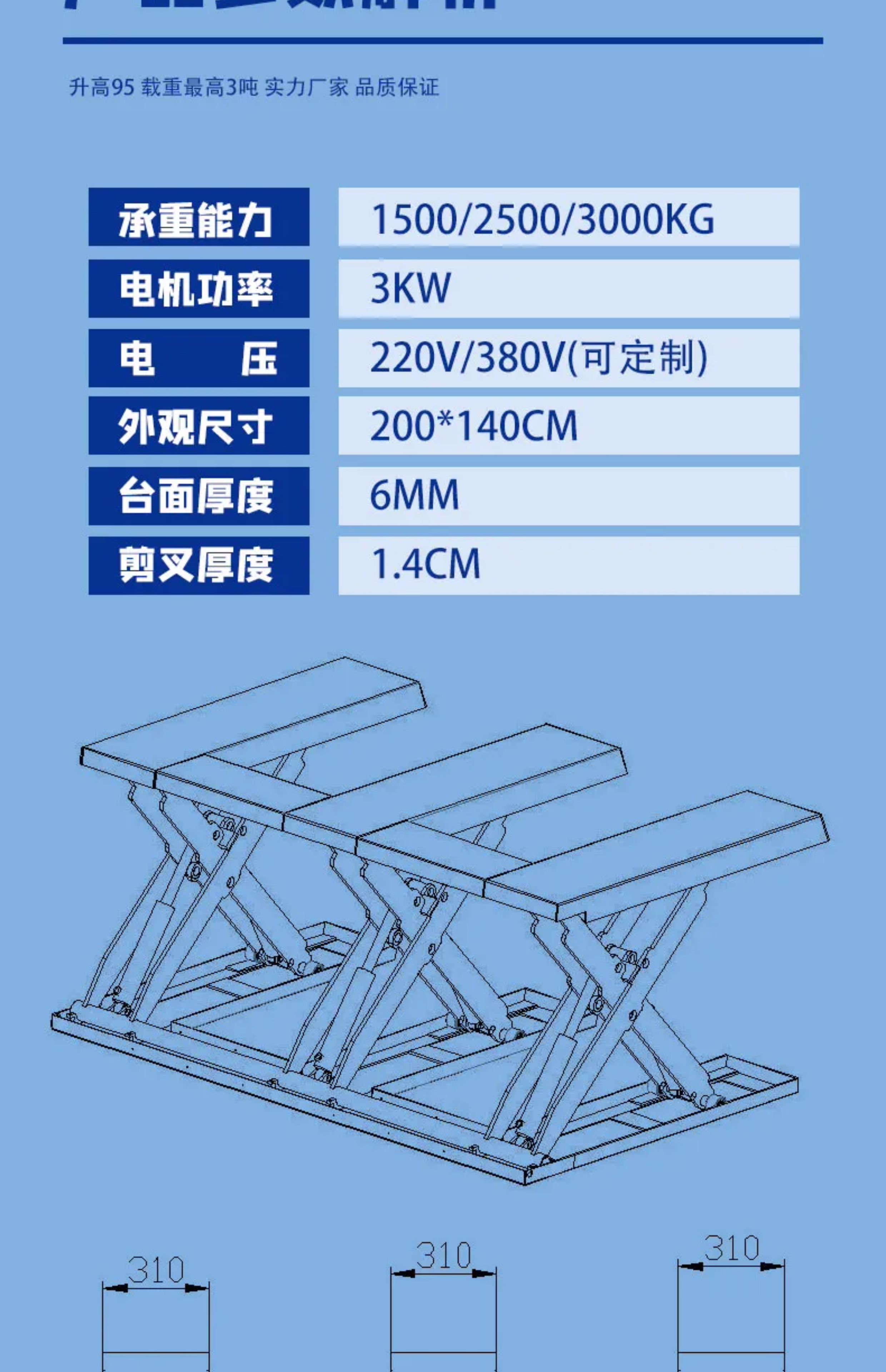 Wen Yijia 3-ton trench-free E-shaped hydraulic lifting platform lifts woodworking cutting machine loading table scissor-type lifting E-type 3t automatic induction full coverage of work scenarios