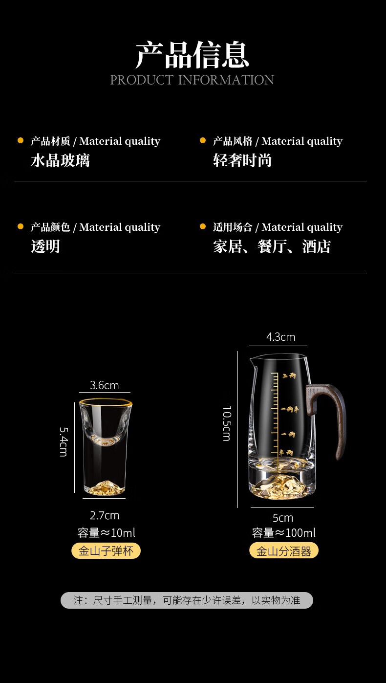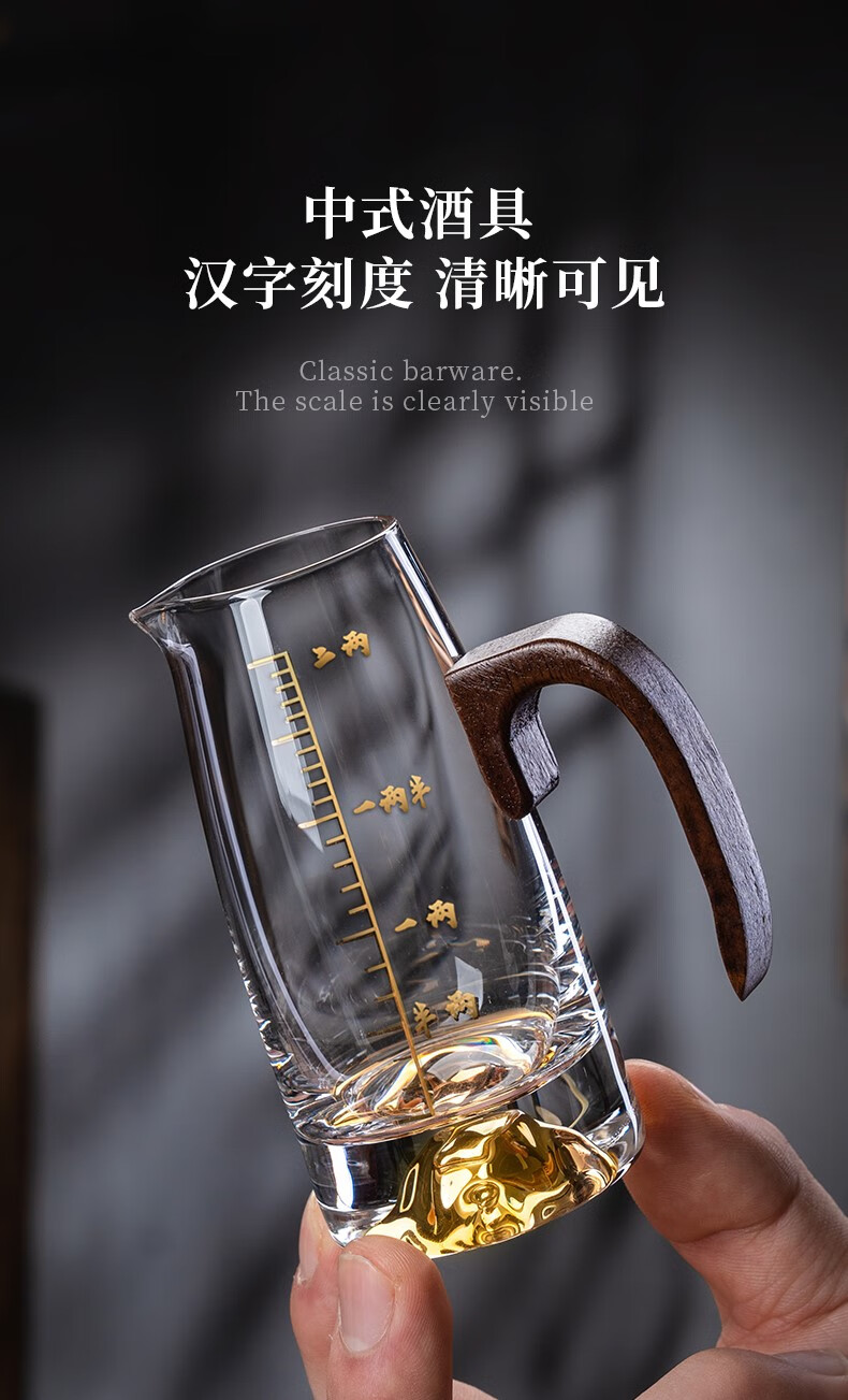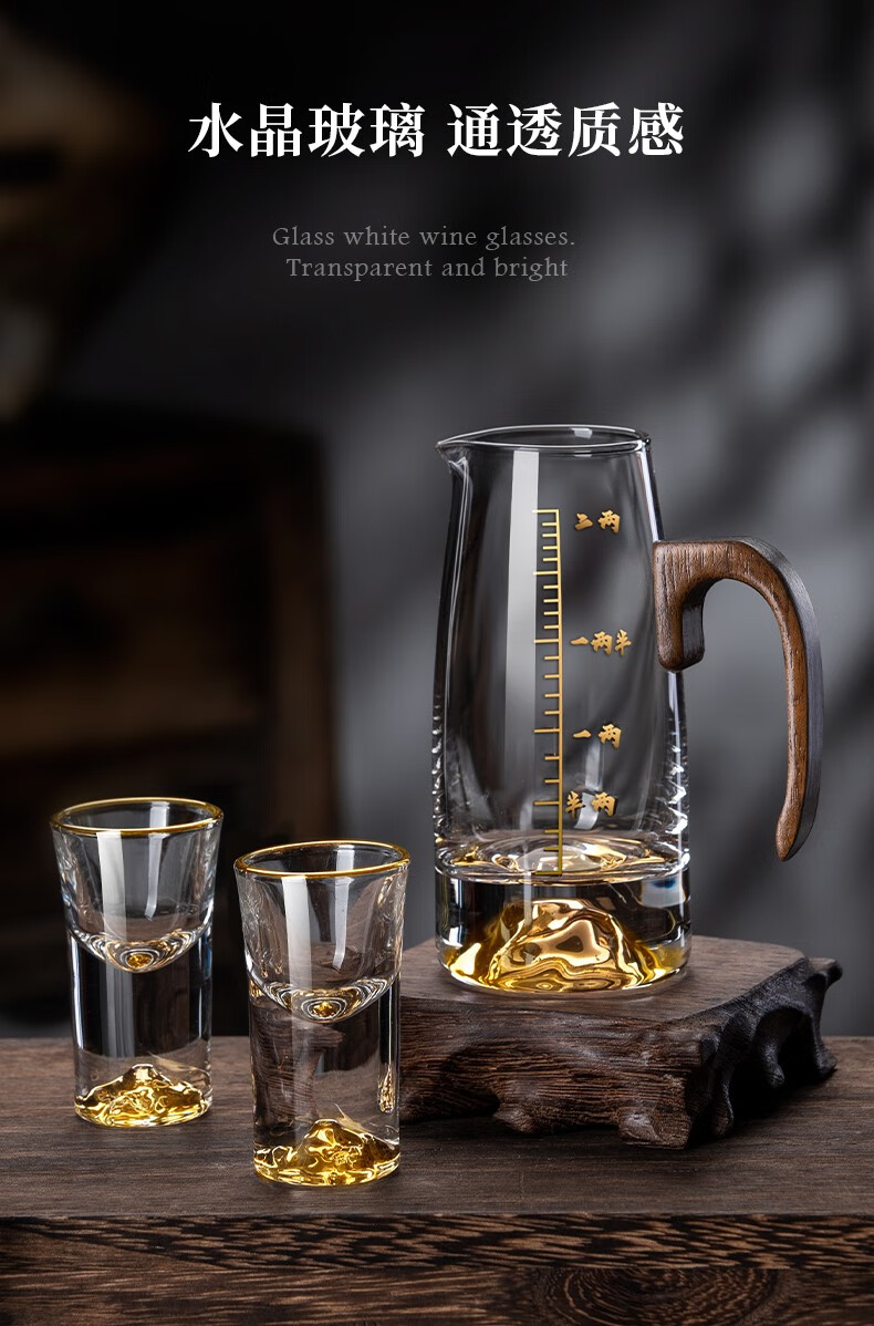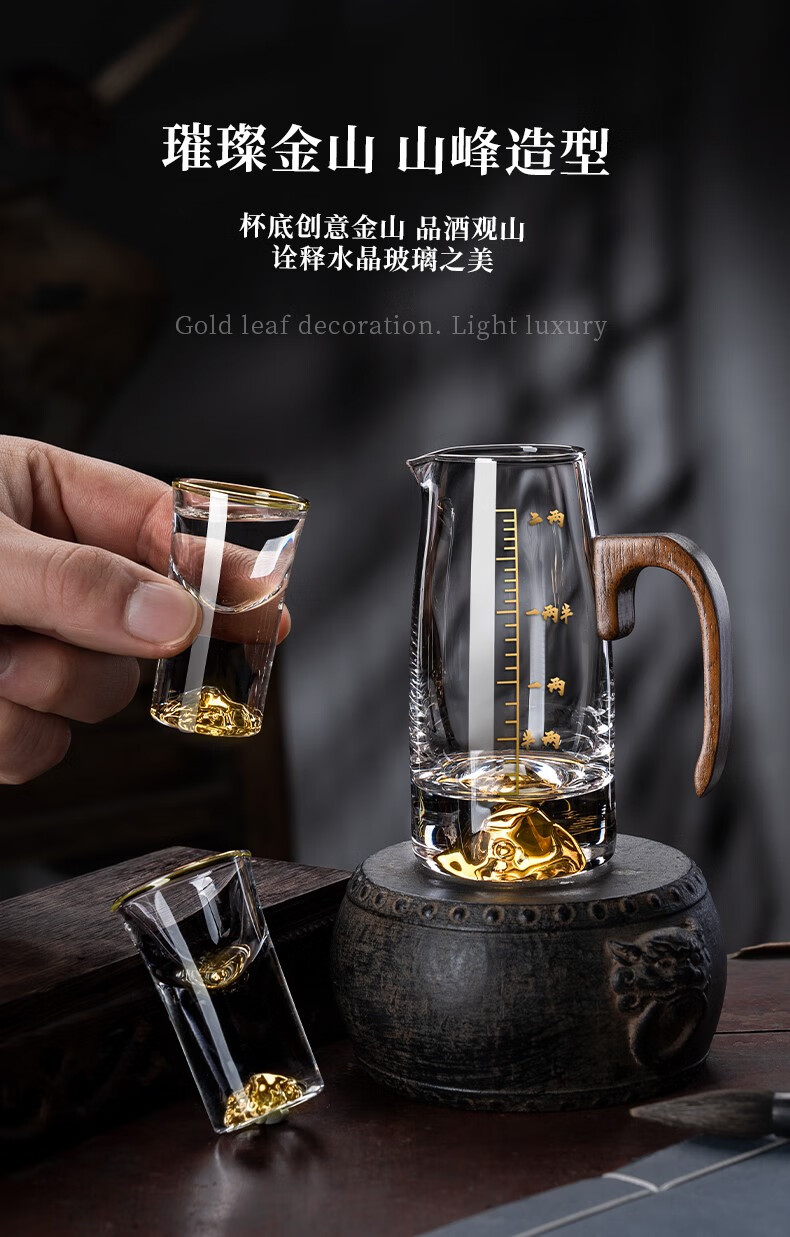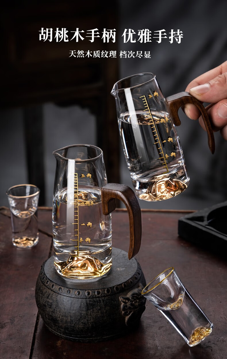 Lugaris walnut handle white wine glass wine dispenser set Jinshan household crystal glass Chinese style light luxury wine set 6 pots 6 cups three-layer rack wooden handle Jinshan wine dispenser + Jinshan gold-rim bullet cup