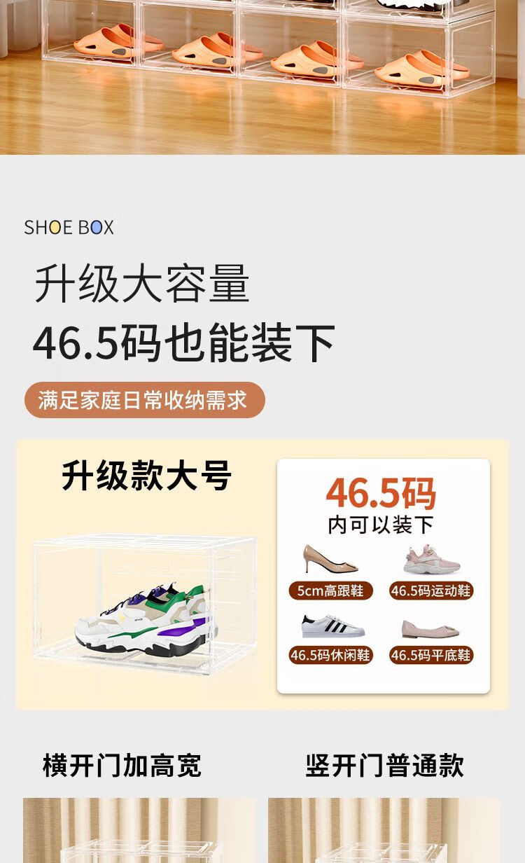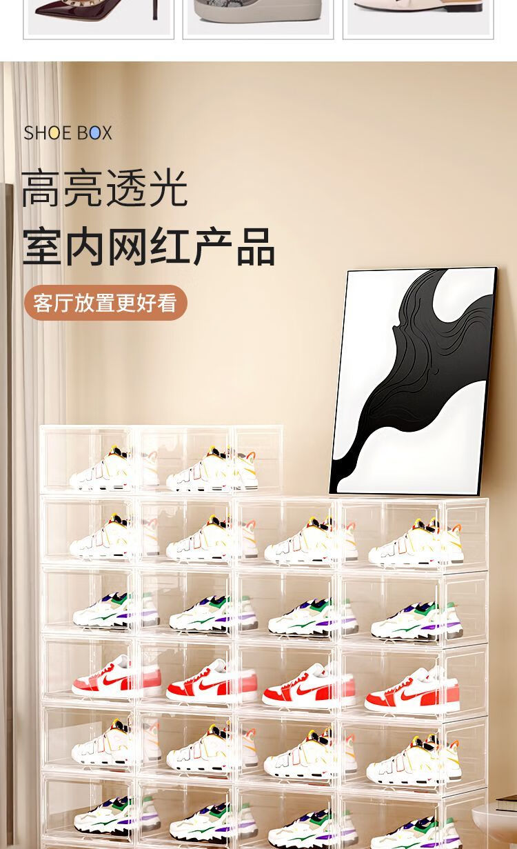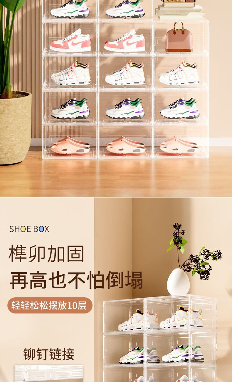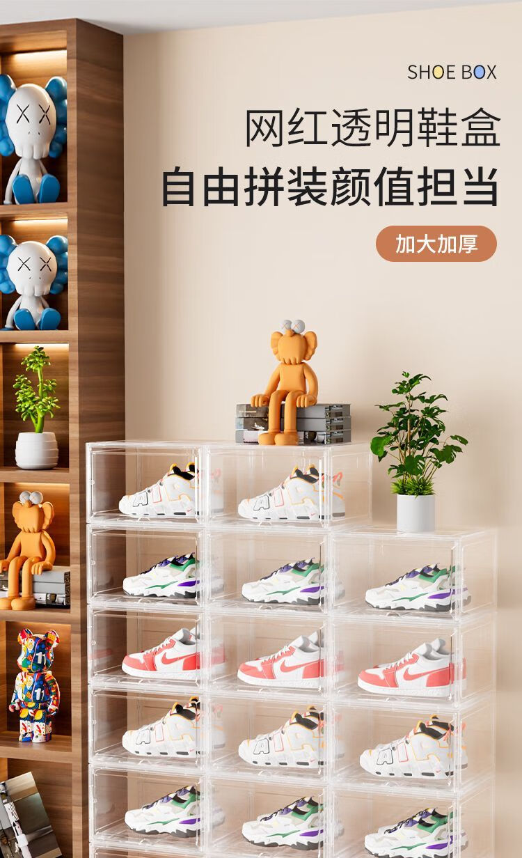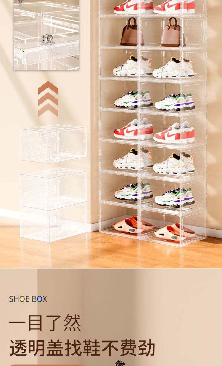 Magnetic Acrylic Transparent Shoe Box Plastic Storage Box Storage Cabinet Internet Celebrity Shoe Wall Plastic Shoe Cabinet Shoe Storage Upgraded Thickened Transparent White 6 Pieces Side Opening Magnetic Suction (can hold sizes 46 and below)