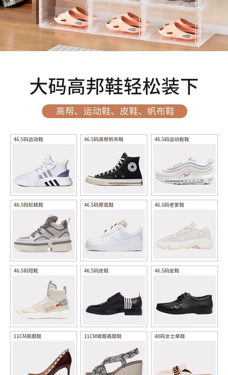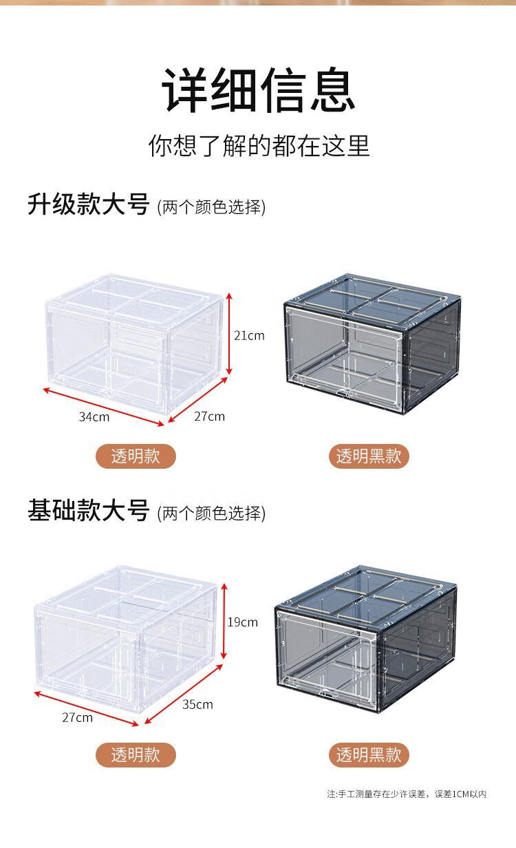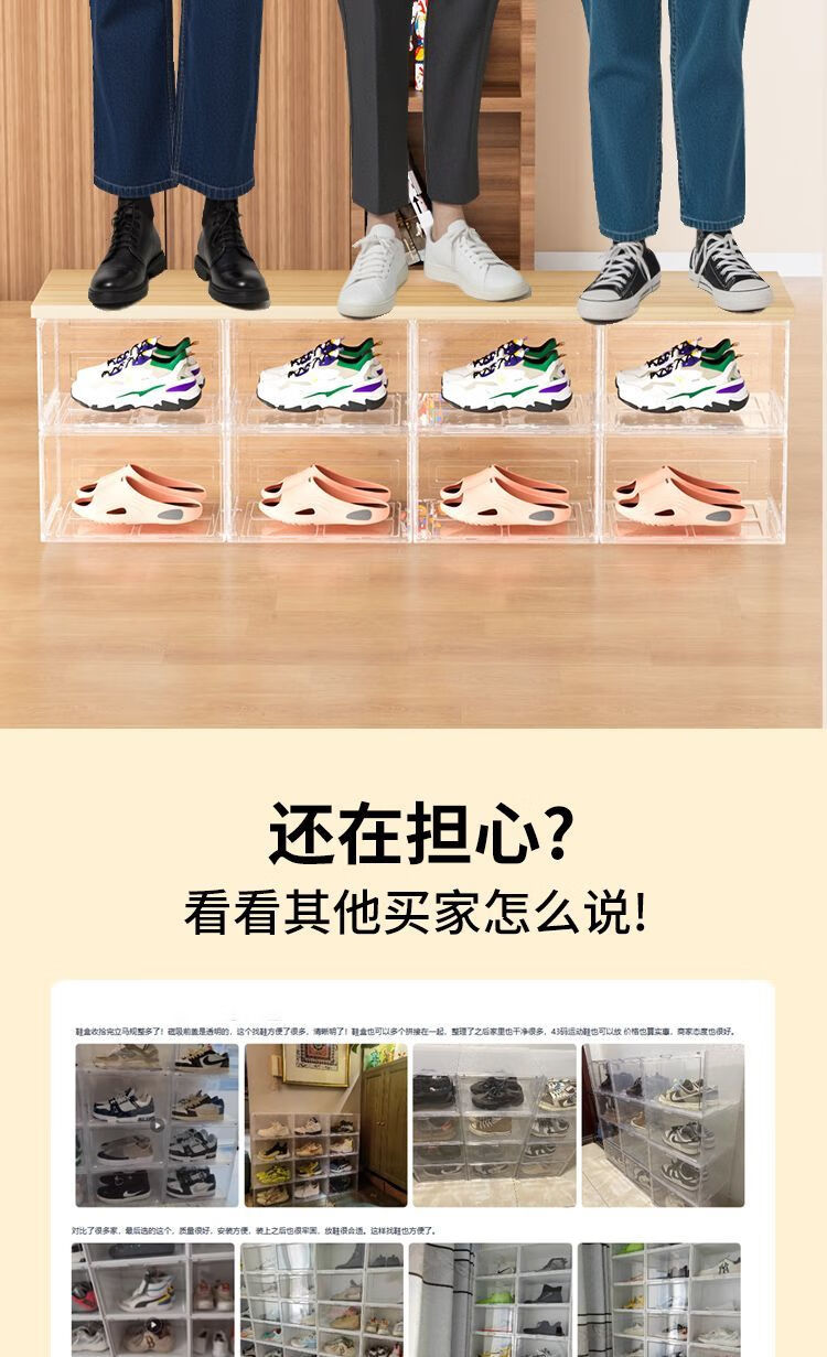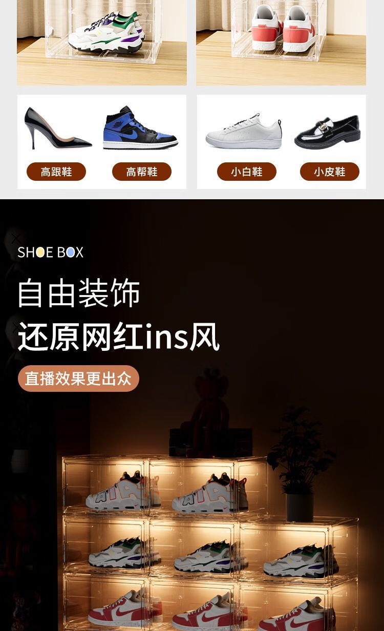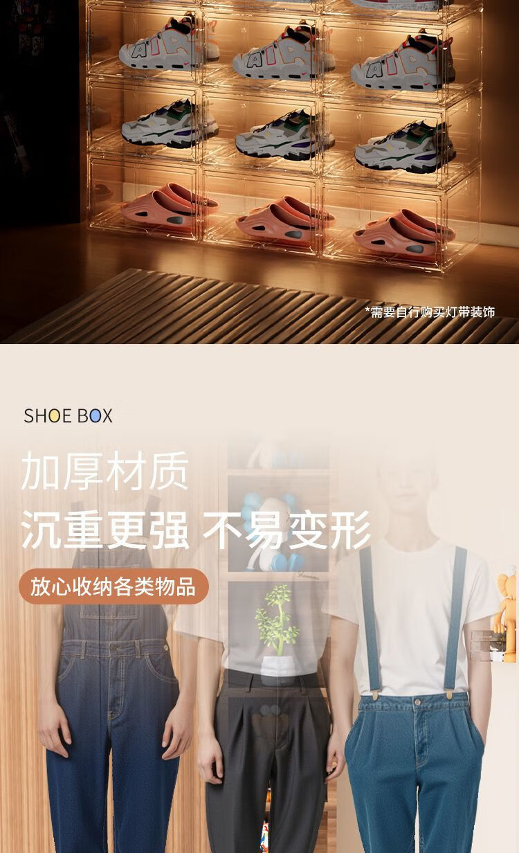 Magnetic Acrylic Transparent Shoe Box Plastic Storage Box Storage Cabinet Internet Celebrity Shoe Wall Plastic Shoe Cabinet Shoe Storage Upgraded Thickened Transparent White 6 Pieces Side Opening Magnetic Suction (can hold sizes 46 and below)