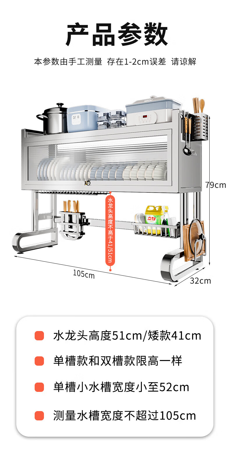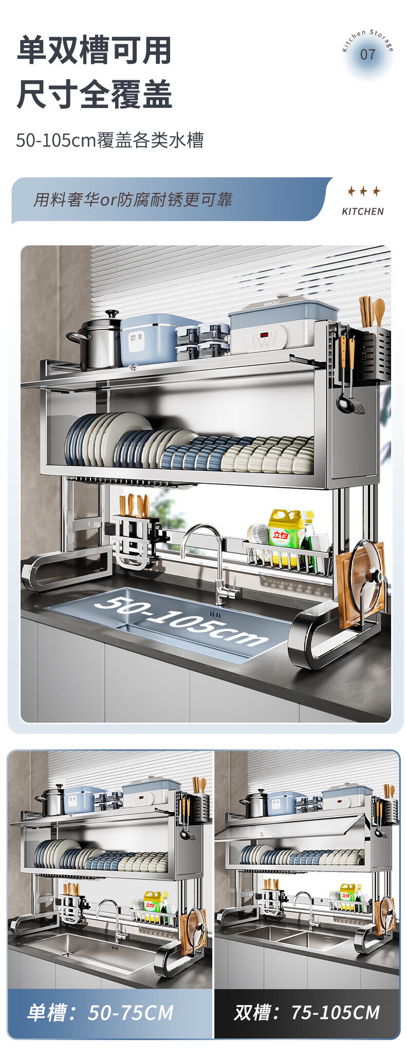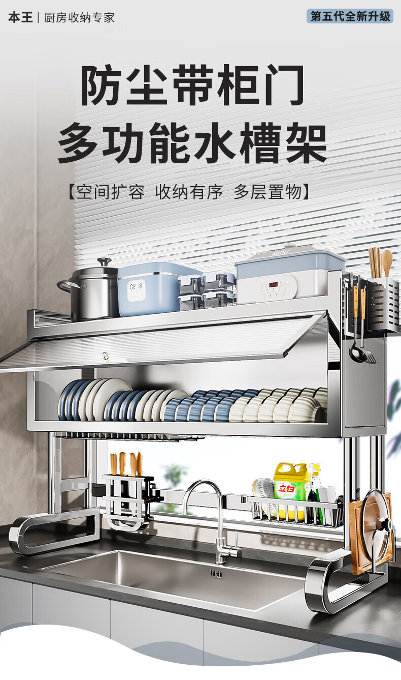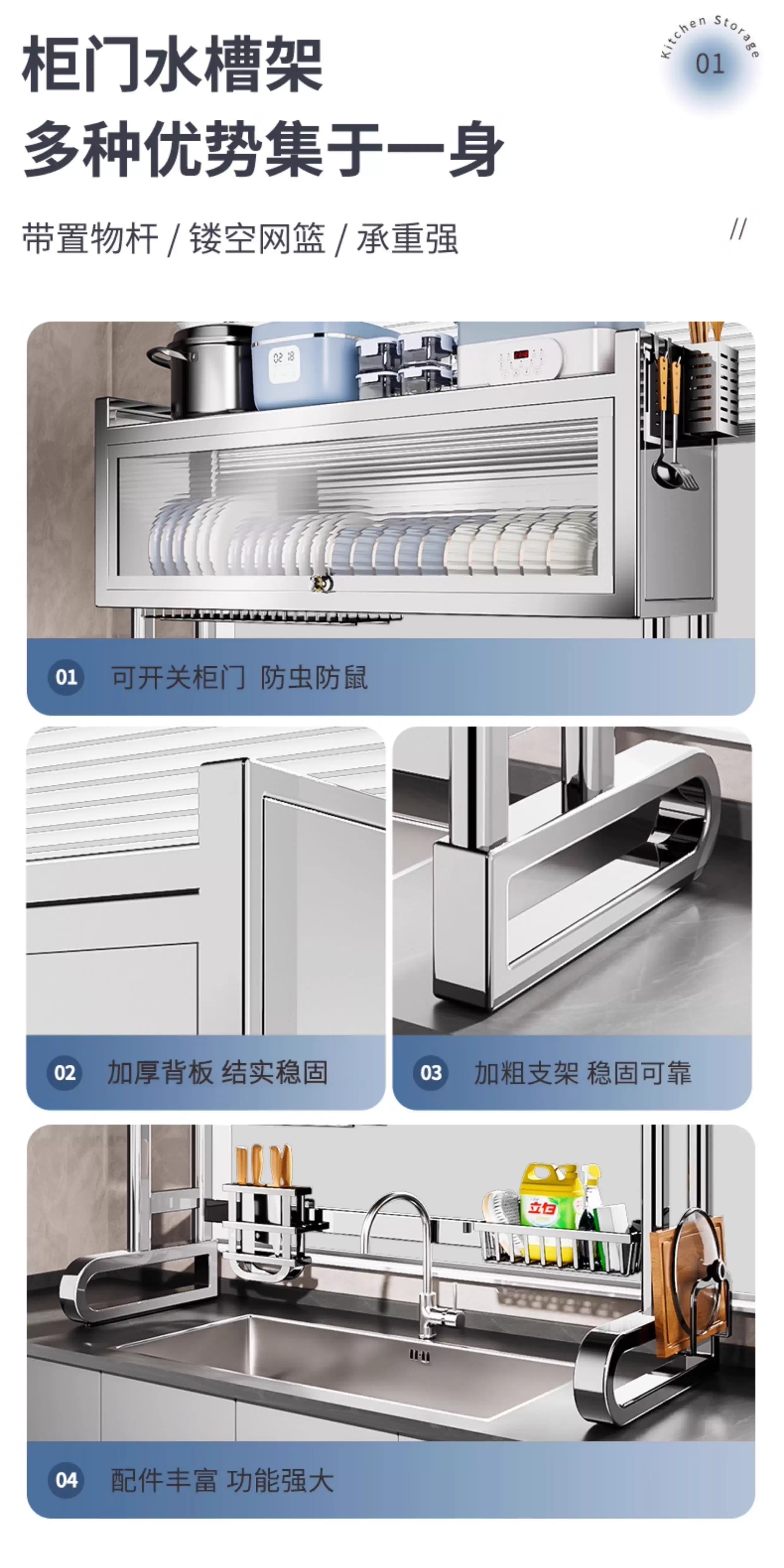 Youxi 304 stainless steel kitchen sink rack multi-functional dish rack knife holder chopping board chopstick tube storage rack 304 stainless steel 95cm luxury 6-piece complete set