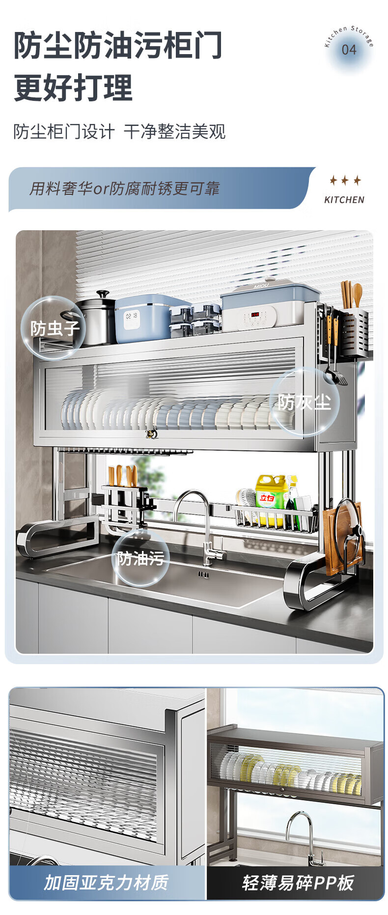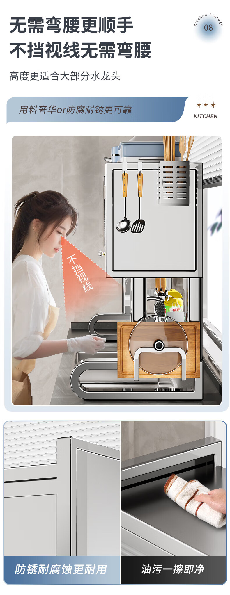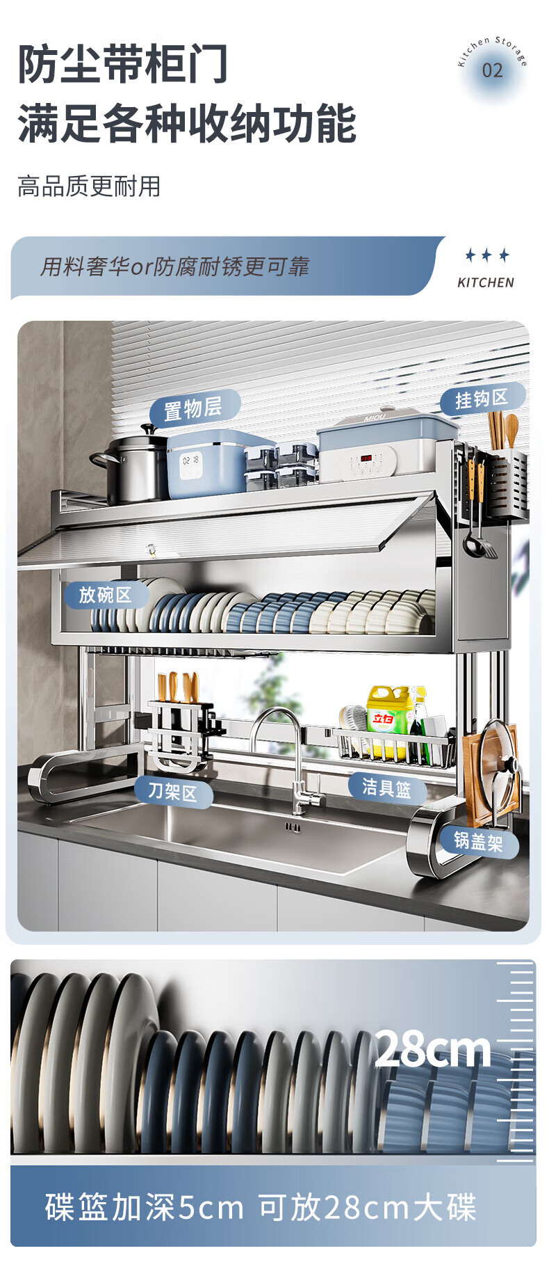 Youxi 304 stainless steel kitchen sink rack multi-functional dish rack knife holder chopping board chopstick tube storage rack 304 stainless steel 95cm luxury 6-piece complete set