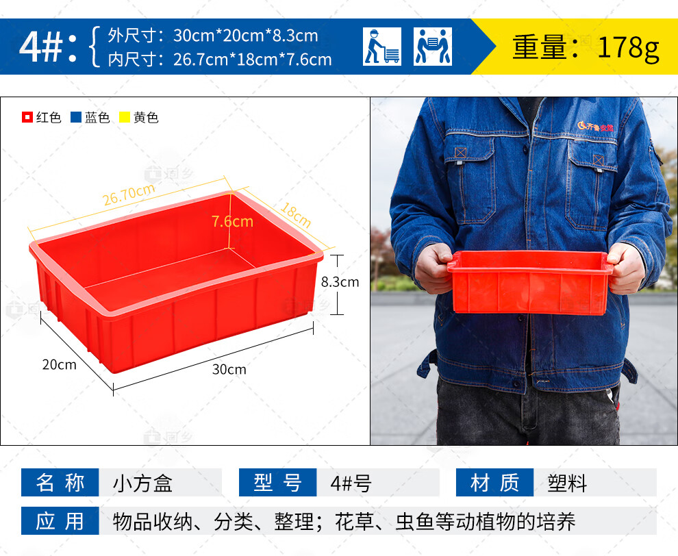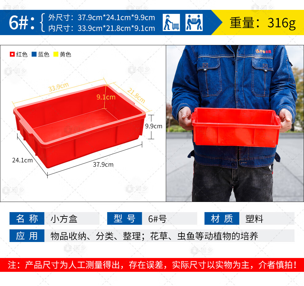 Guxiang Plastic Box Thickened Logistics Turnover Box Parts Material Box Classification Organizing Basket Storage Box Tool Box Storage Box Storage Accessories Box Plastic Basket Rectangular Box Flat Mouth Box Small Square Box Blue No. 6 379*241*99mm