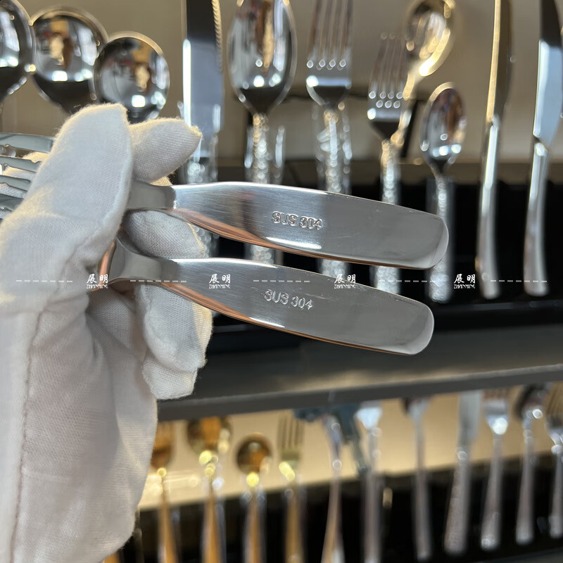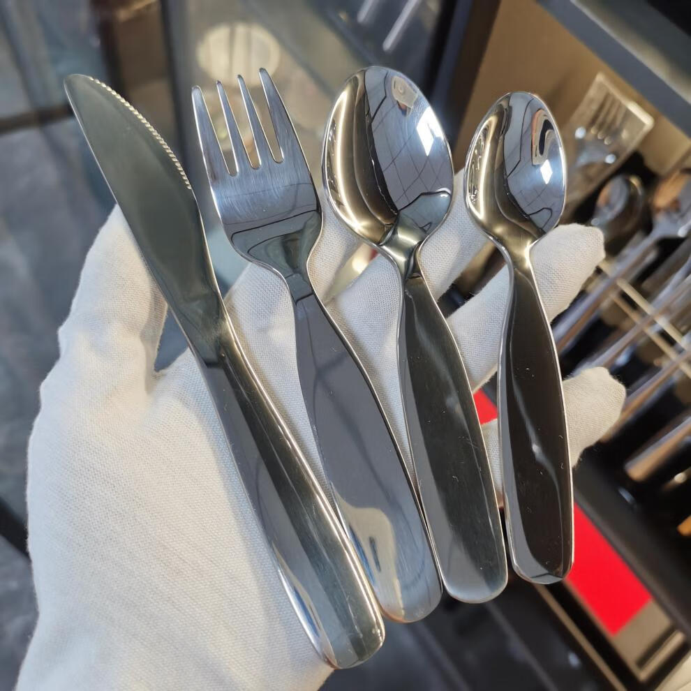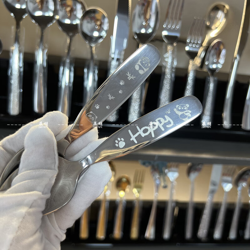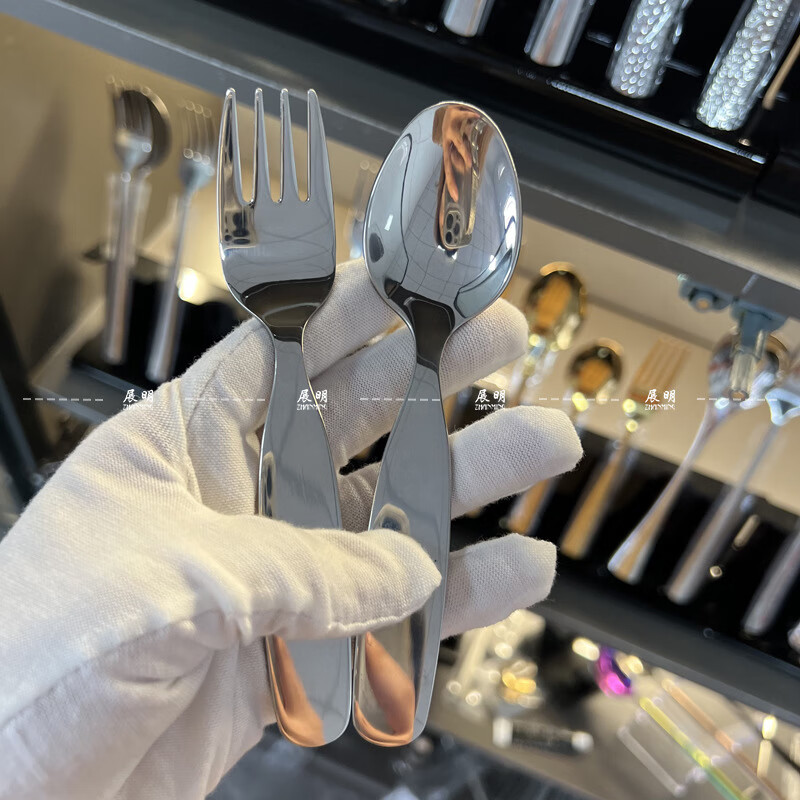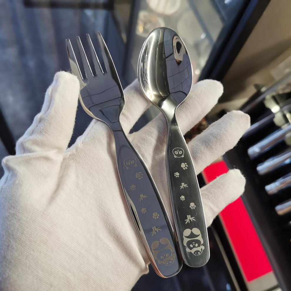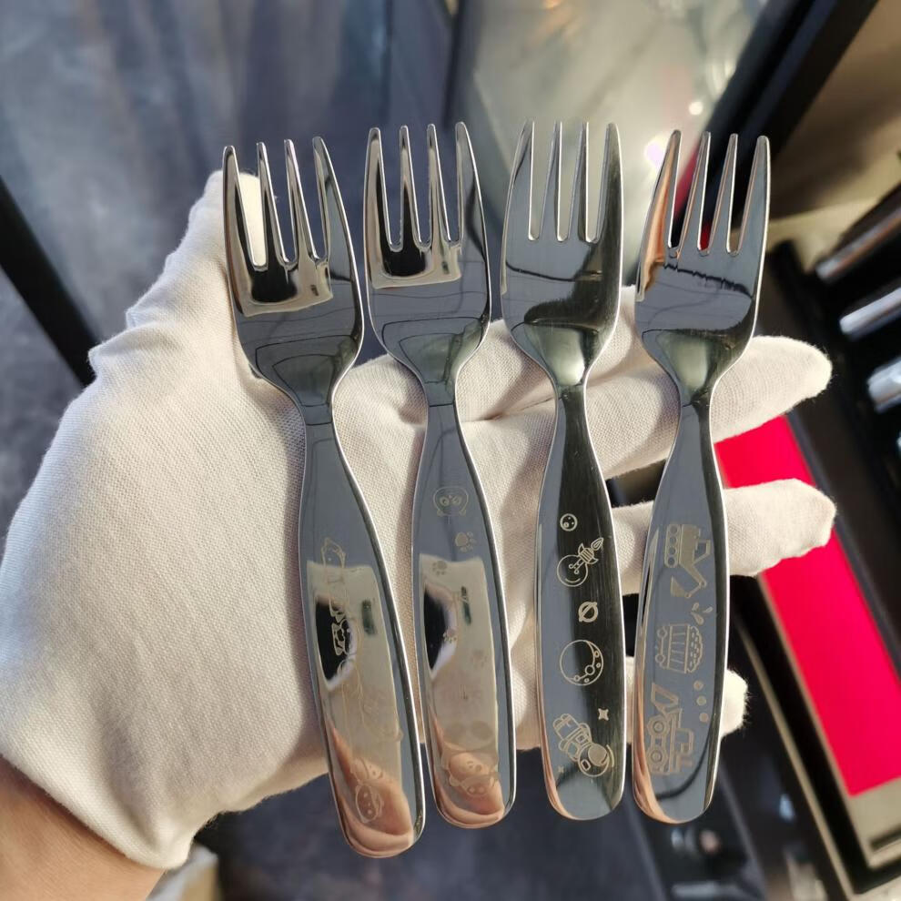 Fat Donglai's same style Zhanming 316 stainless steel eating spoon and fork for home use cute long-handled spoon for baby to drink soup and dessert 316 long-handled fork (no pattern)