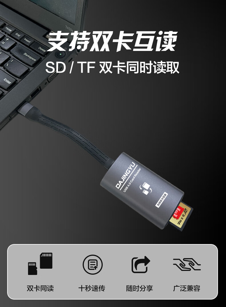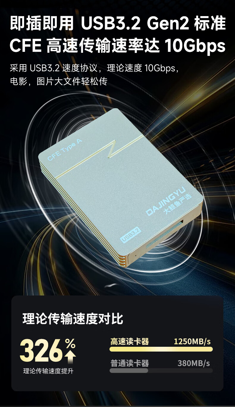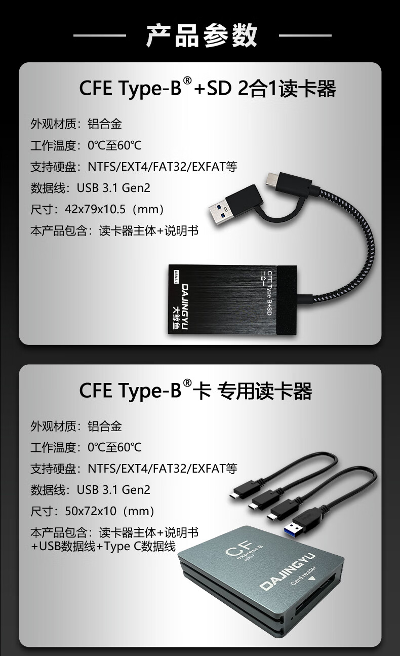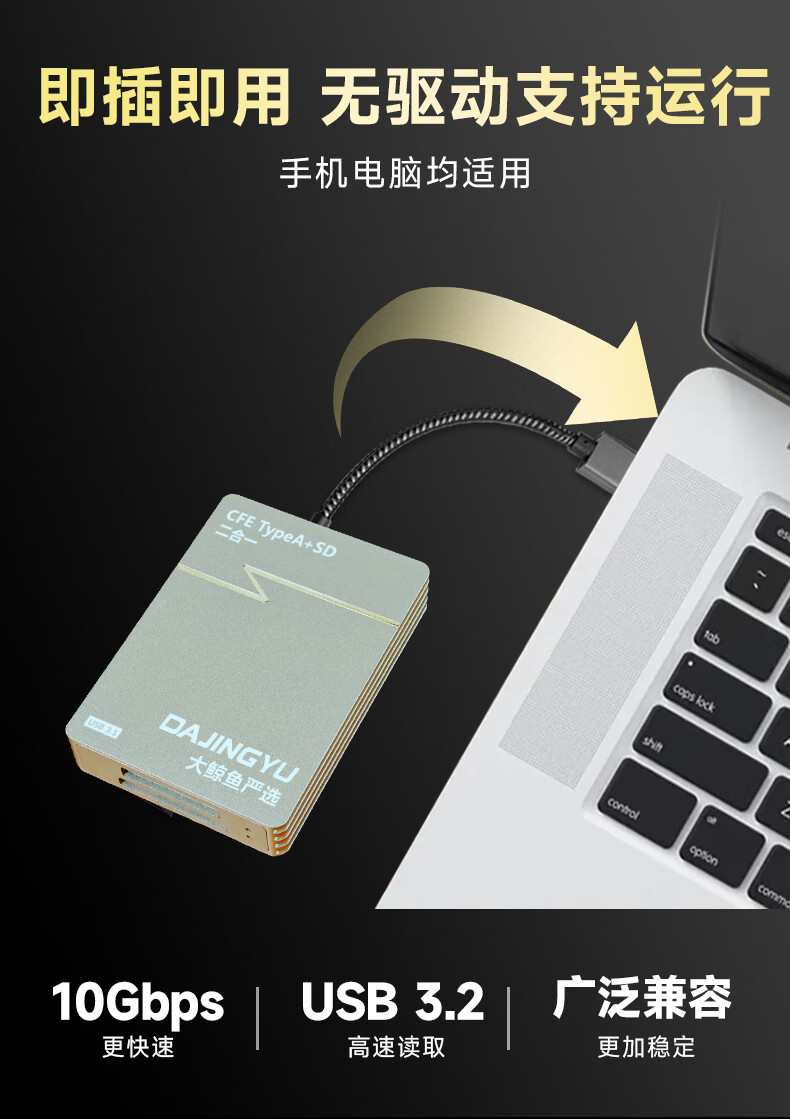 DAJINGYU Big Whale cfexpress card reader high-speed USB3.1 camera SD card & cfe card multi-function two-in-one card reader dedicated to SD+TF card 4.0 high-speed dual card slot card reader