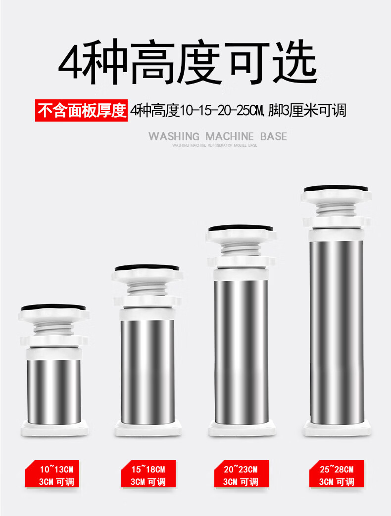 Kezhituga height stainless steel feet fully automatic pulsator drum washing machine base universal bracket refrigerator base ice making rack 4-foot round tube upgrade (total height 14-17cm) white