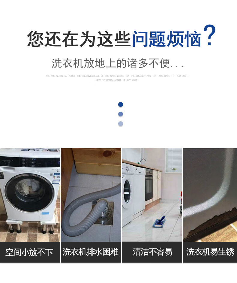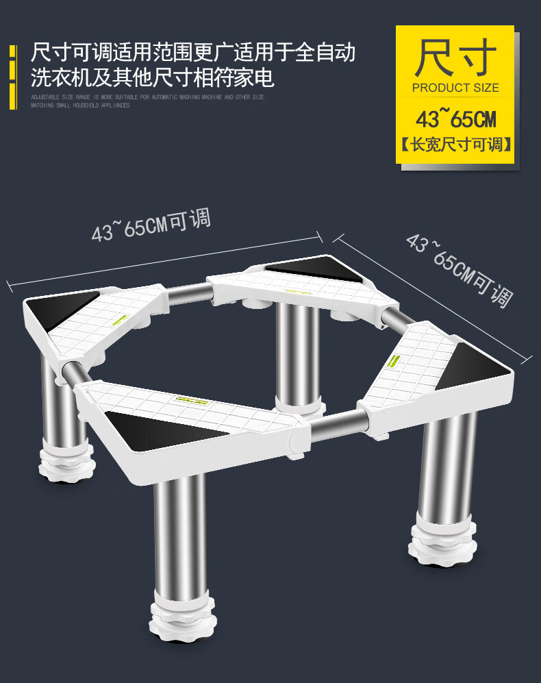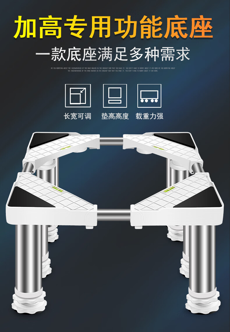 Kezitu washing machine base stainless steel heightening stand fully automatic roller adjustable stand refrigerator ice machine stand 4 feet (total shelf height 29-32cm) gray
