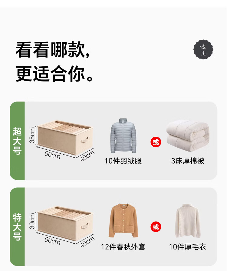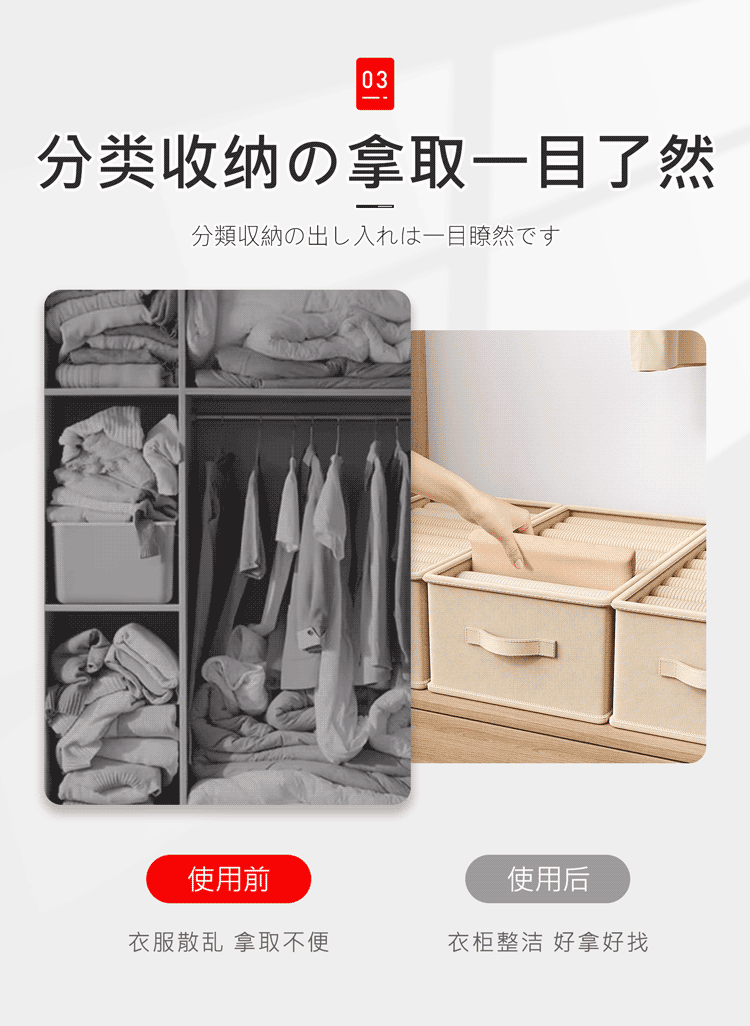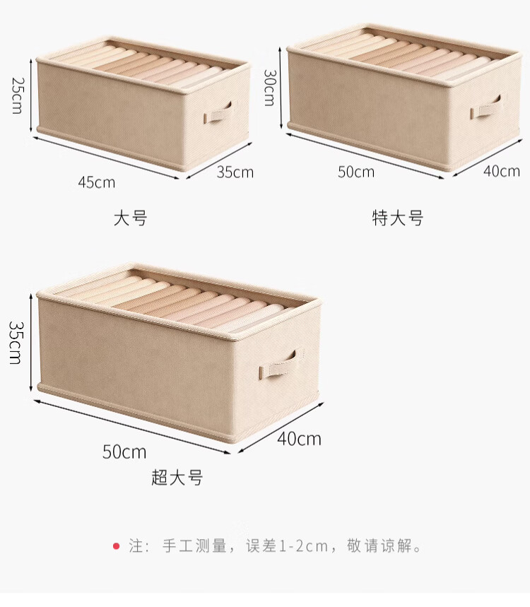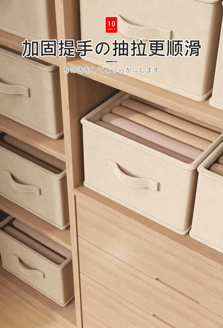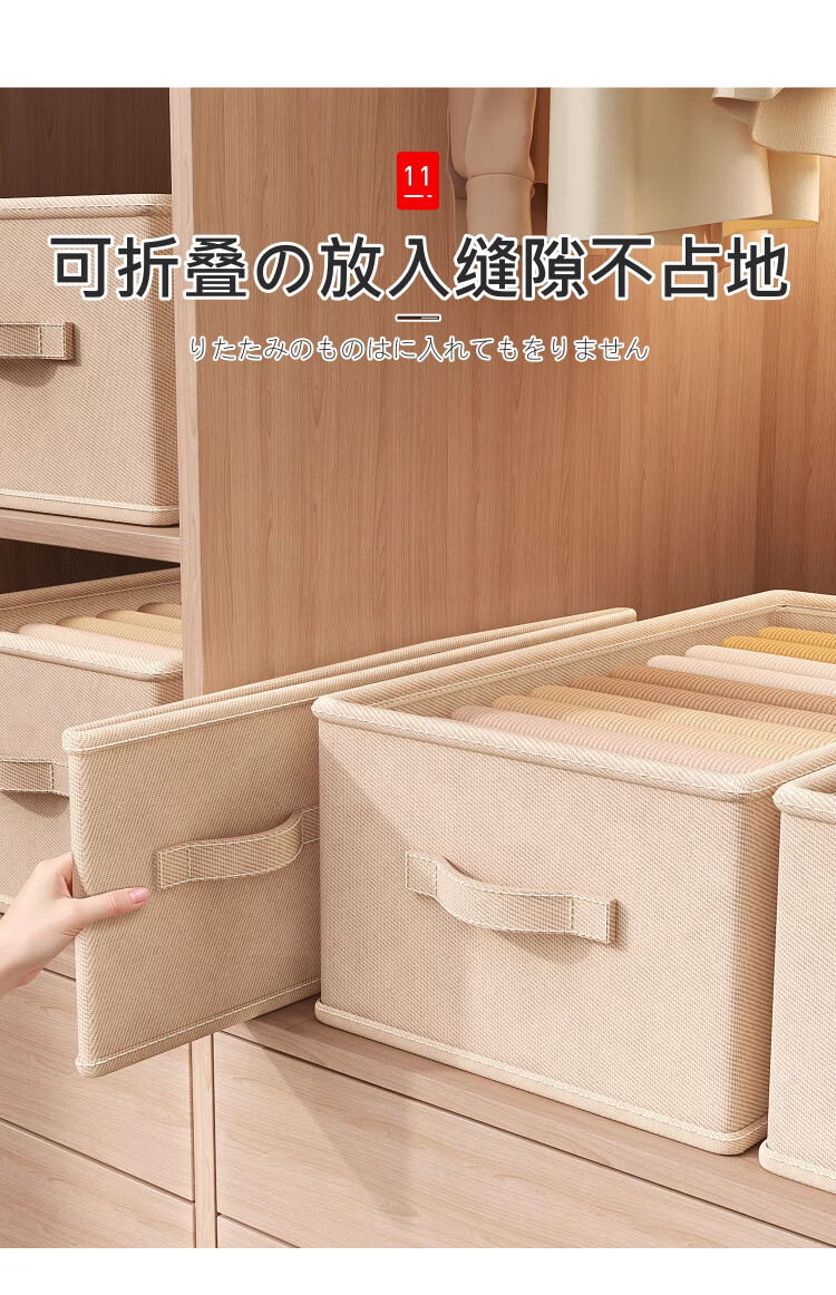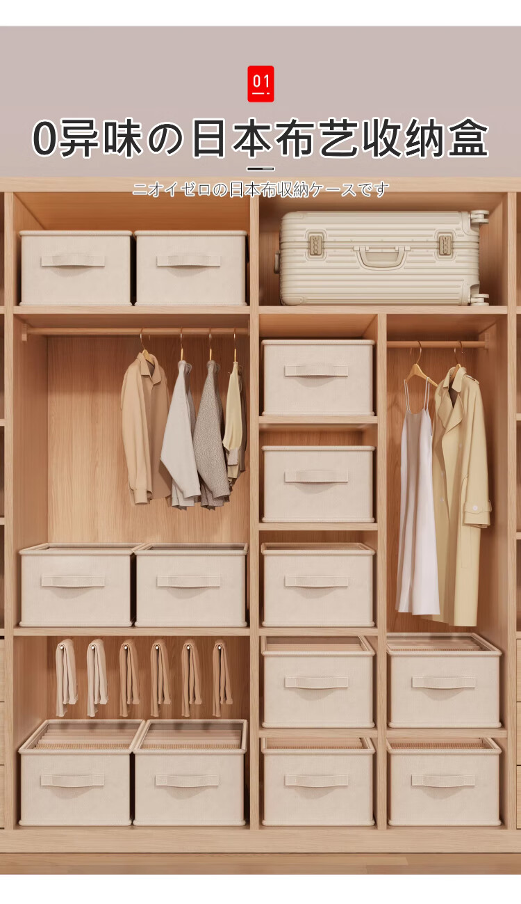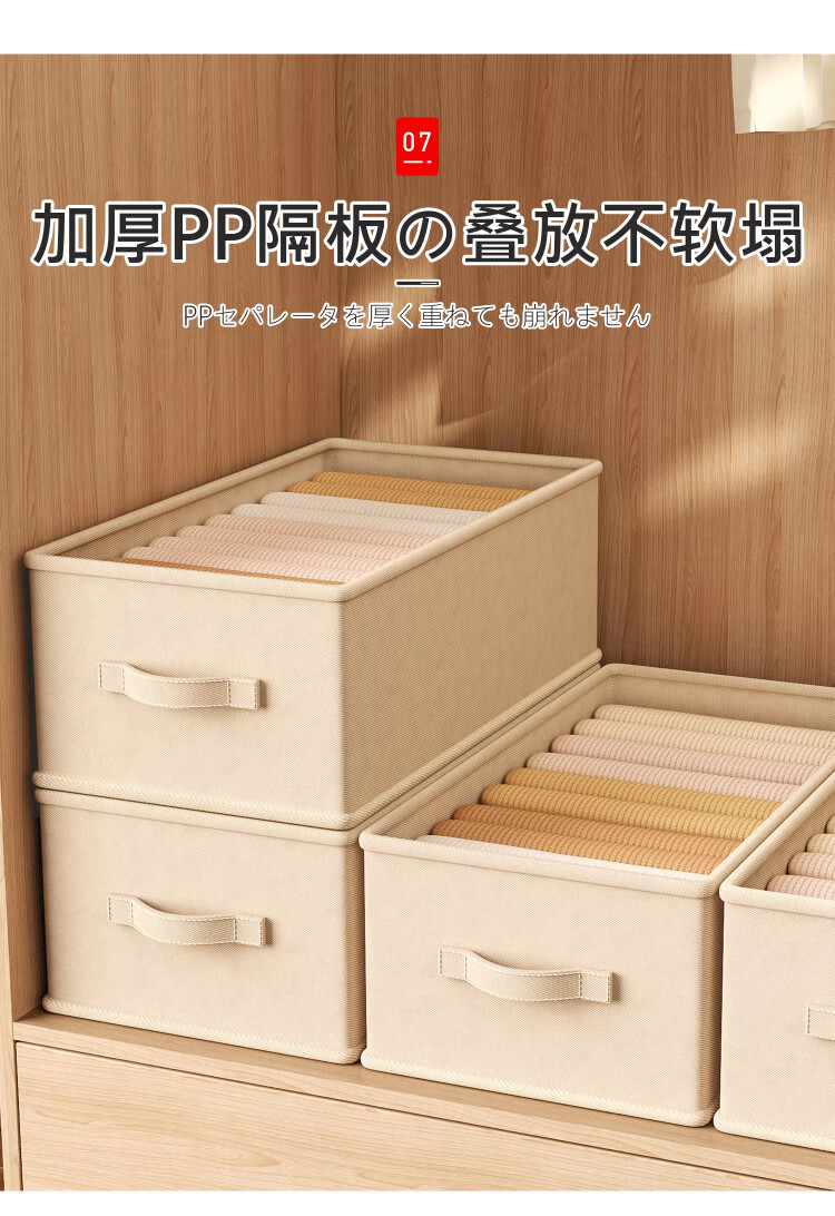 Zhifan Japanese Wardrobe Storage Box Organizing Box Layered Artifact for Clothes and Underwear in the Wardrobe Fabric Storage Basket with Cover - Large Off-white Can Hold 30 T-shirts or Shirts 1 Pack